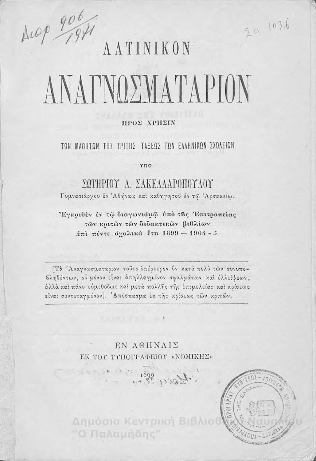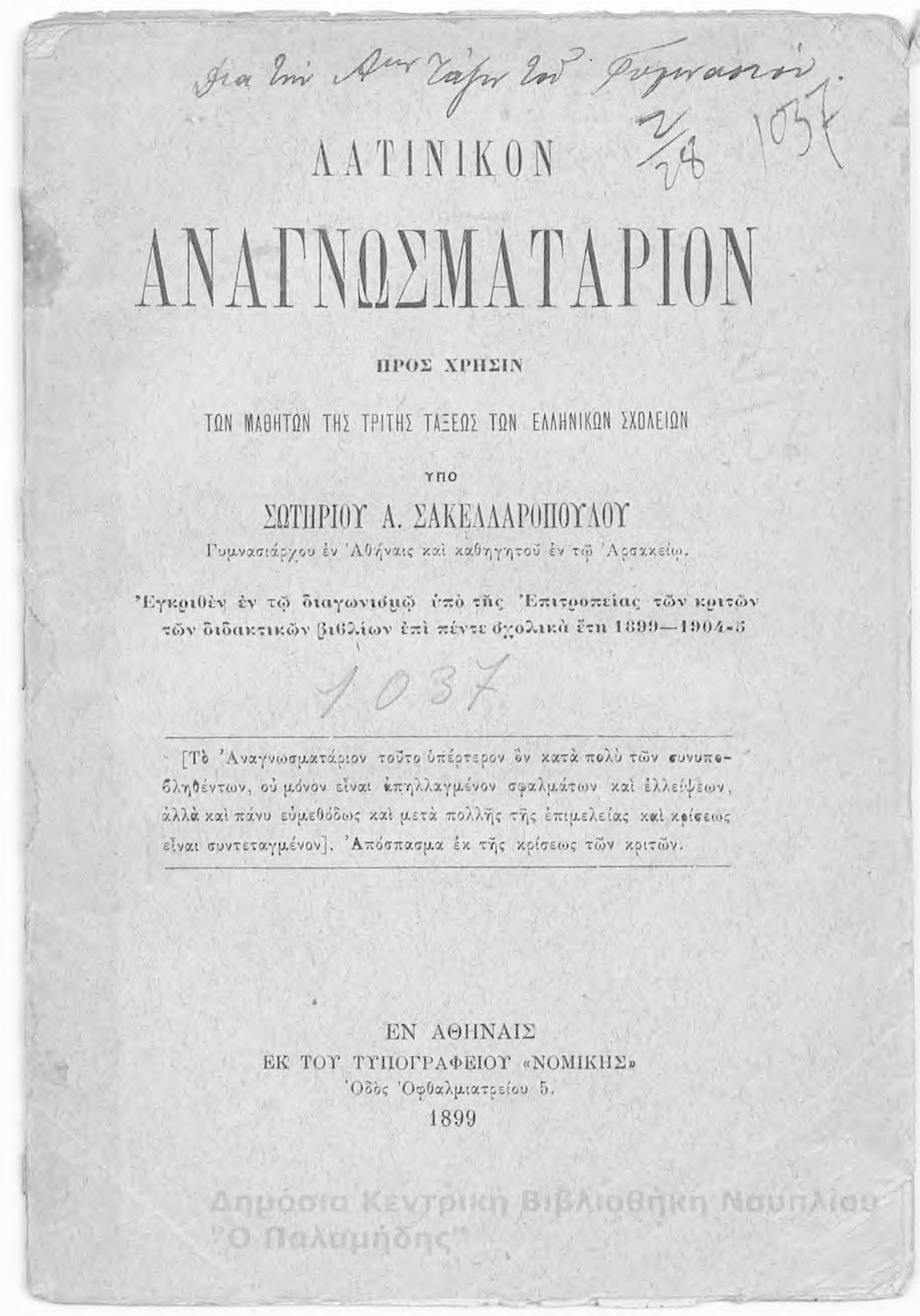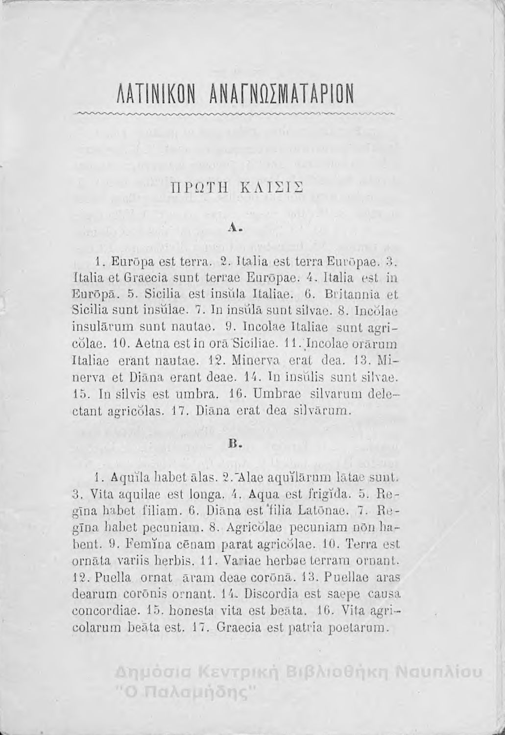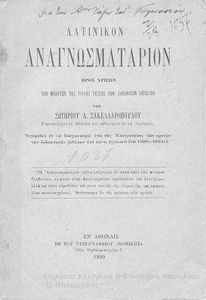 Λατινικόν αναγνωσματάριον: πρός χρήσιν των ελληνικών σχολείων