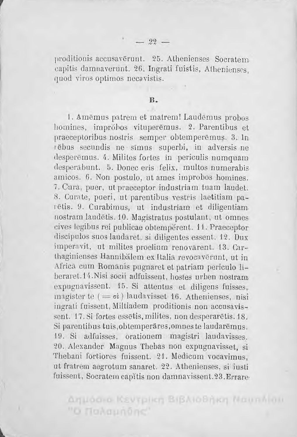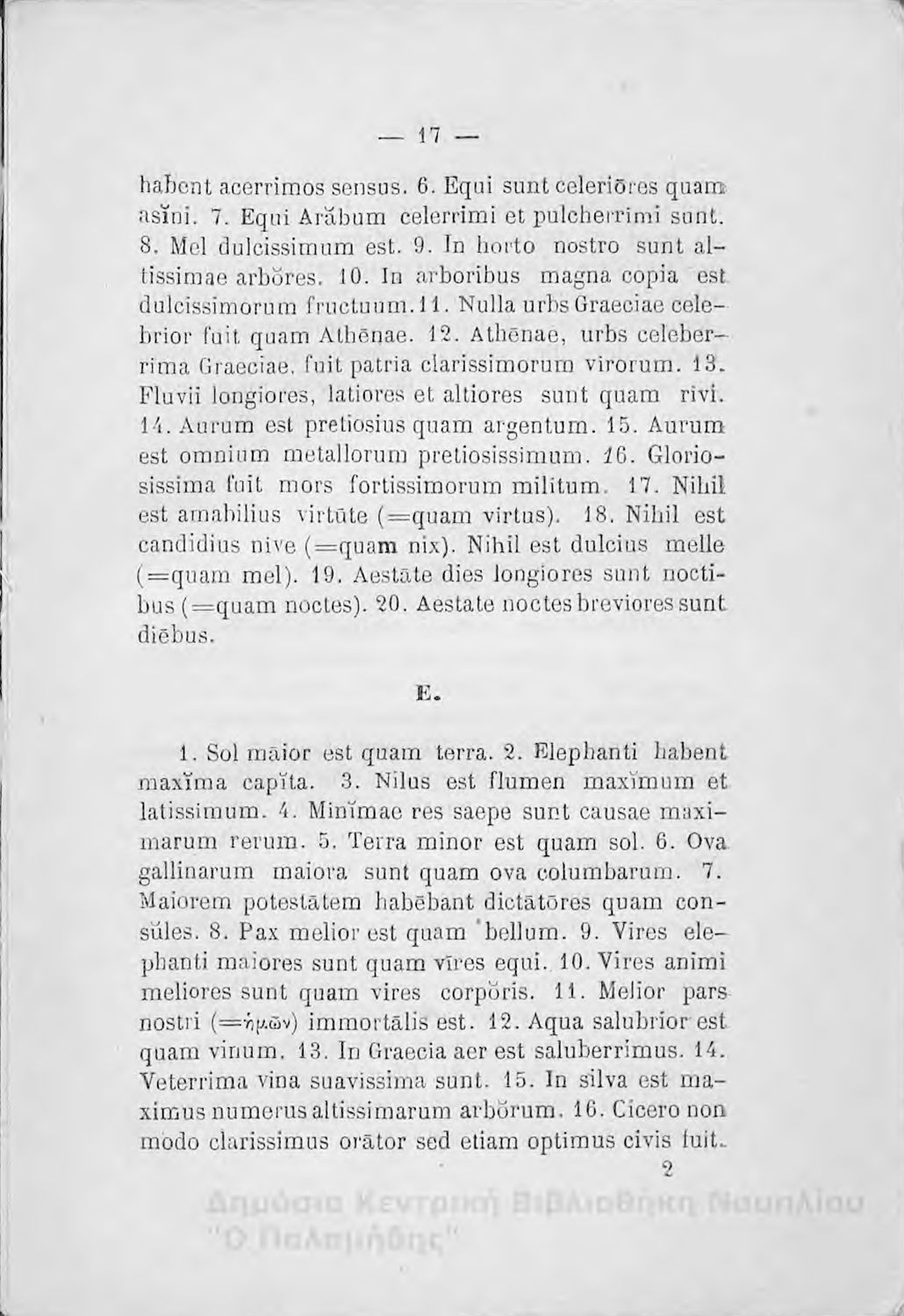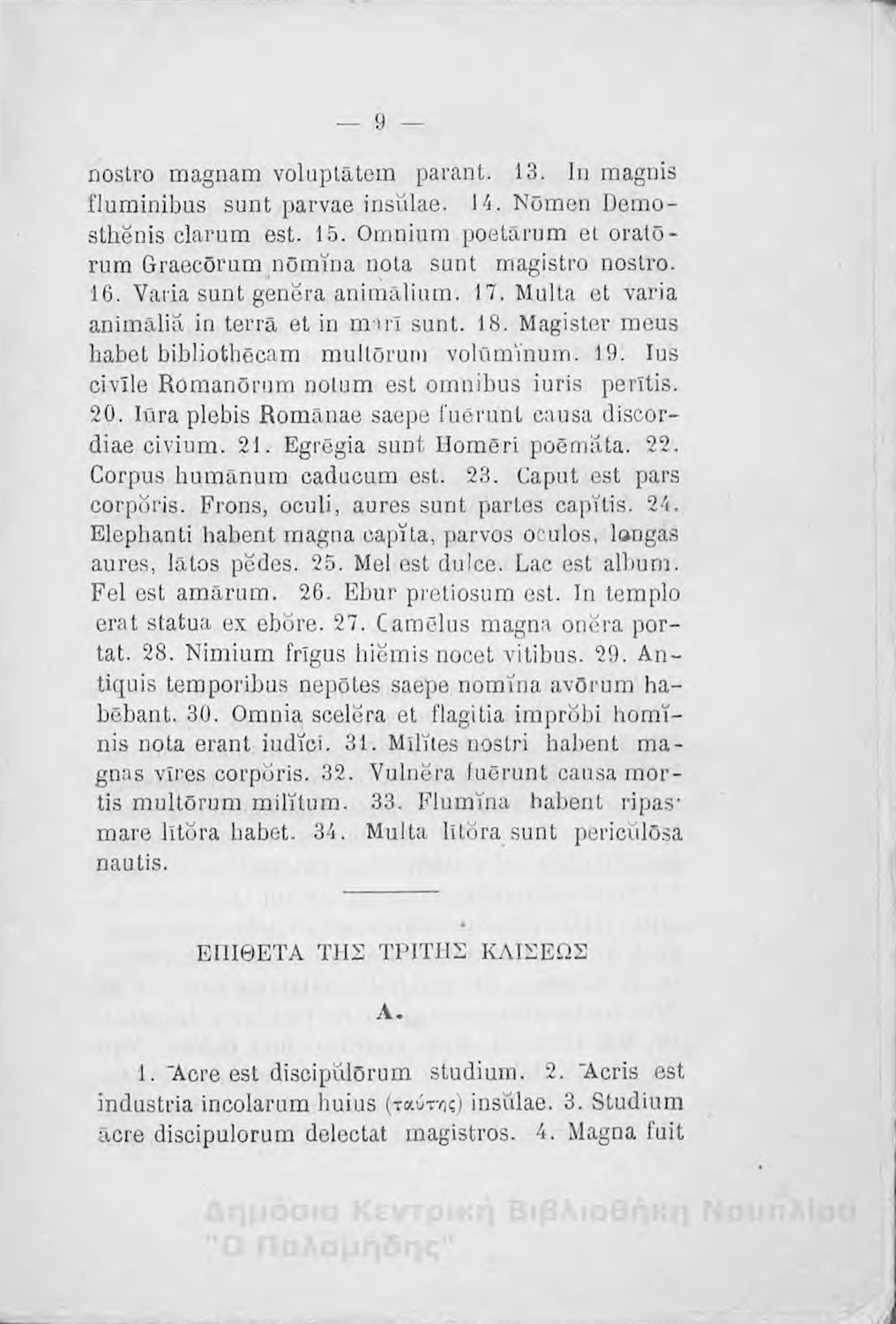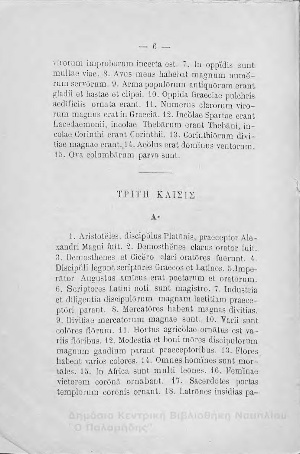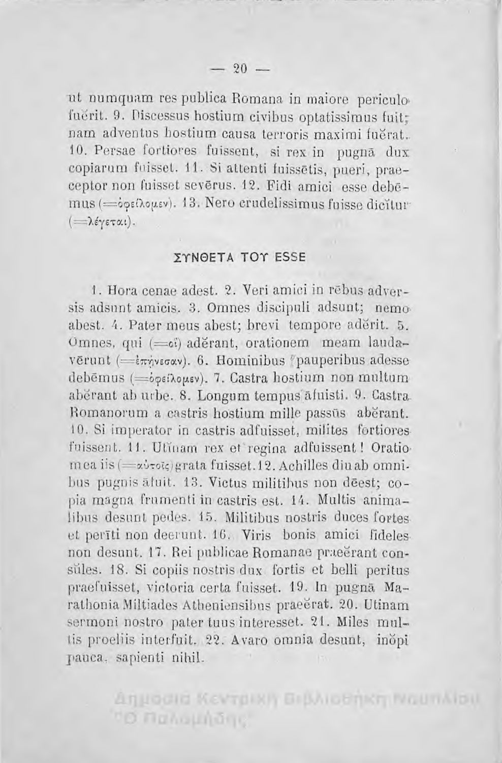 Σχολικό εγχειρίδιο Λατινικών για τα Ελληνικά Σχολεία που περιλαμβάνει τη γραμματική της λατινικής γλώσσας.