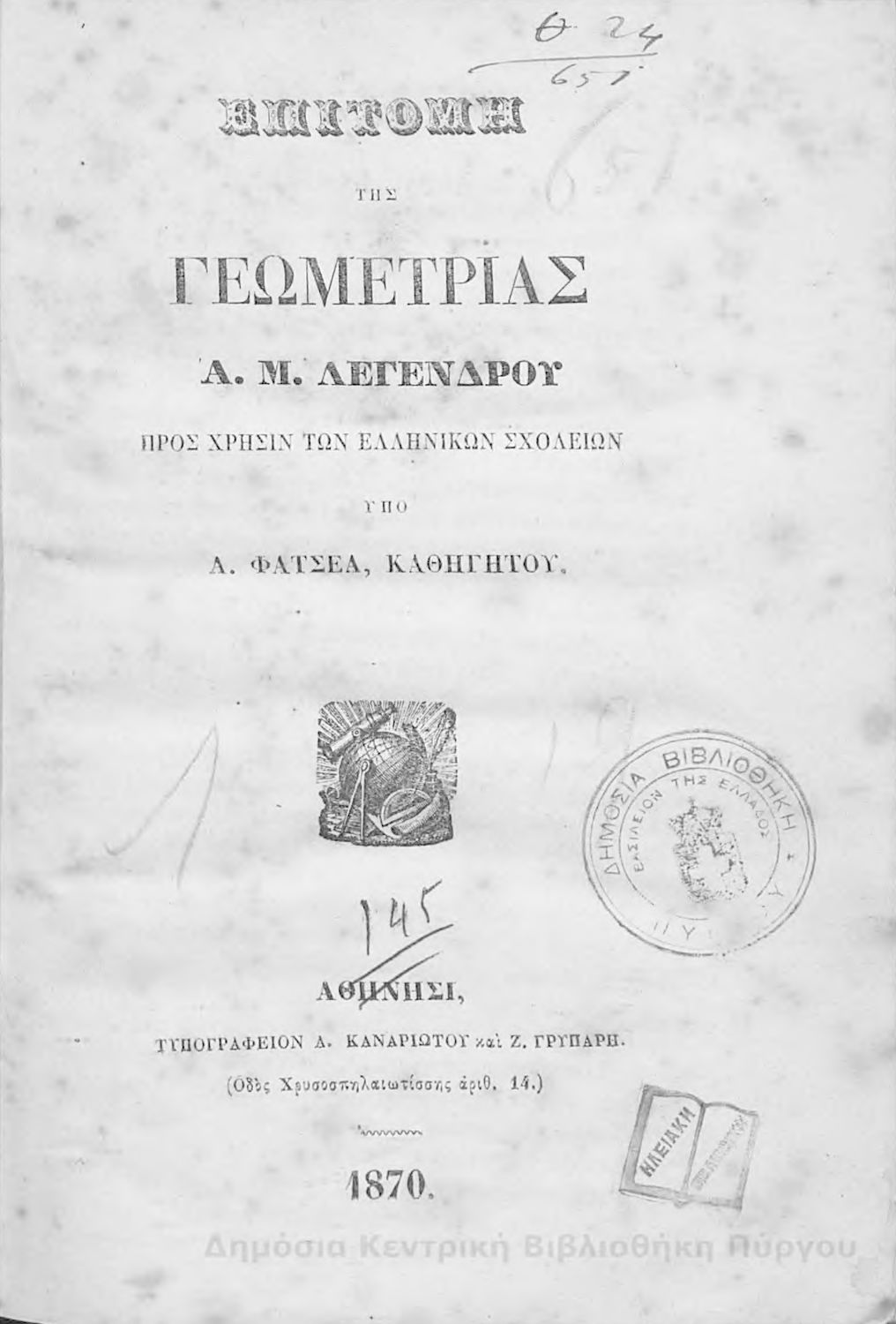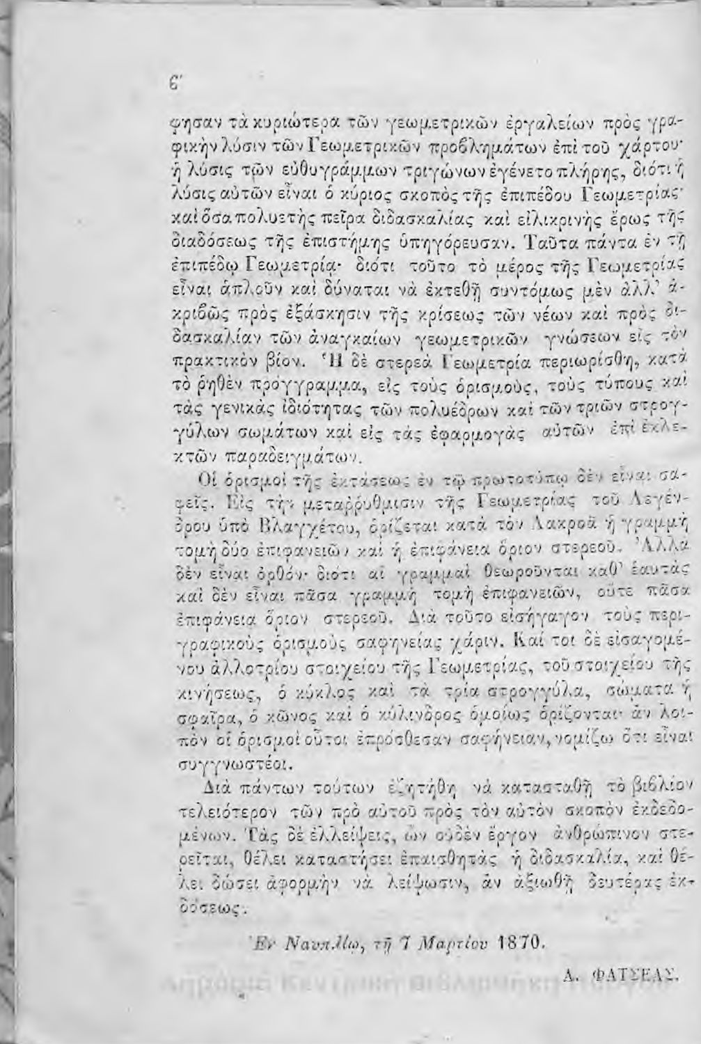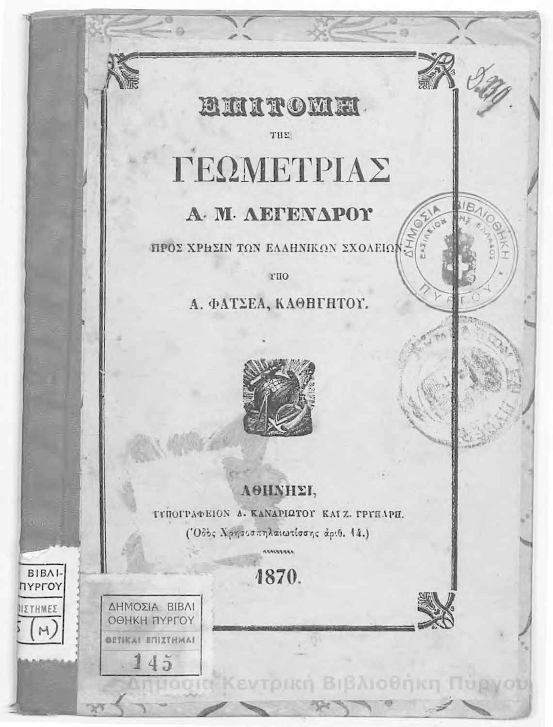 Συγγραφέας: A. M. Legendre, Αντώνιος Φατσέας (μετ.)