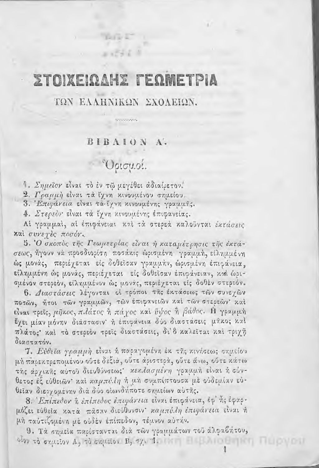 Τίτλος: Επιτομή της γεωμετρίας : πρός χρήσιν των ελληνικών σχολείων