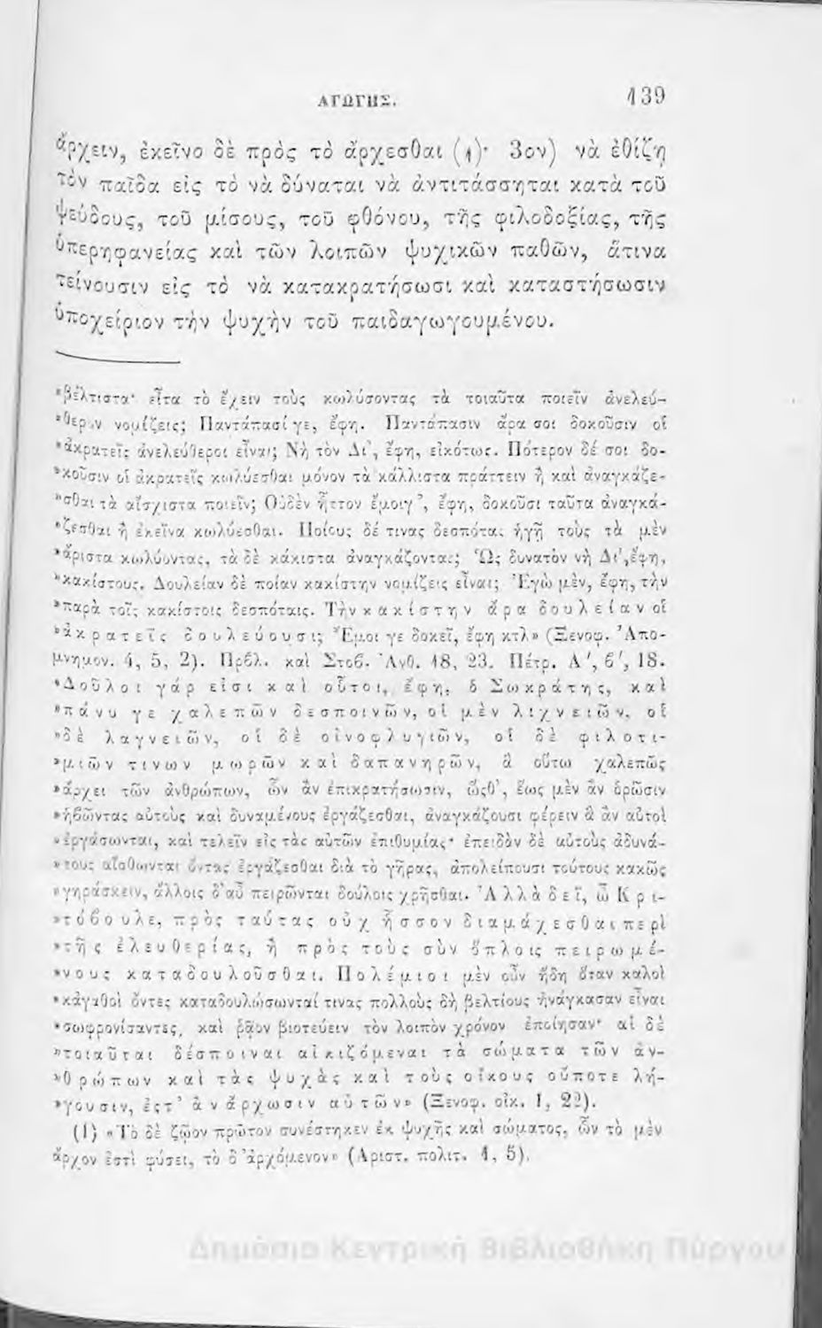 Σχολικό εγχειρίδιο Αρχαίων Ελληνικών για τα Ιερατικά Σχολεία. Ο τόμος περιέχει: «Ξενοφώντος εκ των Ελληνικών Ιστοριών και εκ των Απομνημονευμάτων Σωκράτους, αποσπάσματα –Ισοκράτους, την προς Δημόνικον ...