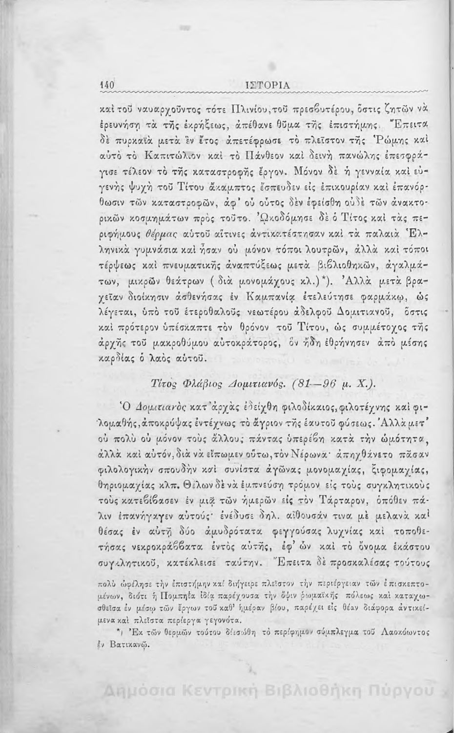 Βαθμίδα εκπαίδευσης: Δευτεροβάθμια Μάθημα: Ιστορία Γλώσσα: Καθαρεύουσα |