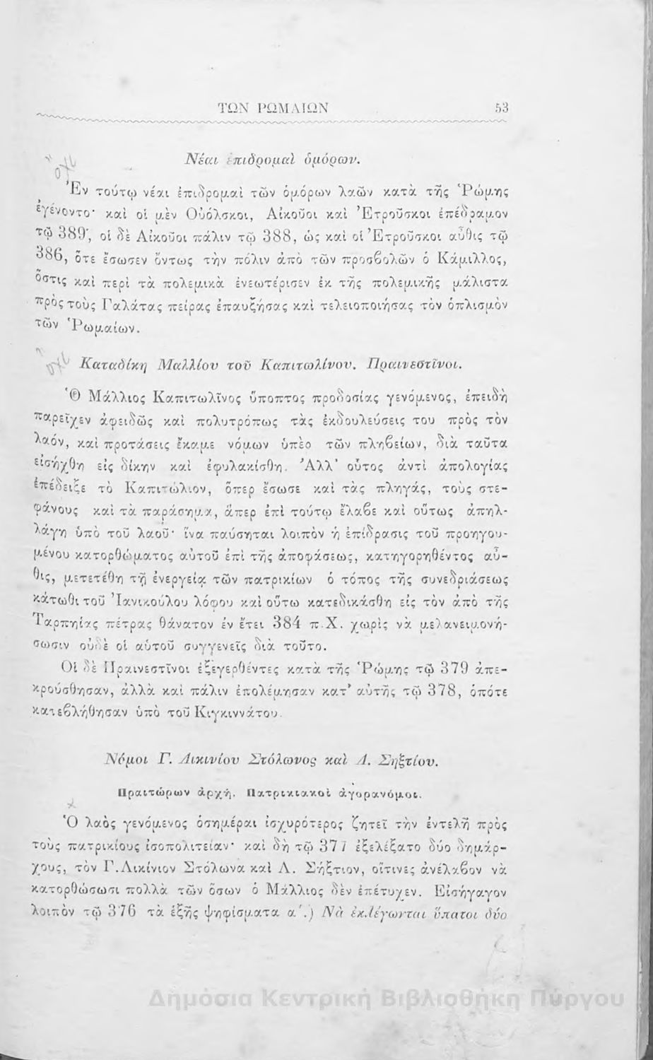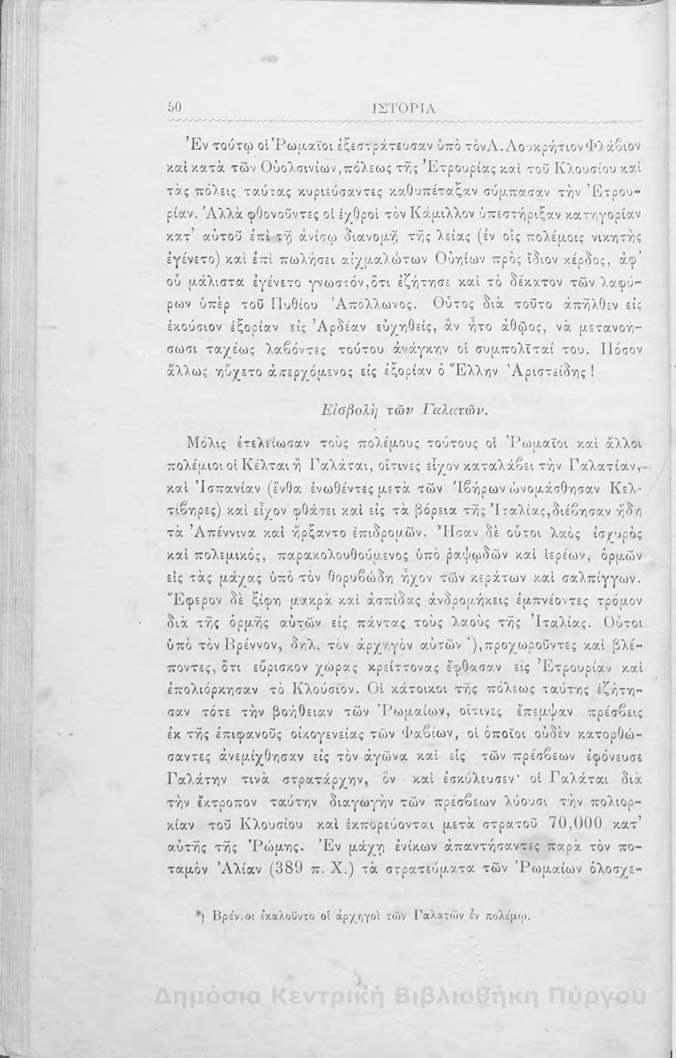 Βαθμίδα εκπαίδευσης: Δευτεροβάθμια Μάθημα: Ιστορία Γλώσσα: Καθαρεύουσα |