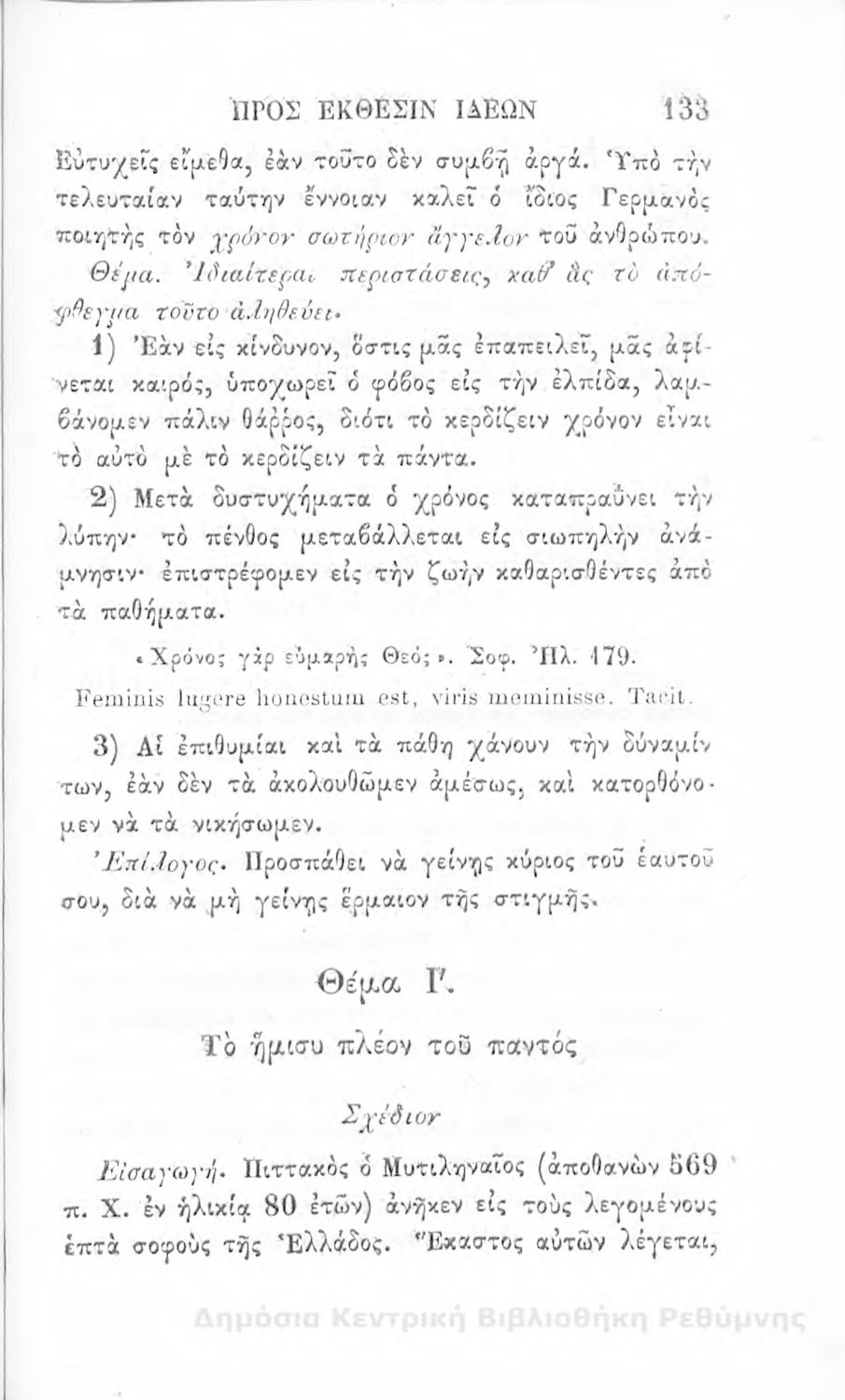 Τίτλος: Σχέδια προς έκθεσιν ιδεών προς χρήσιν της Α΄, Β΄, και Γ΄ τάξεως του γυμνασίου / υπό Μιχαήλ Δεφνέρου