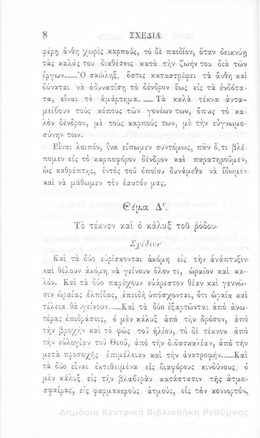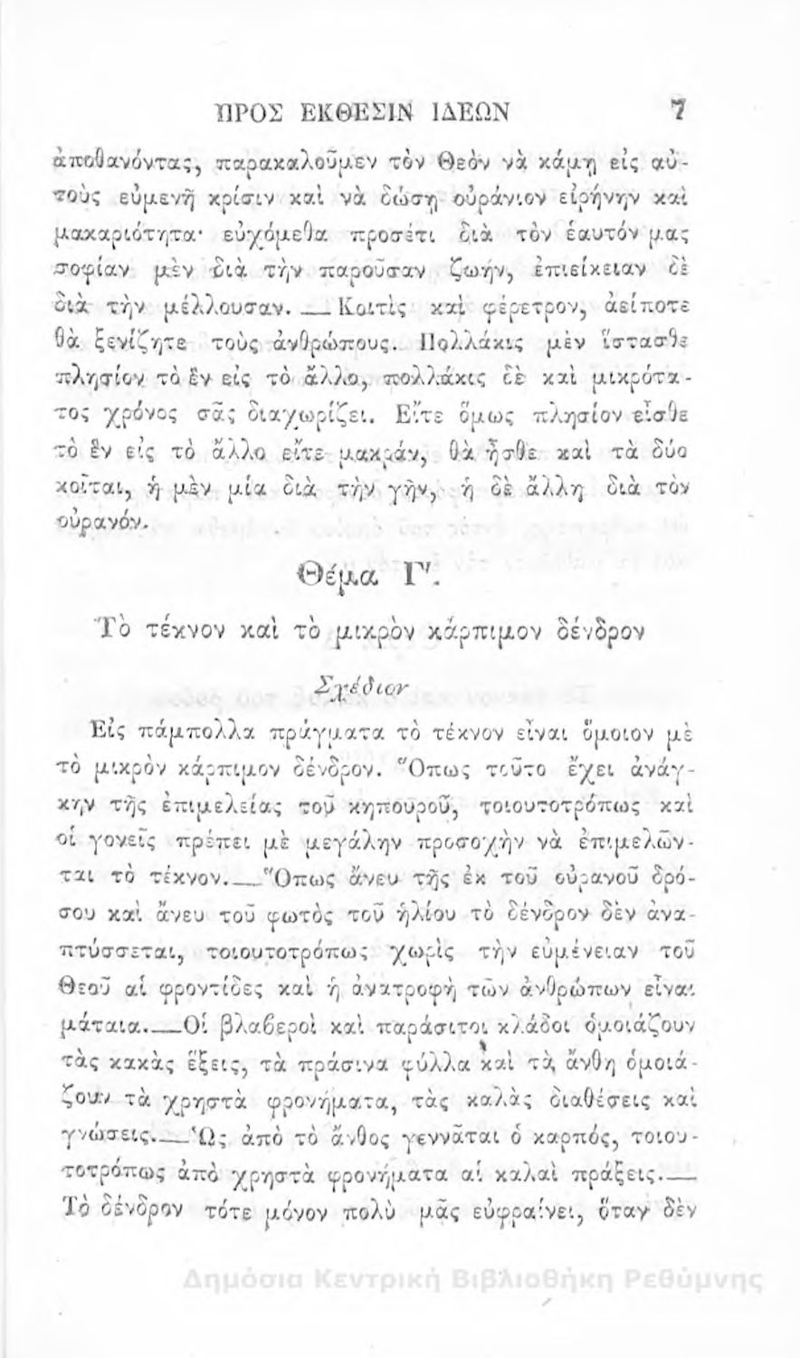 Τίτλος: Σχέδια προς έκθεσιν ιδεών προς χρήσιν της Α΄, Β΄, και Γ΄ τάξεως του γυμνασίου / υπό Μιχαήλ Δεφνέρου