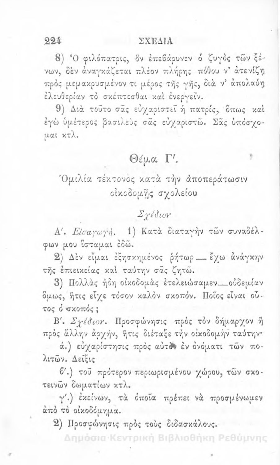 Σχέδια προς έκθεσιν ιδεών προς χρήσιν της Α΄, Β΄, και Γ΄ τάξεως του γυμνασίου / υπό Μιχαήλ Δεφνέρου