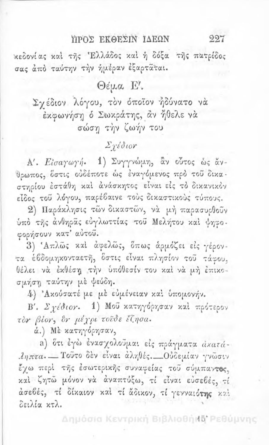 Τίτλος: Σχέδια προς έκθεσιν ιδεών προς χρήσιν της Α΄, Β΄, και Γ΄ τάξεως του γυμνασίου / υπό Μιχαήλ Δεφνέρου