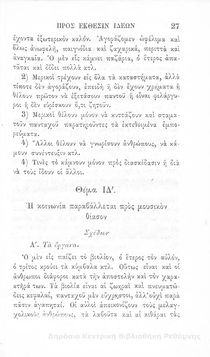 Σχέδια προς έκθεσιν ιδεών προς χρήσιν της Α΄, Β΄, και Γ΄ τάξεως του γυμνασίου / υπό Μιχαήλ Δεφνέρου
