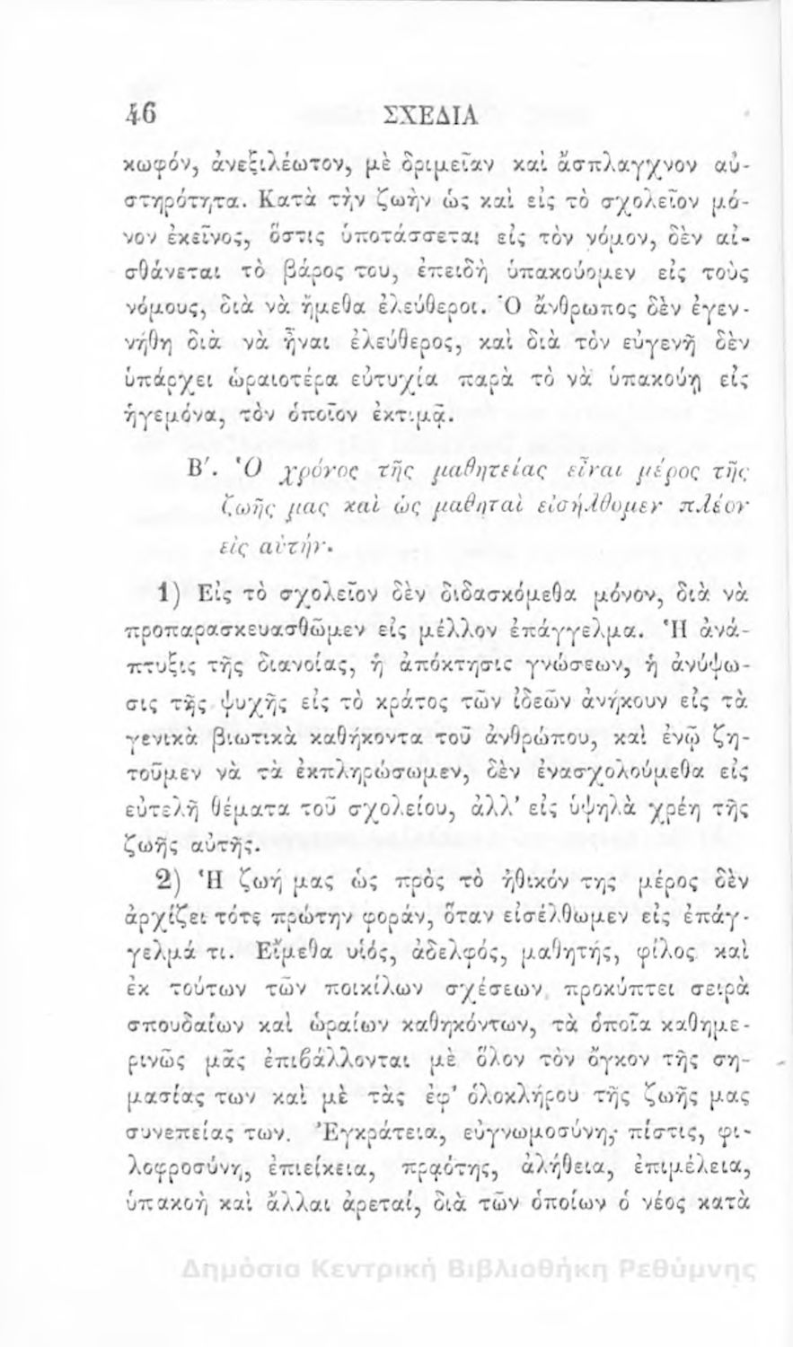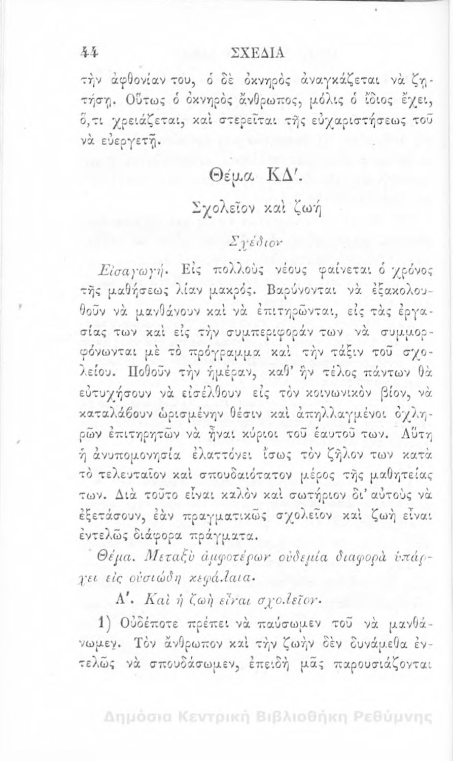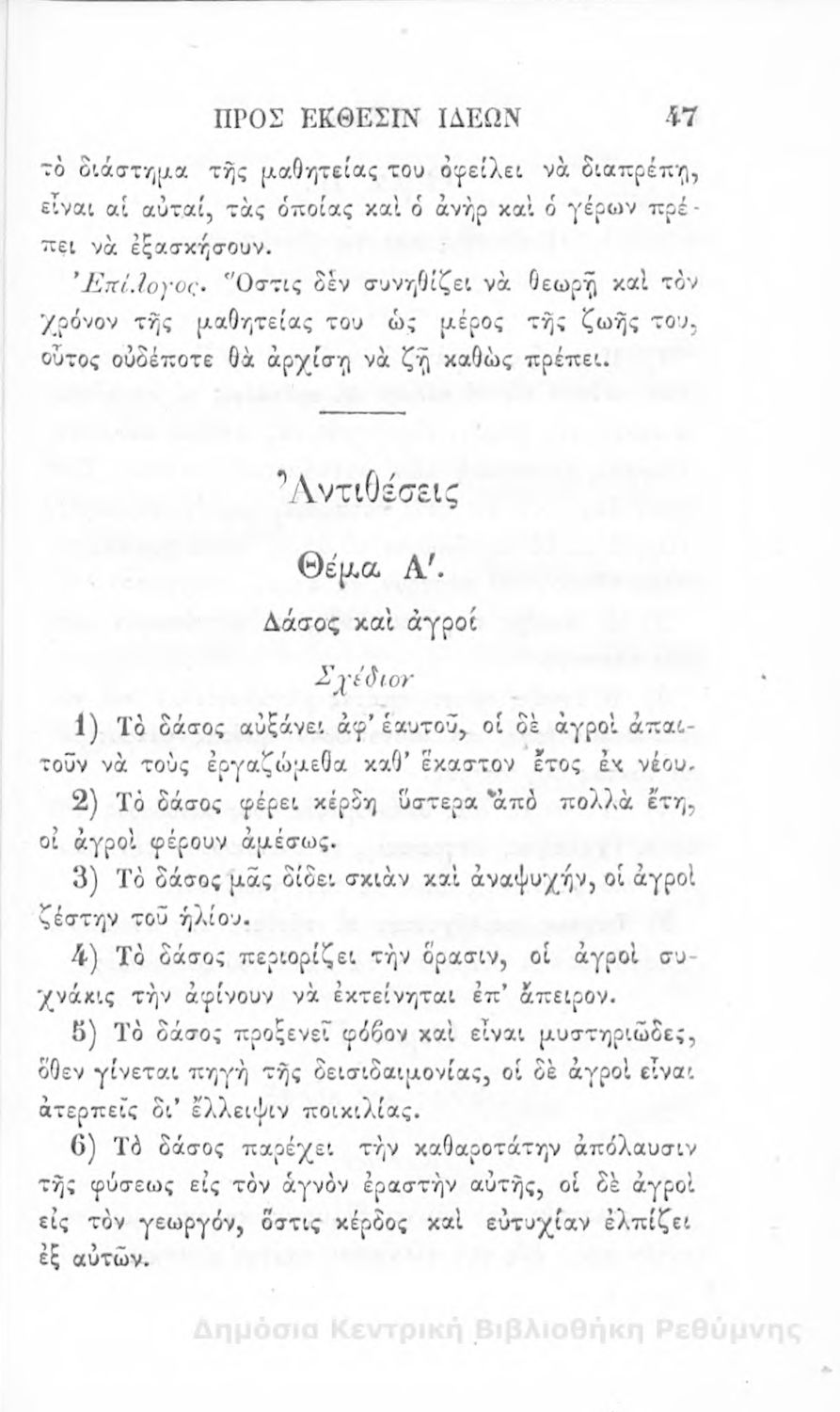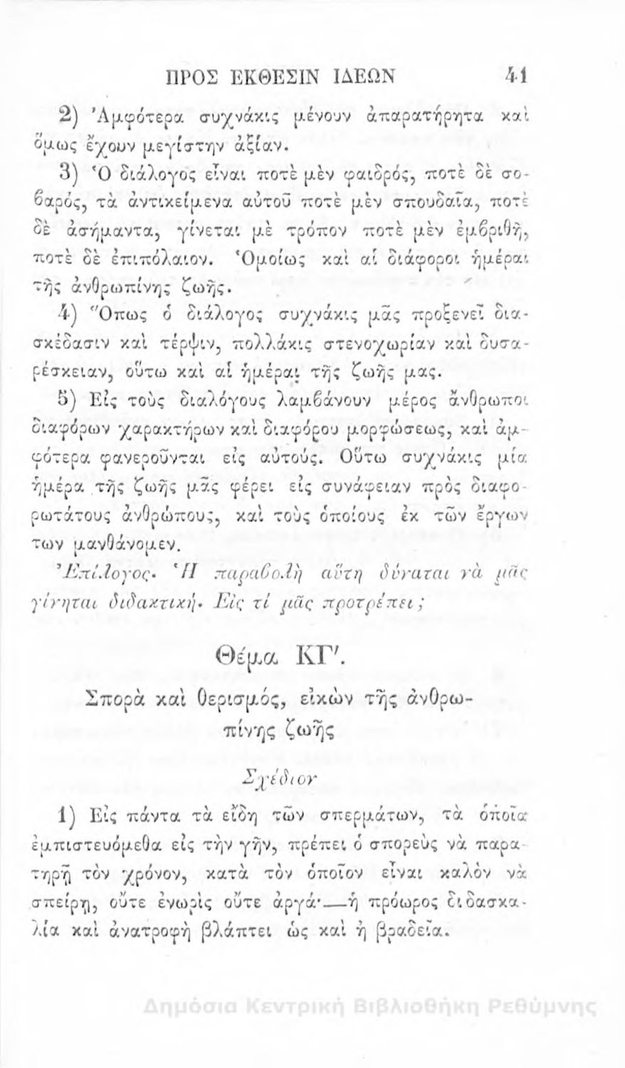 Τίτλος: Σχέδια προς έκθεσιν ιδεών προς χρήσιν της Α΄, Β΄, και Γ΄ τάξεως του γυμνασίου / υπό Μιχαήλ Δεφνέρου