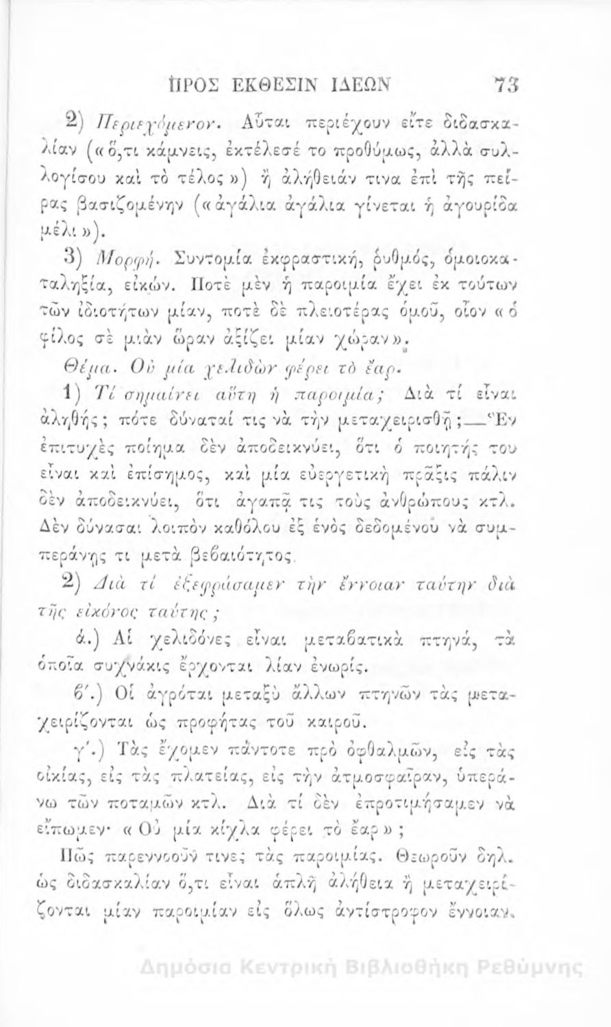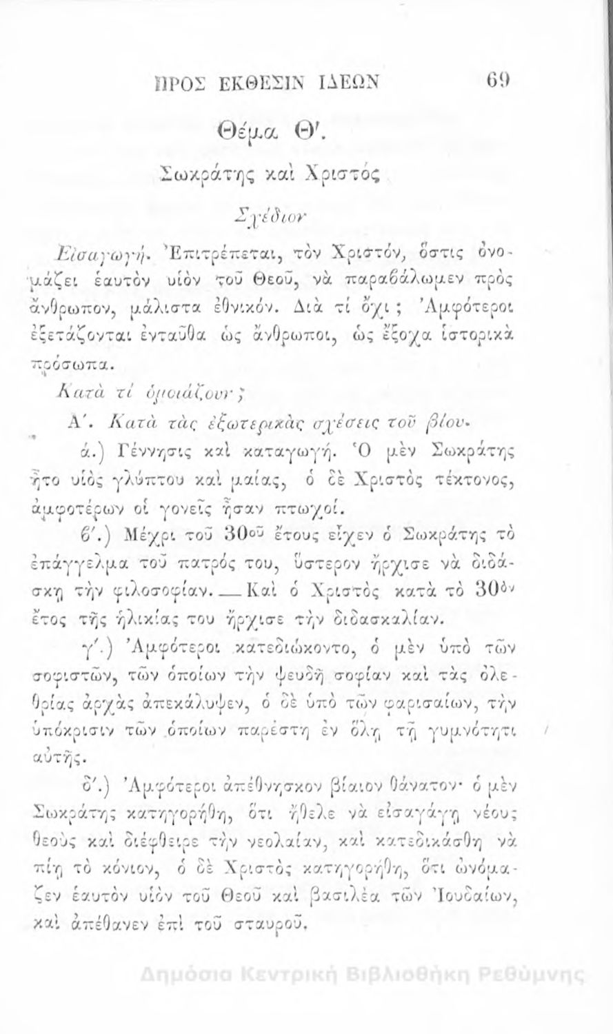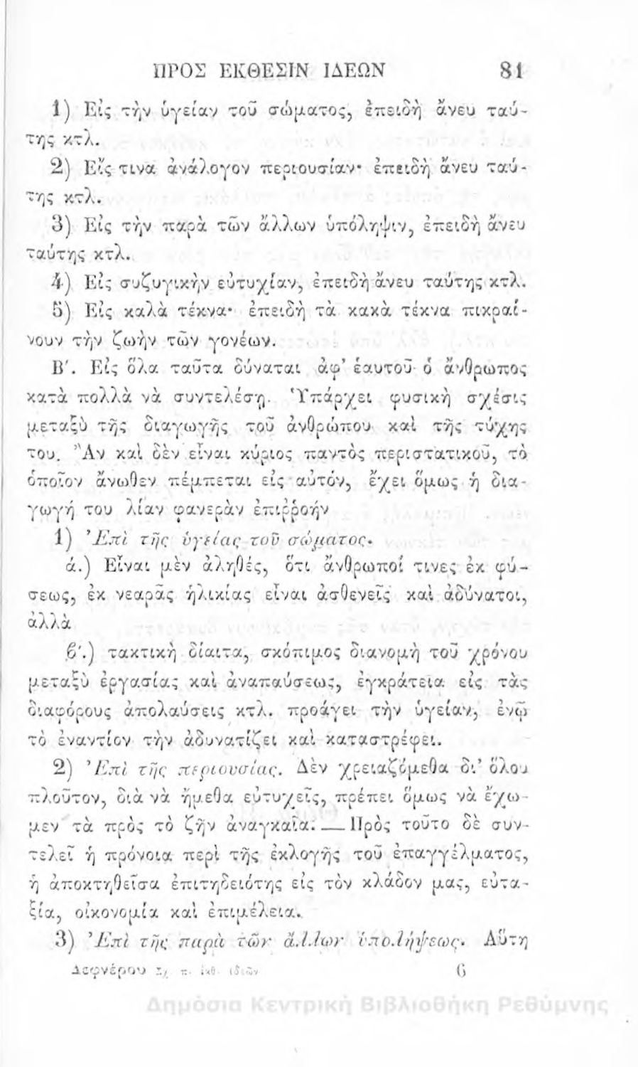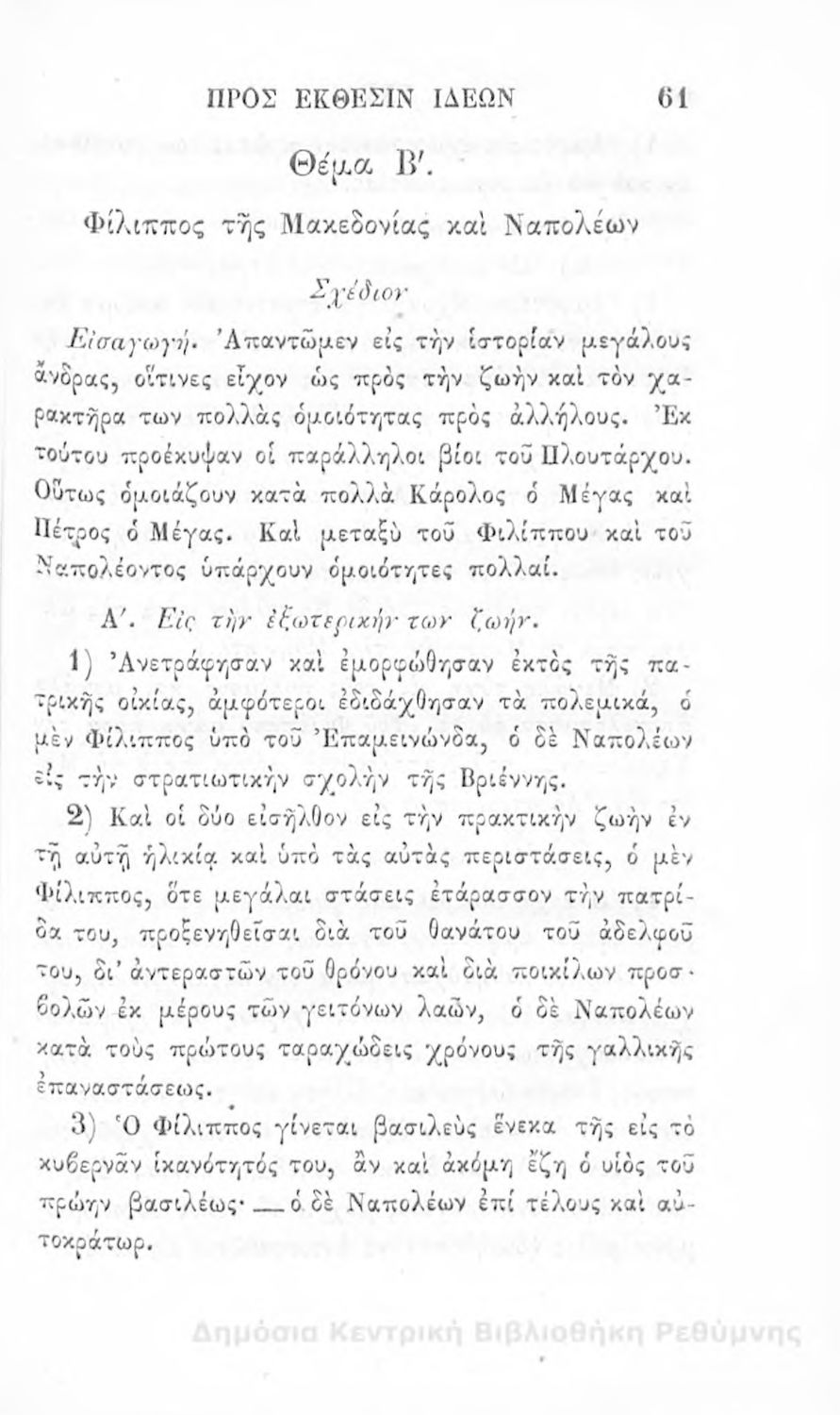 Σχέδια προς έκθεσιν ιδεών προς χρήσιν της Α΄, Β΄, και Γ΄ τάξεως του γυμνασίου / υπό Μιχαήλ Δεφνέρου