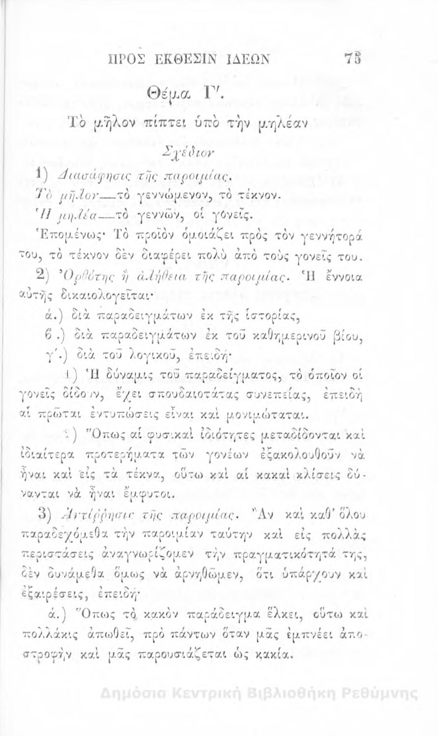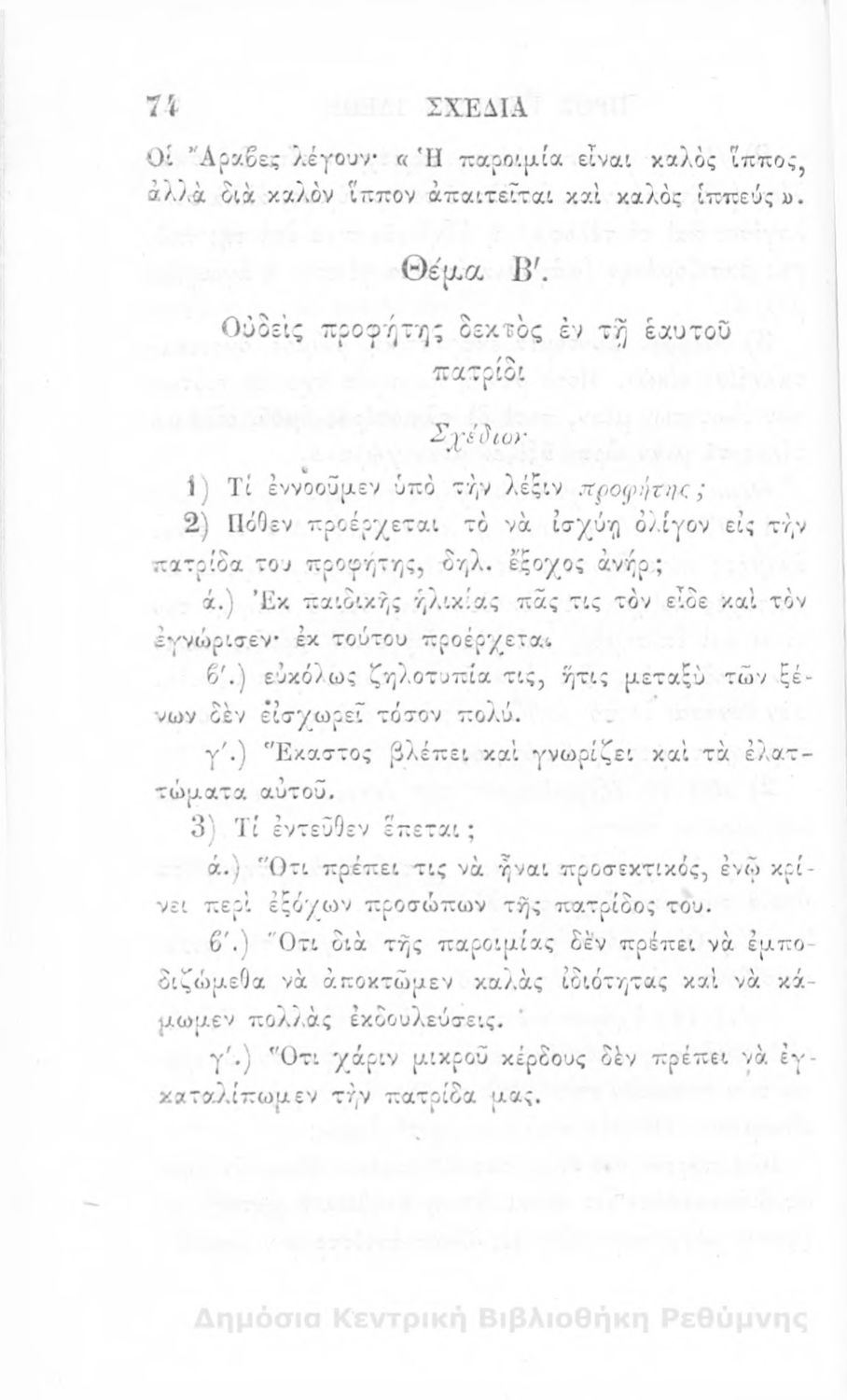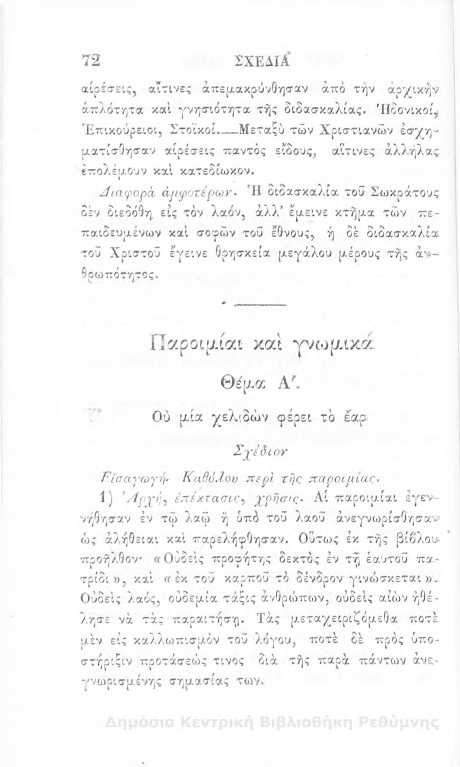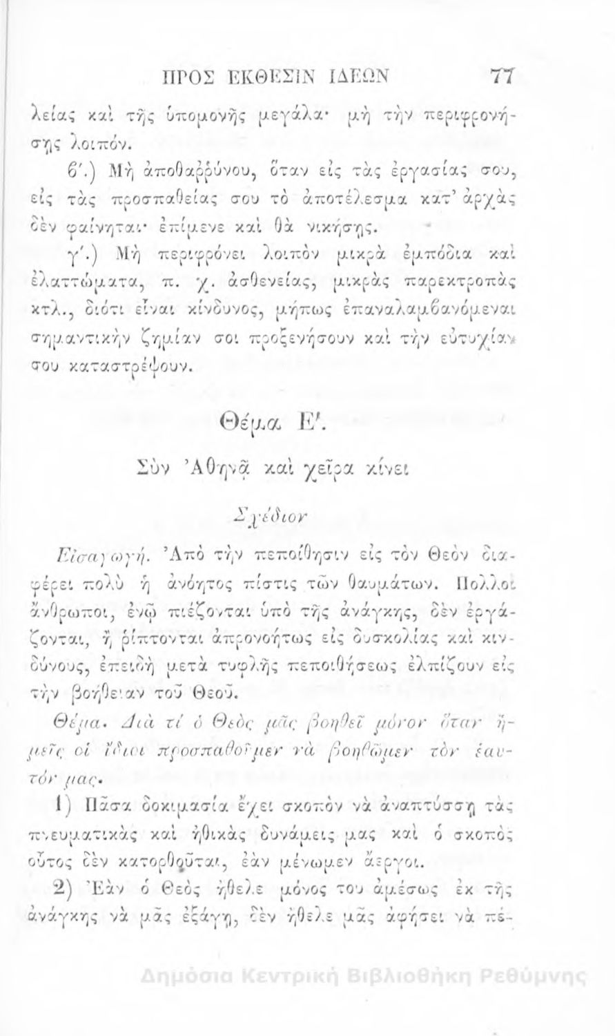 Τίτλος: Σχέδια προς έκθεσιν ιδεών προς χρήσιν της Α΄, Β΄, και Γ΄ τάξεως του γυμνασίου / υπό Μιχαήλ Δεφνέρου