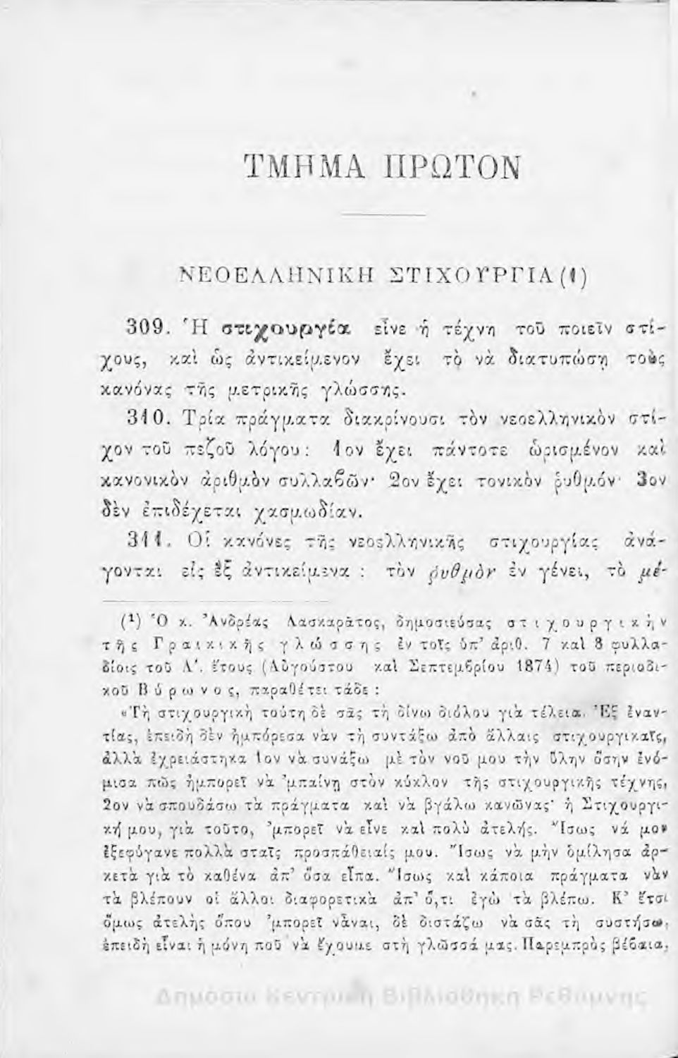 Μαθητικό βοήθημα Αρχαίων Ελληνικών για τα Ελληνικά Σχολεία, Παρθεναγωγεία και Γυμνάσια που περιλαμβάνει γραμματική της αρχαίας ελληνικής και κατάλογο ανωμάλων ρημάτων.