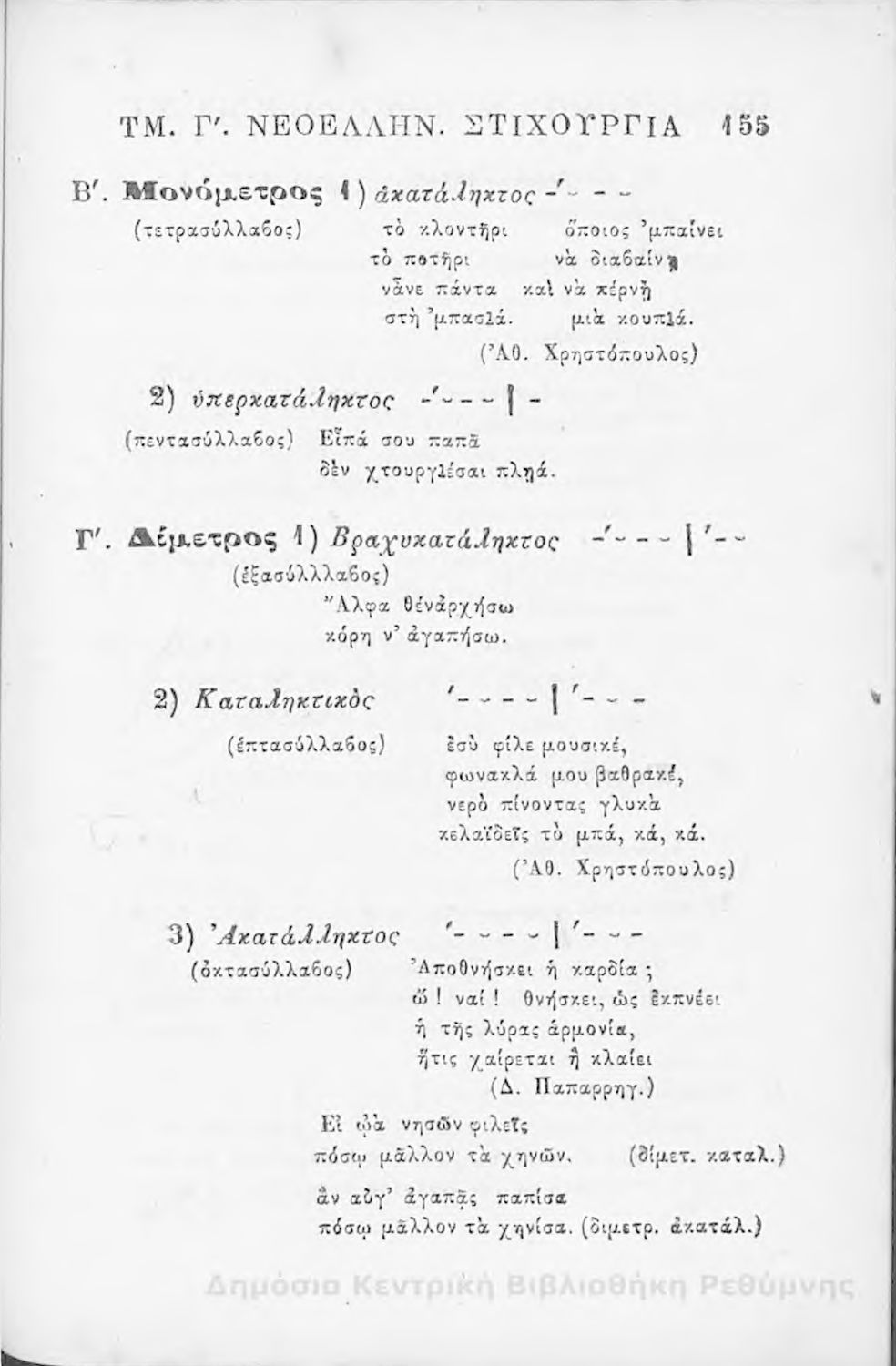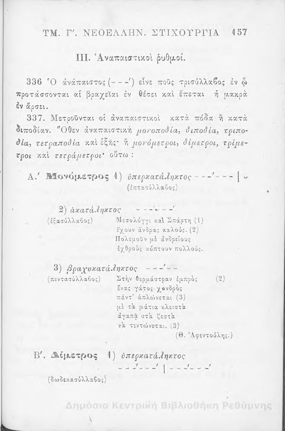 Μαθητικό βοήθημα Αρχαίων Ελληνικών για τα Ελληνικά Σχολεία, Παρθεναγωγεία και Γυμνάσια που περιλαμβάνει γραμματική της αρχαίας ελληνικής και κατάλογο ανωμάλων ρημάτων.
