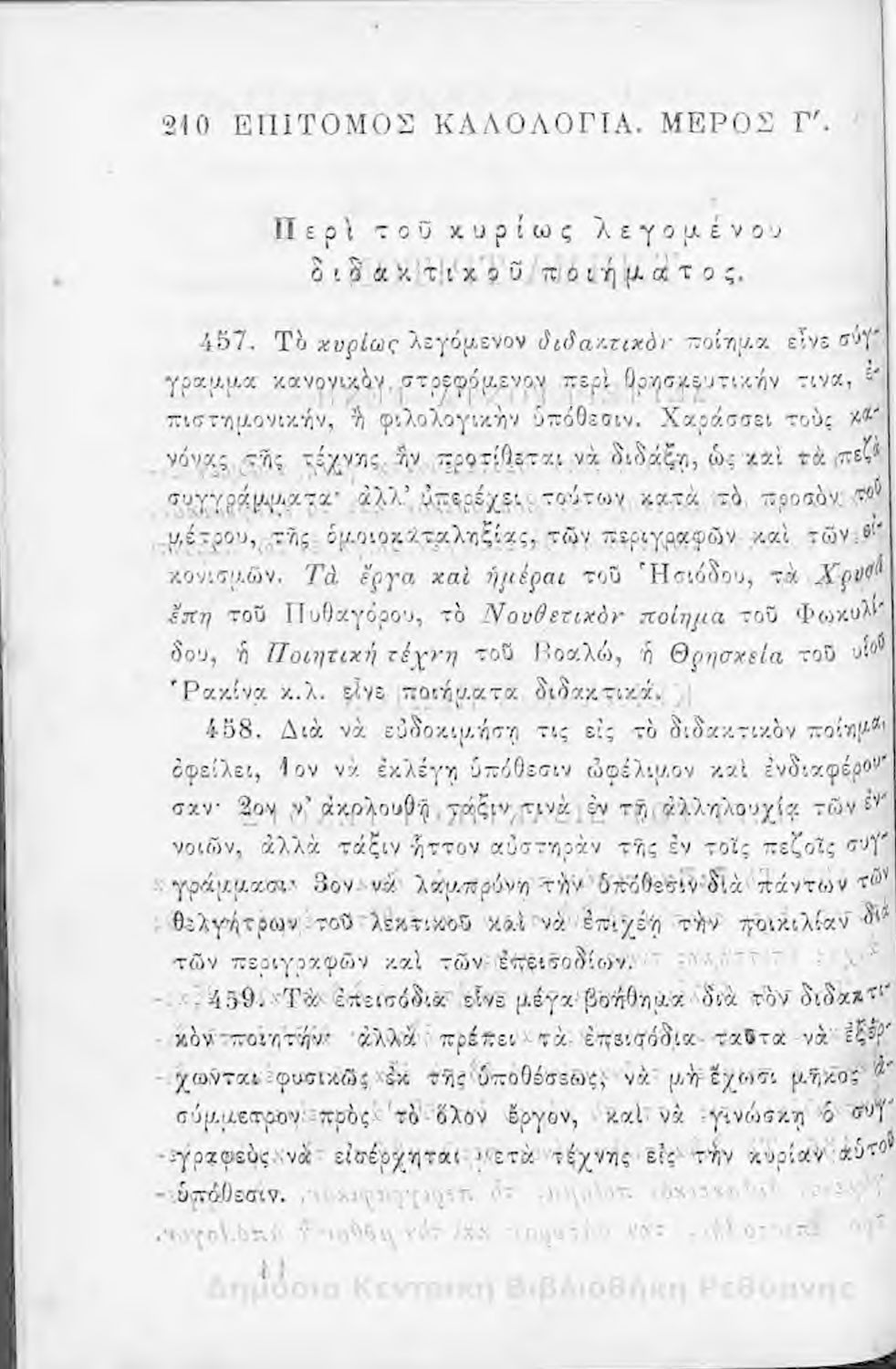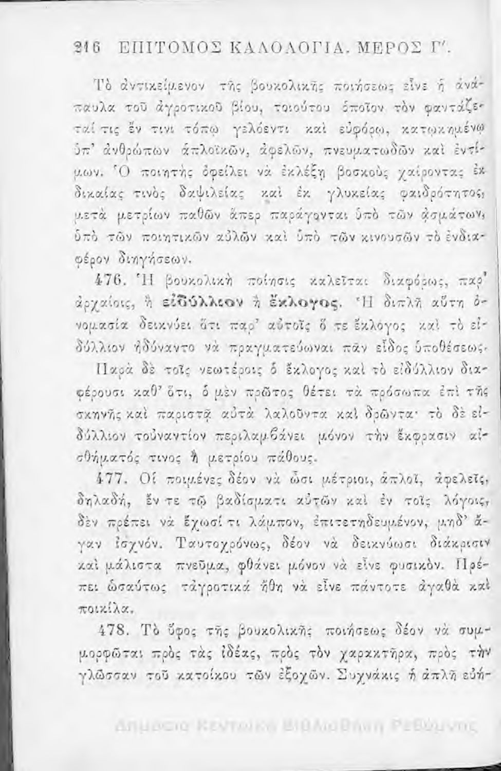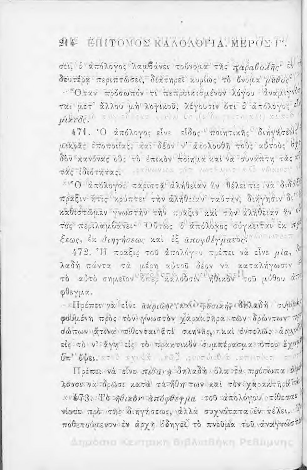 Τίτλος: Επίτομος καλολογία : ήτοι περί της τέχνης του ευ λέγειν : προς χρήσιν των νέων και δη των εις τα γυμνάσια και διδασκαλεία φοιτώντων / Δημητρίου Σ. Ζαλούχου, εκδίδοται δαπάνη Ανέστη Κωνσταντινίδου