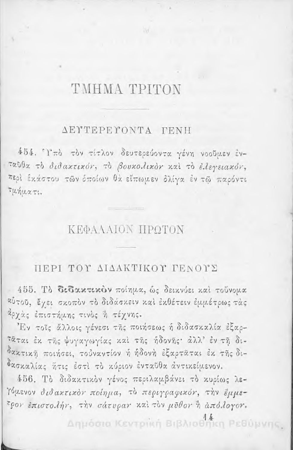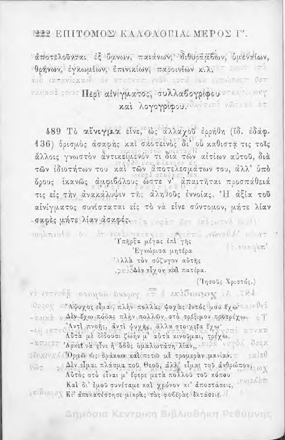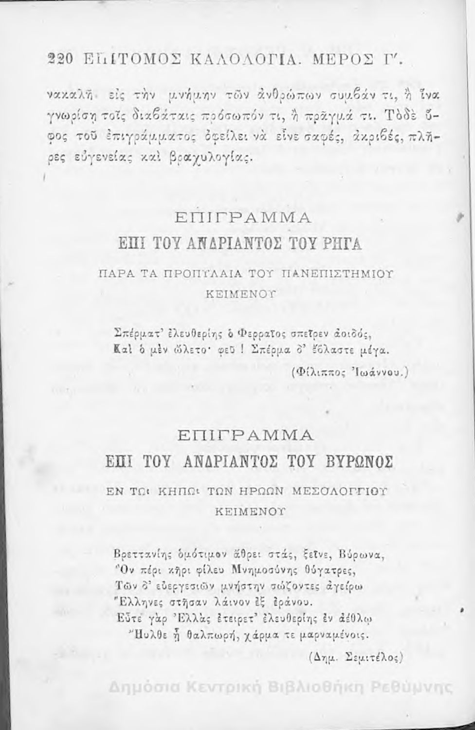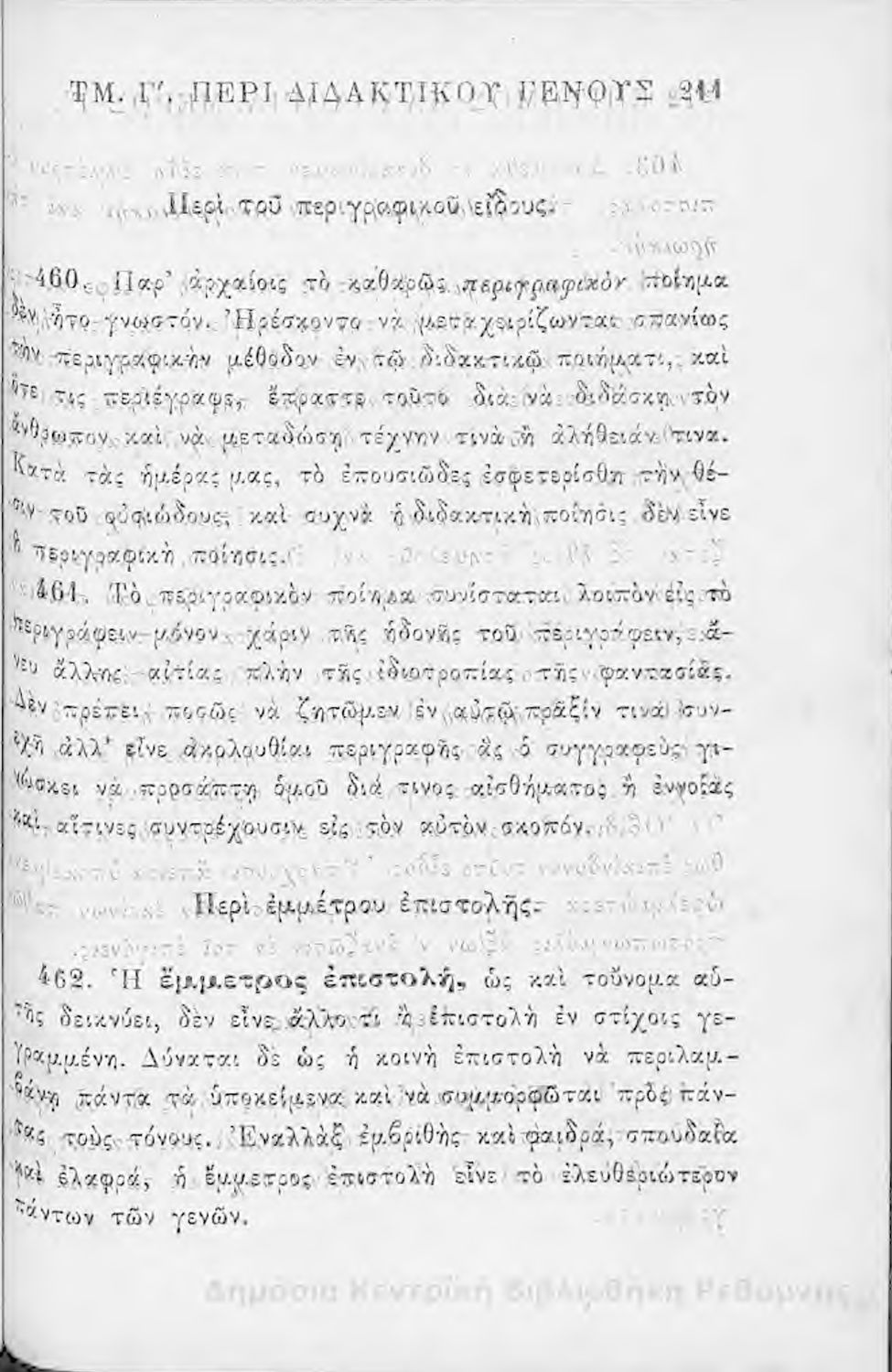 Τίτλος: Επίτομος καλολογία : ήτοι περί της τέχνης του ευ λέγειν : προς χρήσιν των νέων και δη των εις τα γυμνάσια και διδασκαλεία φοιτώντων / Δημητρίου Σ. Ζαλούχου, εκδίδοται δαπάνη Ανέστη Κωνσταντινίδου