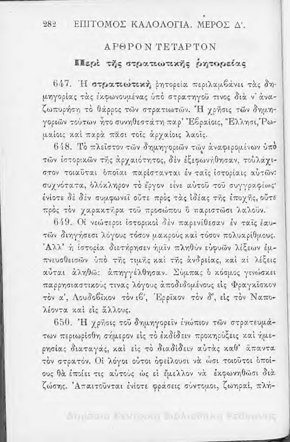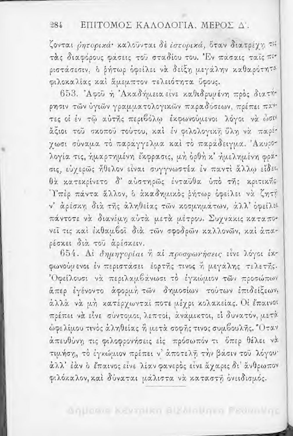 Τίτλος: Επίτομος καλολογία : ήτοι περί της τέχνης του ευ λέγειν : προς χρήσιν των νέων και δη των εις τα γυμνάσια και διδασκαλεία φοιτώντων / Δημητρίου Σ. Ζαλούχου, εκδίδοται δαπάνη Ανέστη Κωνσταντινίδου