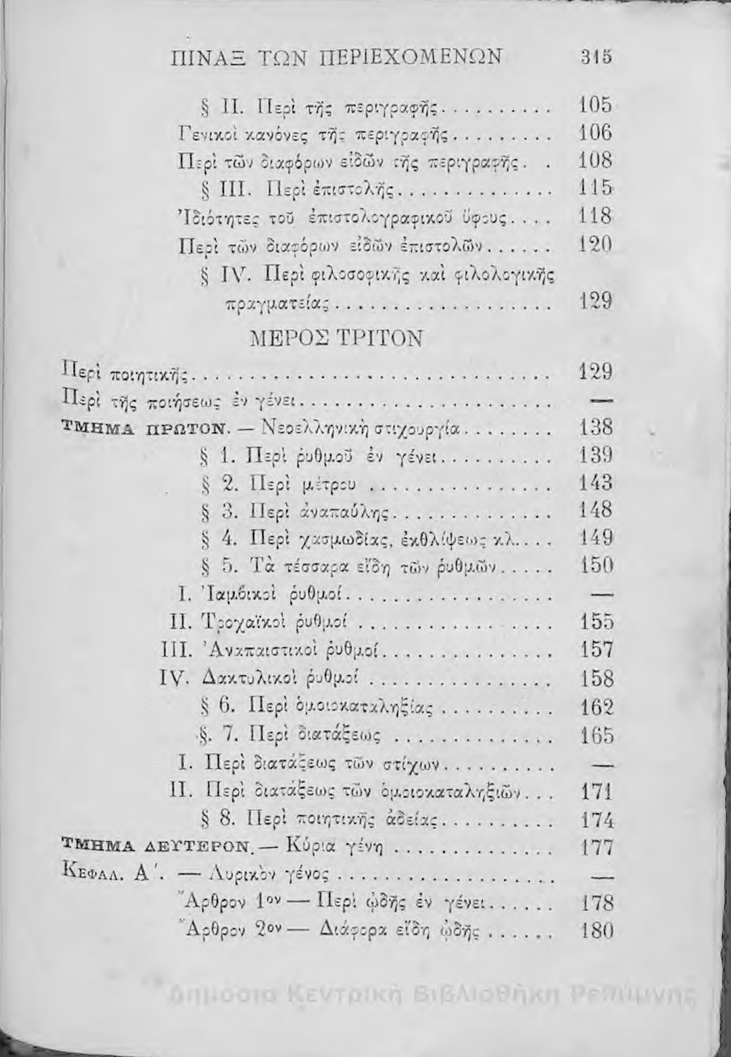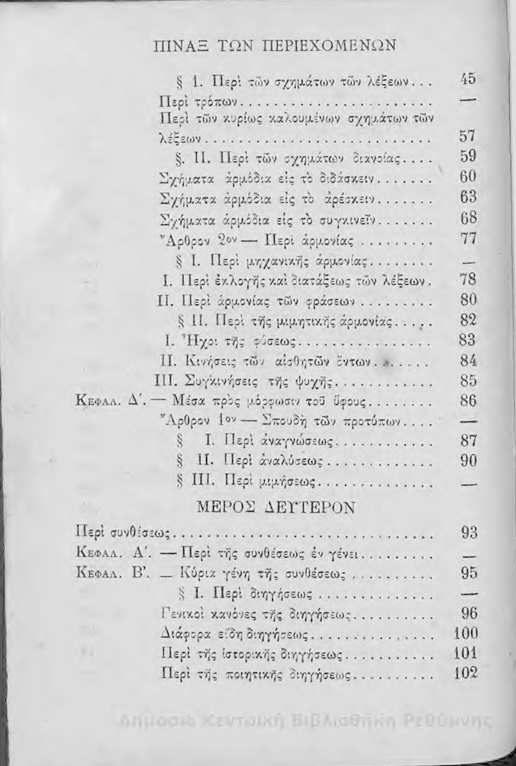Μαθητικό βοήθημα Νέων Ελληνικών για τα Γυμνάσια και τα Διδασκαλεία που περιέχει στοιχεία για το ύφος, τα σχήματα και τη σύνθεση του λόγου.