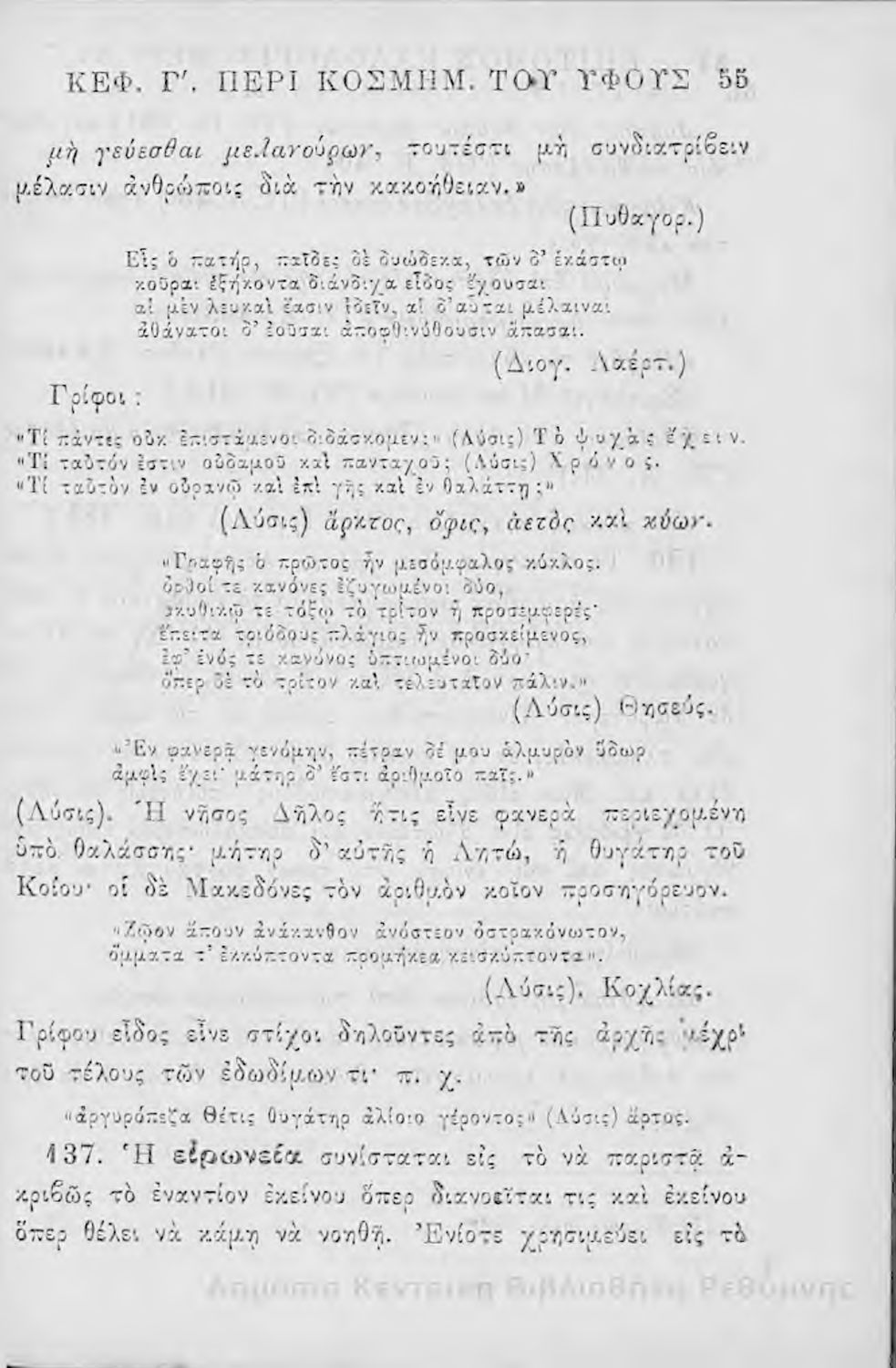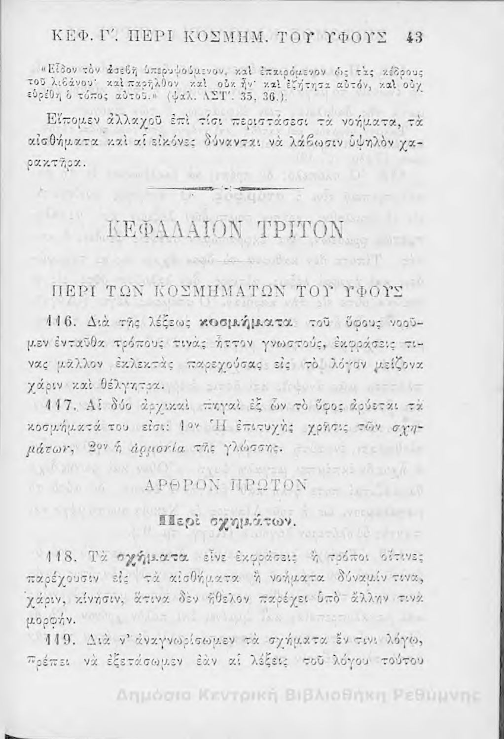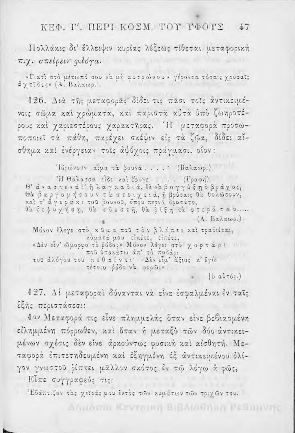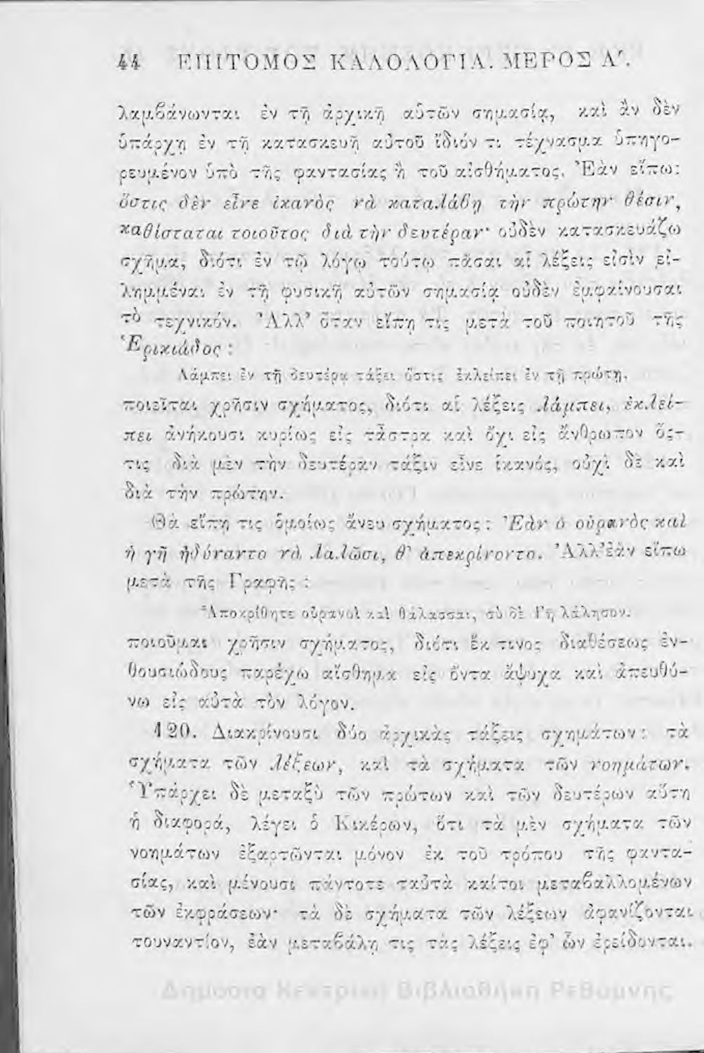 Τίτλος: Επίτομος καλολογία : ήτοι περί της τέχνης του ευ λέγειν : προς χρήσιν των νέων και δη των εις τα γυμνάσια και διδασκαλεία φοιτώντων / Δημητρίου Σ. Ζαλούχου, εκδίδοται δαπάνη Ανέστη Κωνσταντινίδου