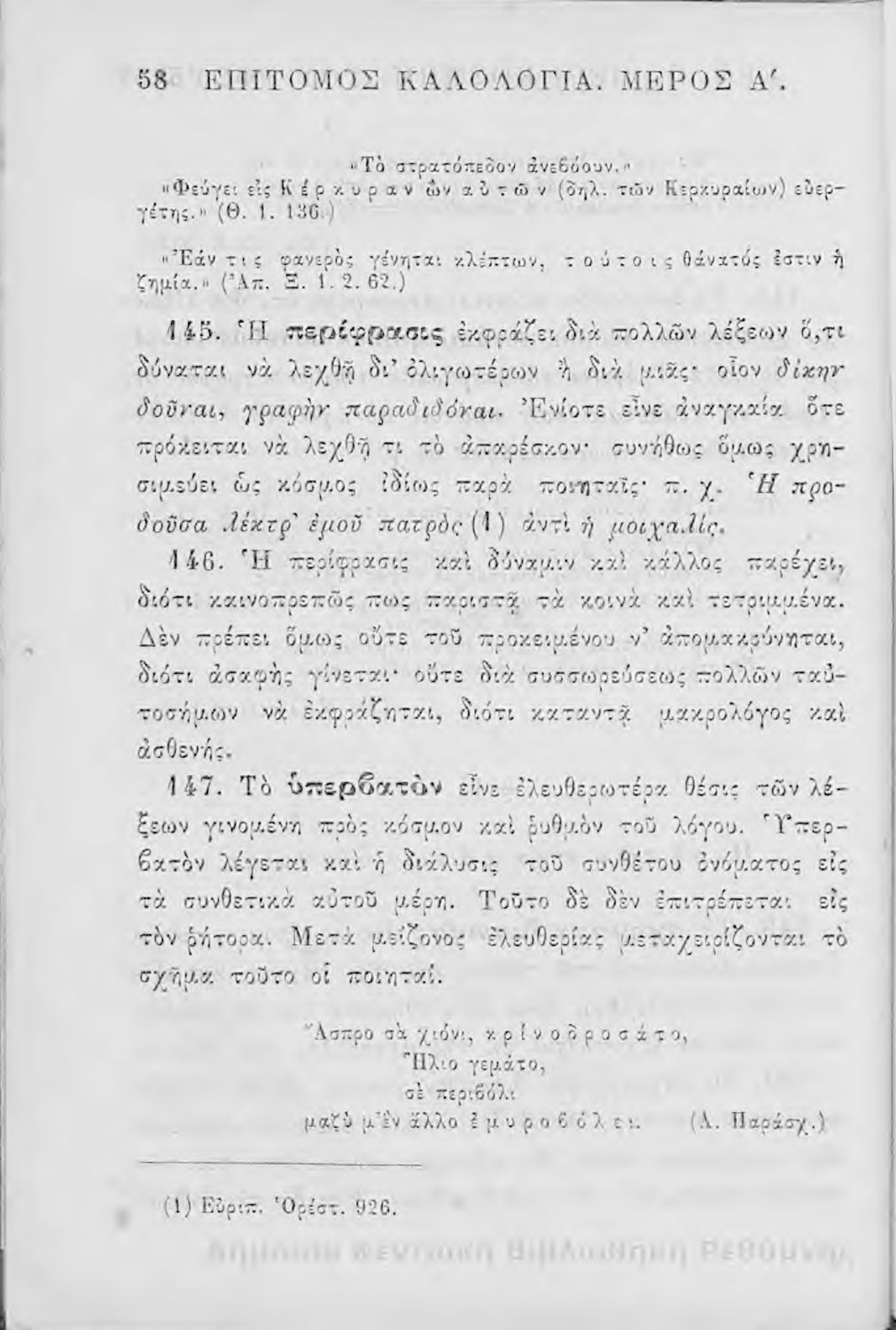 Επίτομος καλολογία : ήτοι περί της τέχνης του ευ λέγειν : προς χρήσιν των νέων και δη των εις τα γυμνάσια και διδασκαλεία φοιτώντων / Δημητρίου Σ. Ζαλούχου, εκδίδοται δαπάνη Ανέστη Κωνσταντινίδου