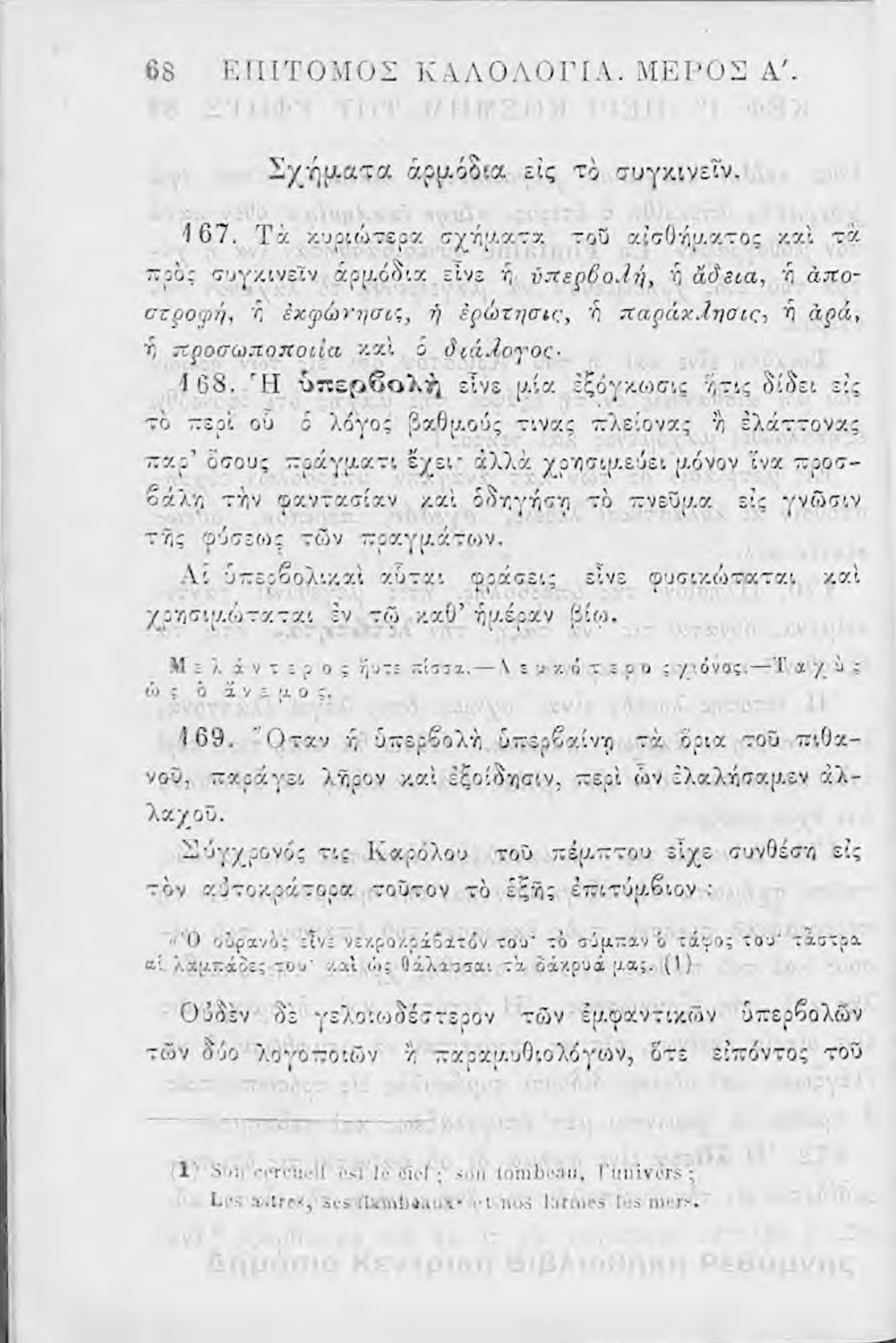 Επίτομος καλολογία : ήτοι περί της τέχνης του ευ λέγειν : προς χρήσιν των νέων και δη των εις τα γυμνάσια και διδασκαλεία φοιτώντων / Δημητρίου Σ. Ζαλούχου, εκδίδοται δαπάνη Ανέστη Κωνσταντινίδου