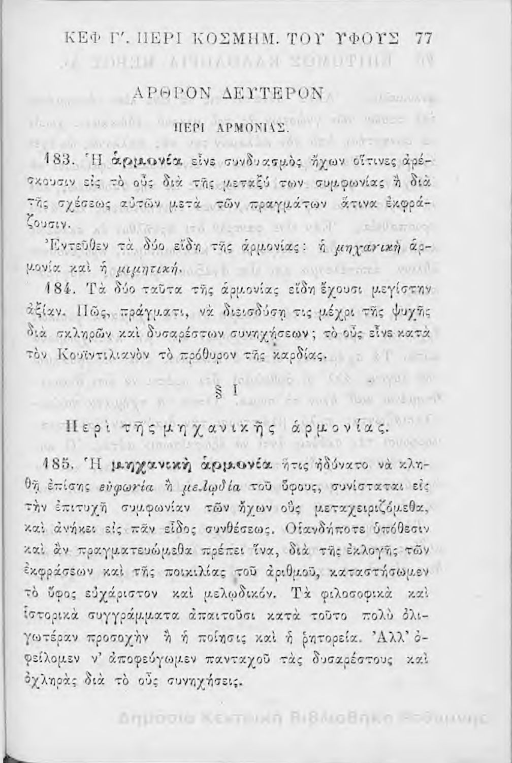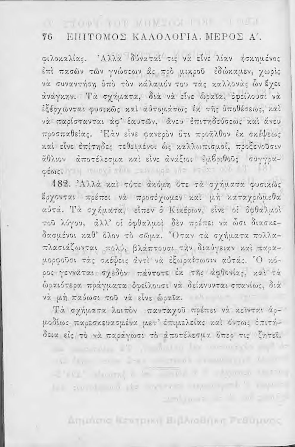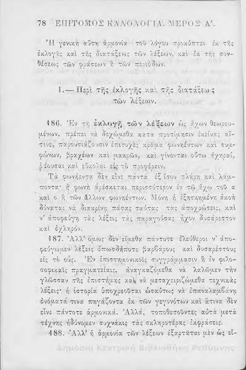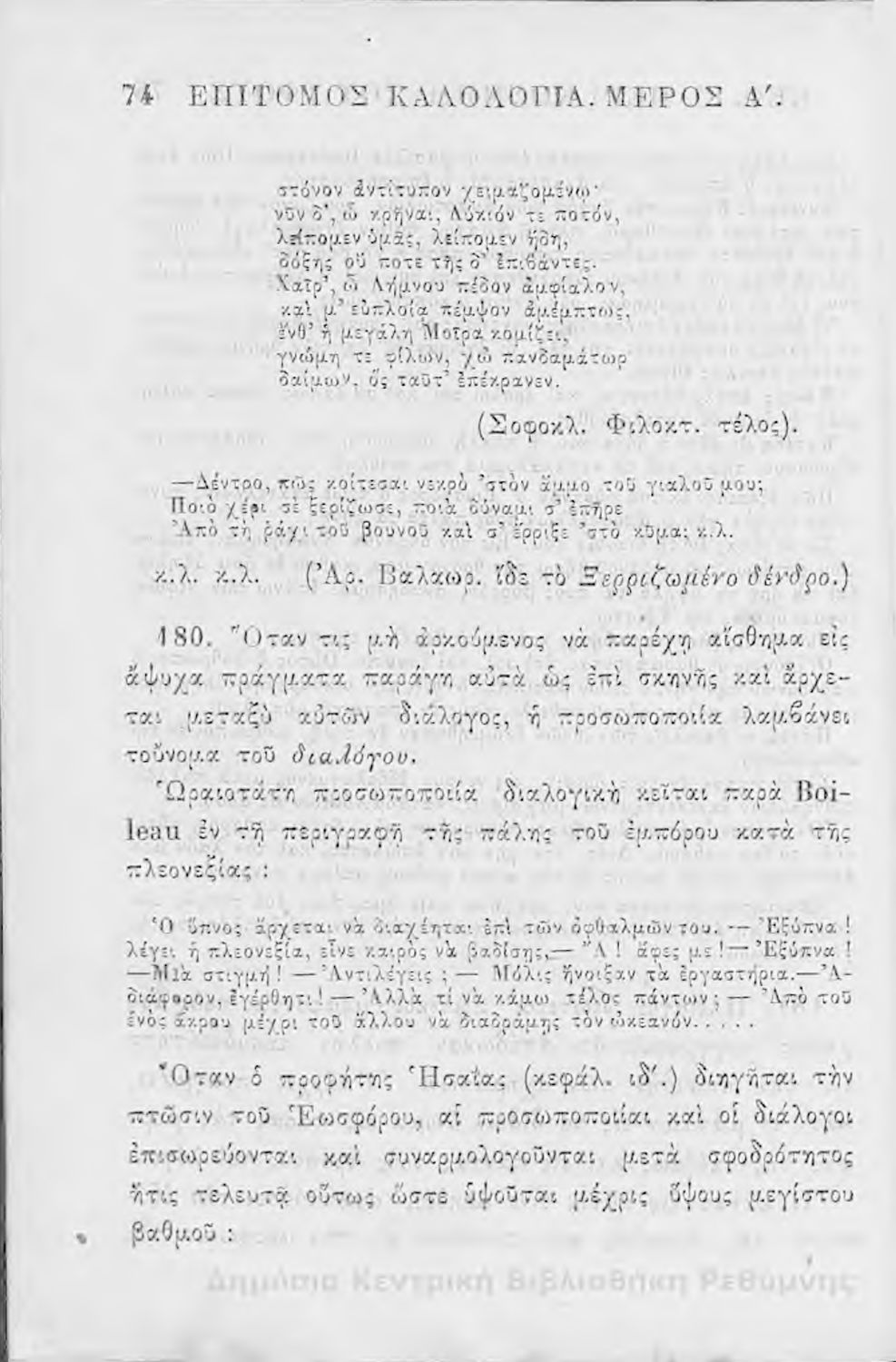 Τίτλος: Επίτομος καλολογία : ήτοι περί της τέχνης του ευ λέγειν : προς χρήσιν των νέων και δη των εις τα γυμνάσια και διδασκαλεία φοιτώντων / Δημητρίου Σ. Ζαλούχου, εκδίδοται δαπάνη Ανέστη Κωνσταντινίδου