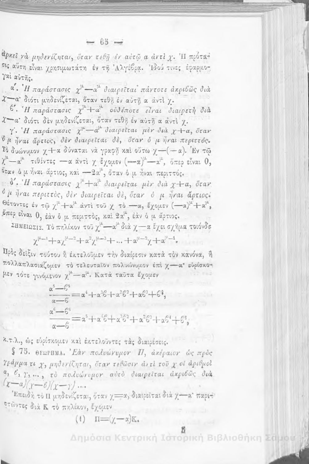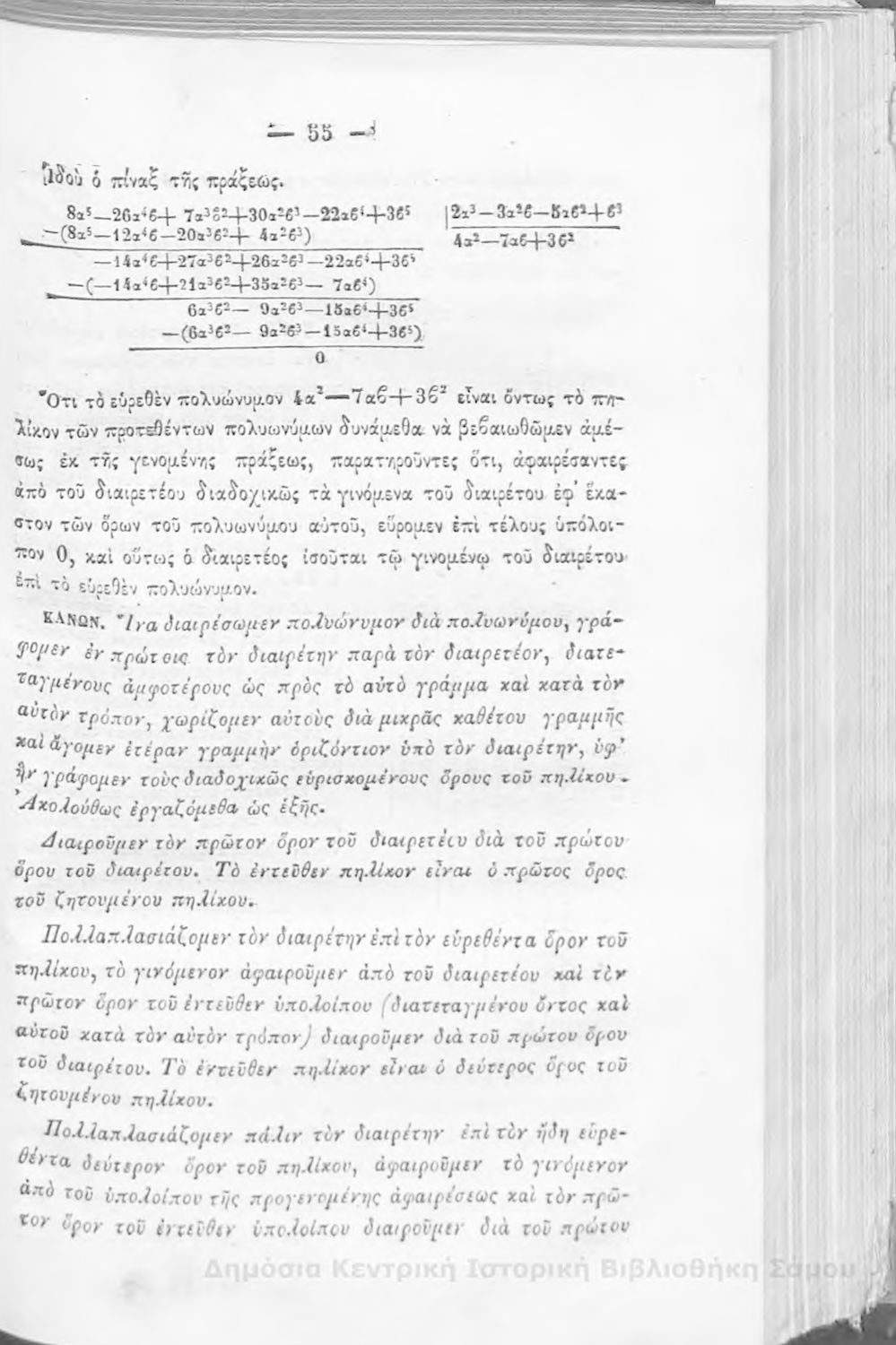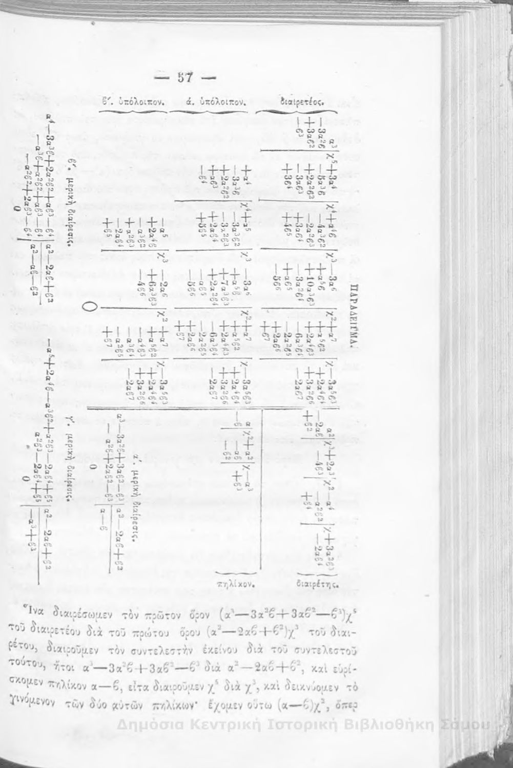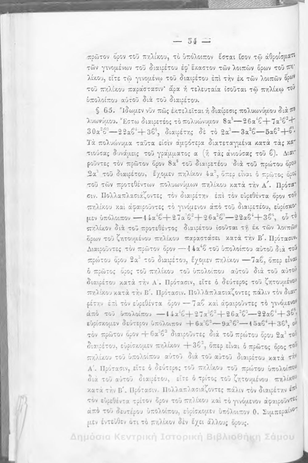 Βαθμίδα εκπαίδευσης: Δευτεροβάθμια Μάθημα: Άλγεβρα Γλώσσα: Καθαρεύουσα |