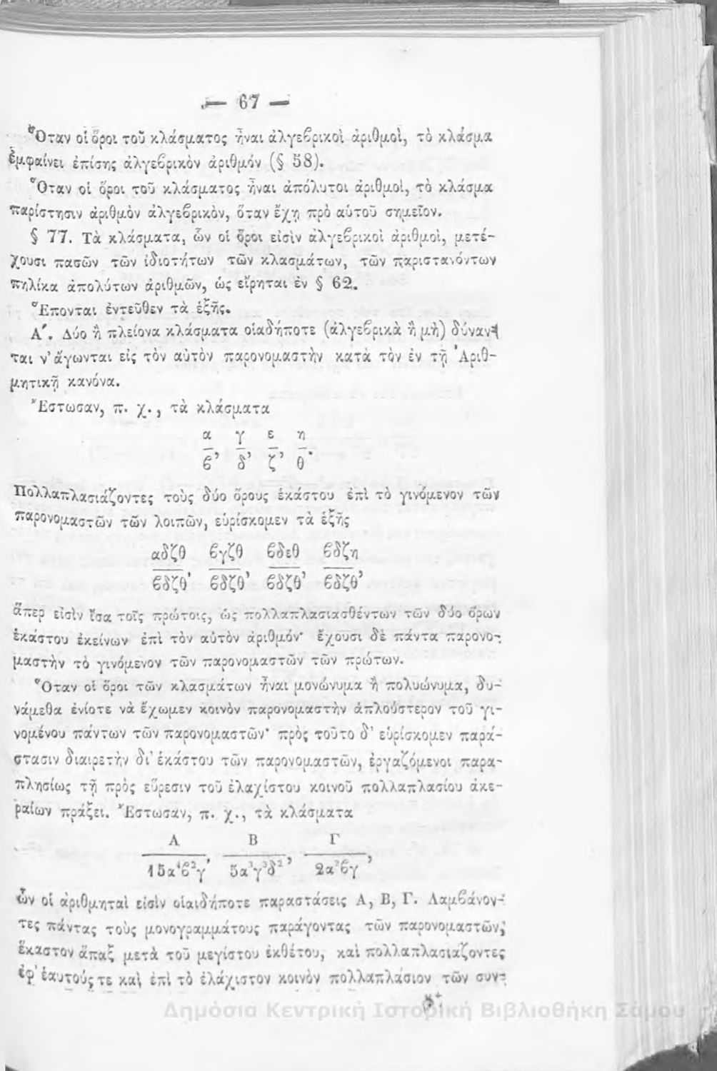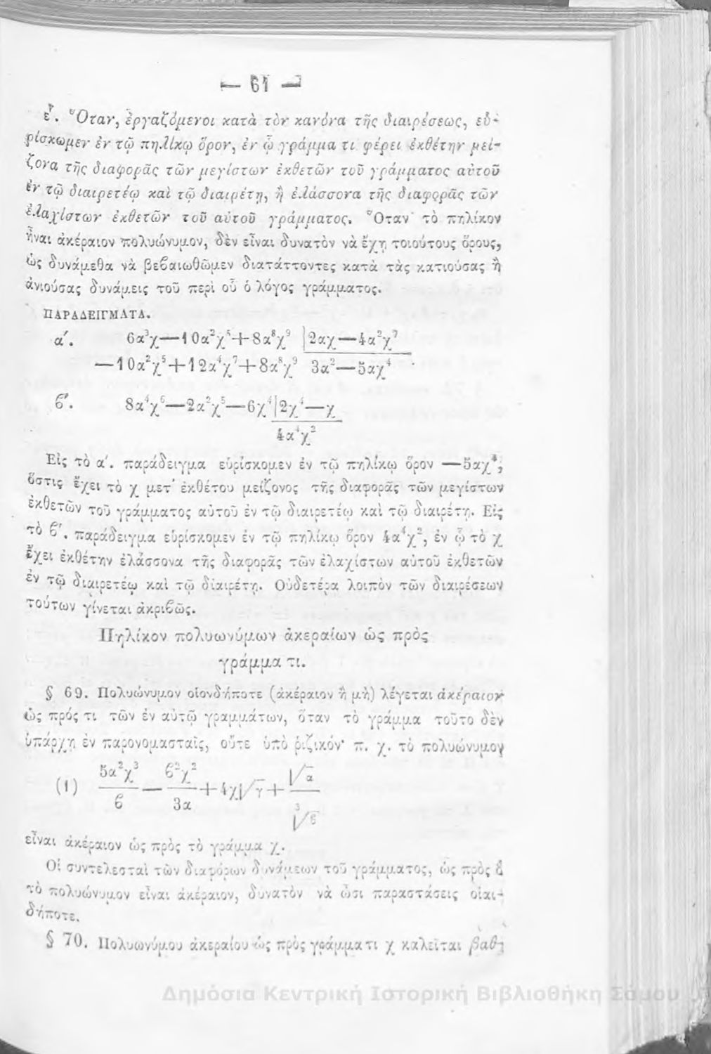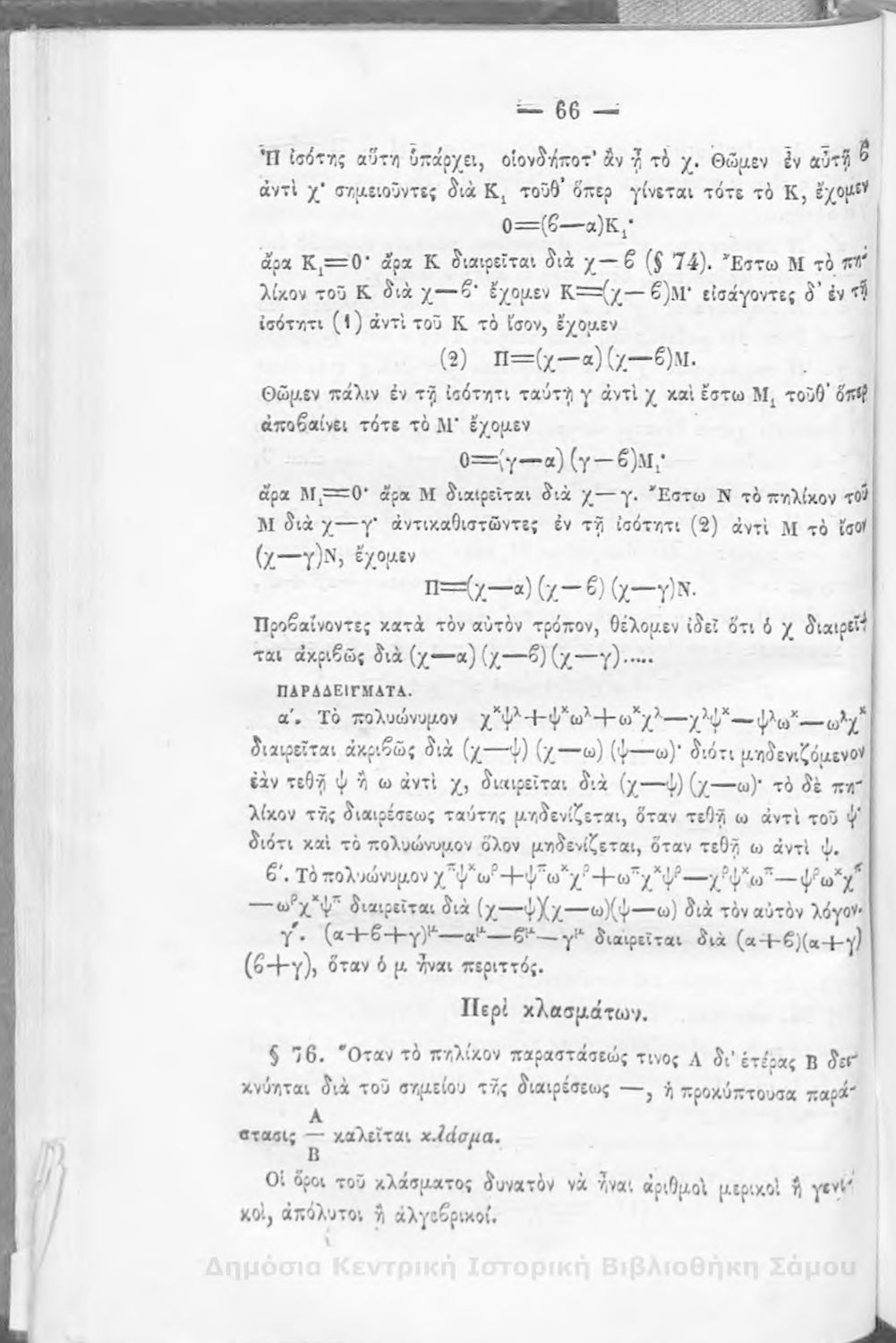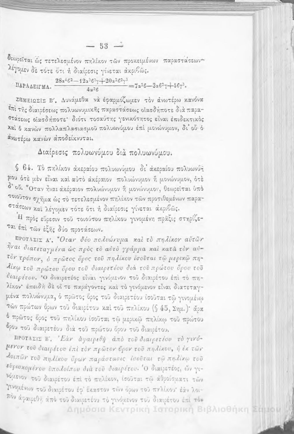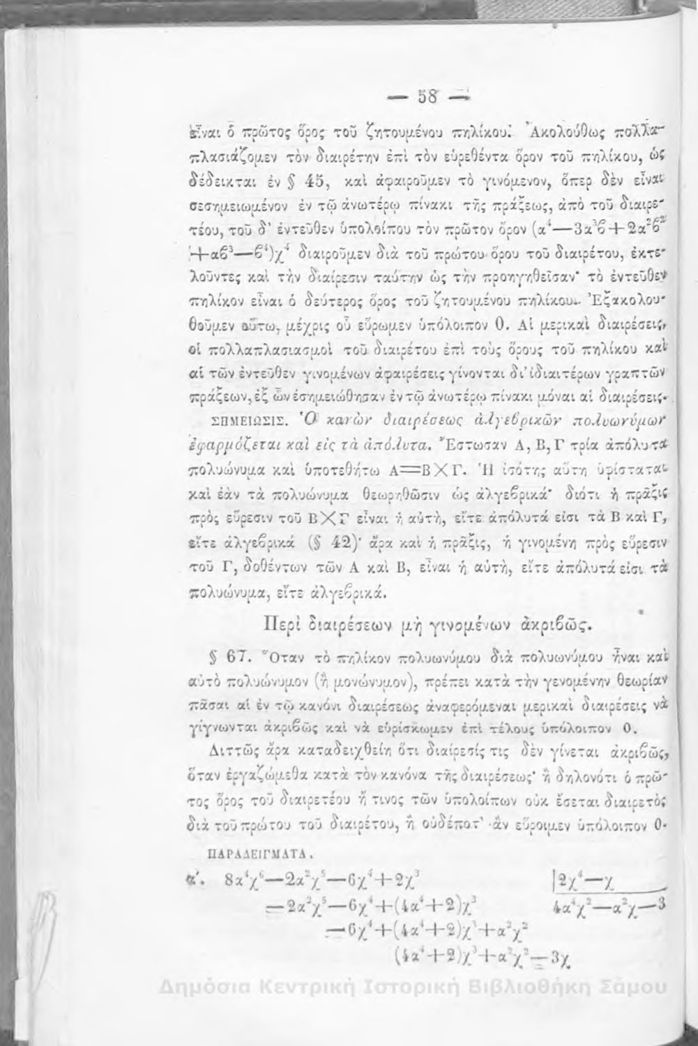 Βαθμίδα εκπαίδευσης: Δευτεροβάθμια Μάθημα: Άλγεβρα Γλώσσα: Καθαρεύουσα |