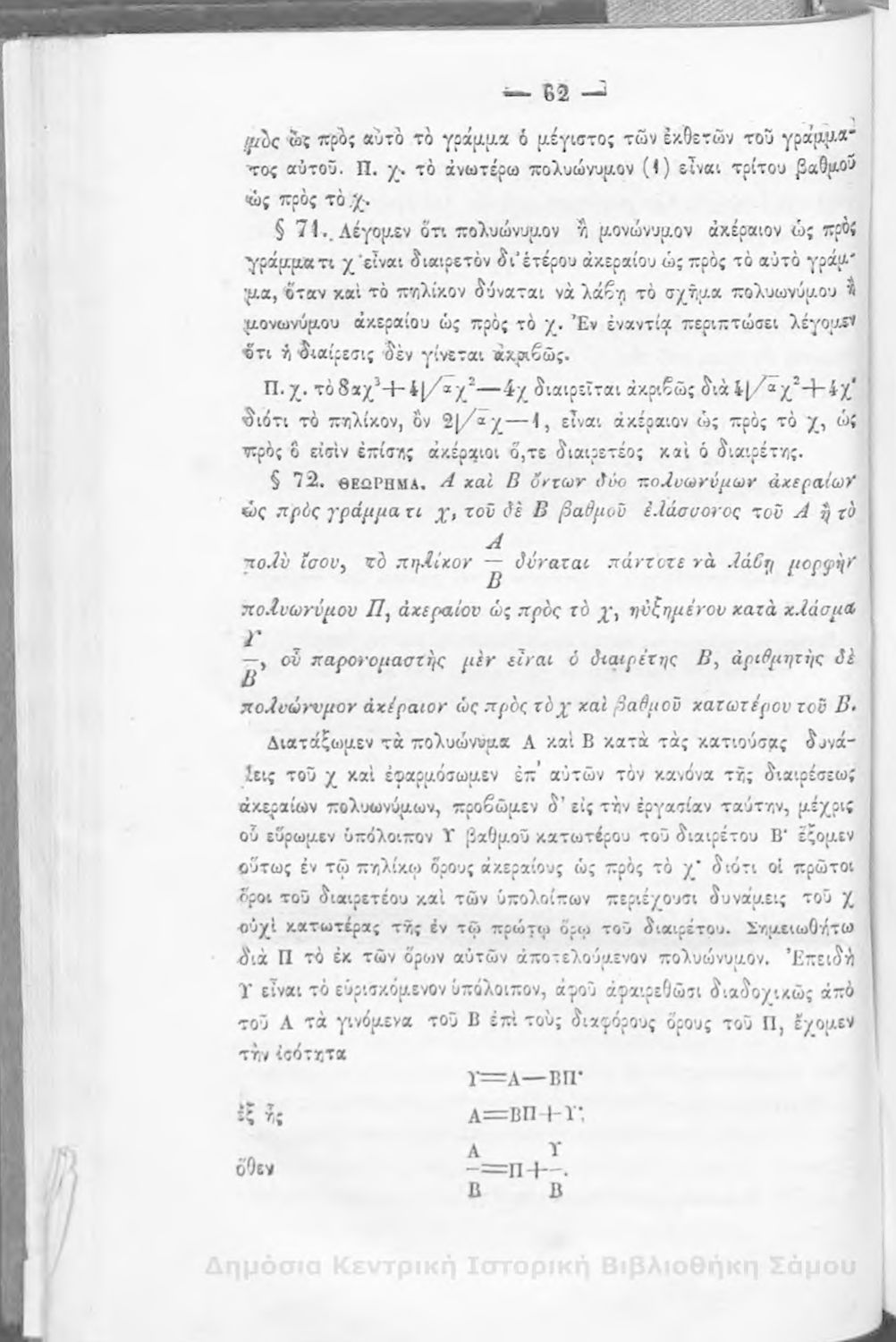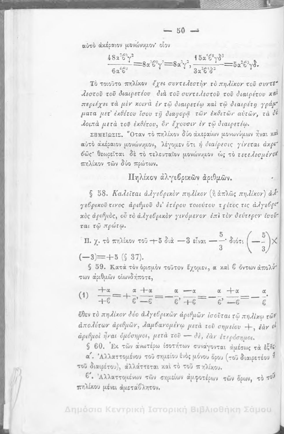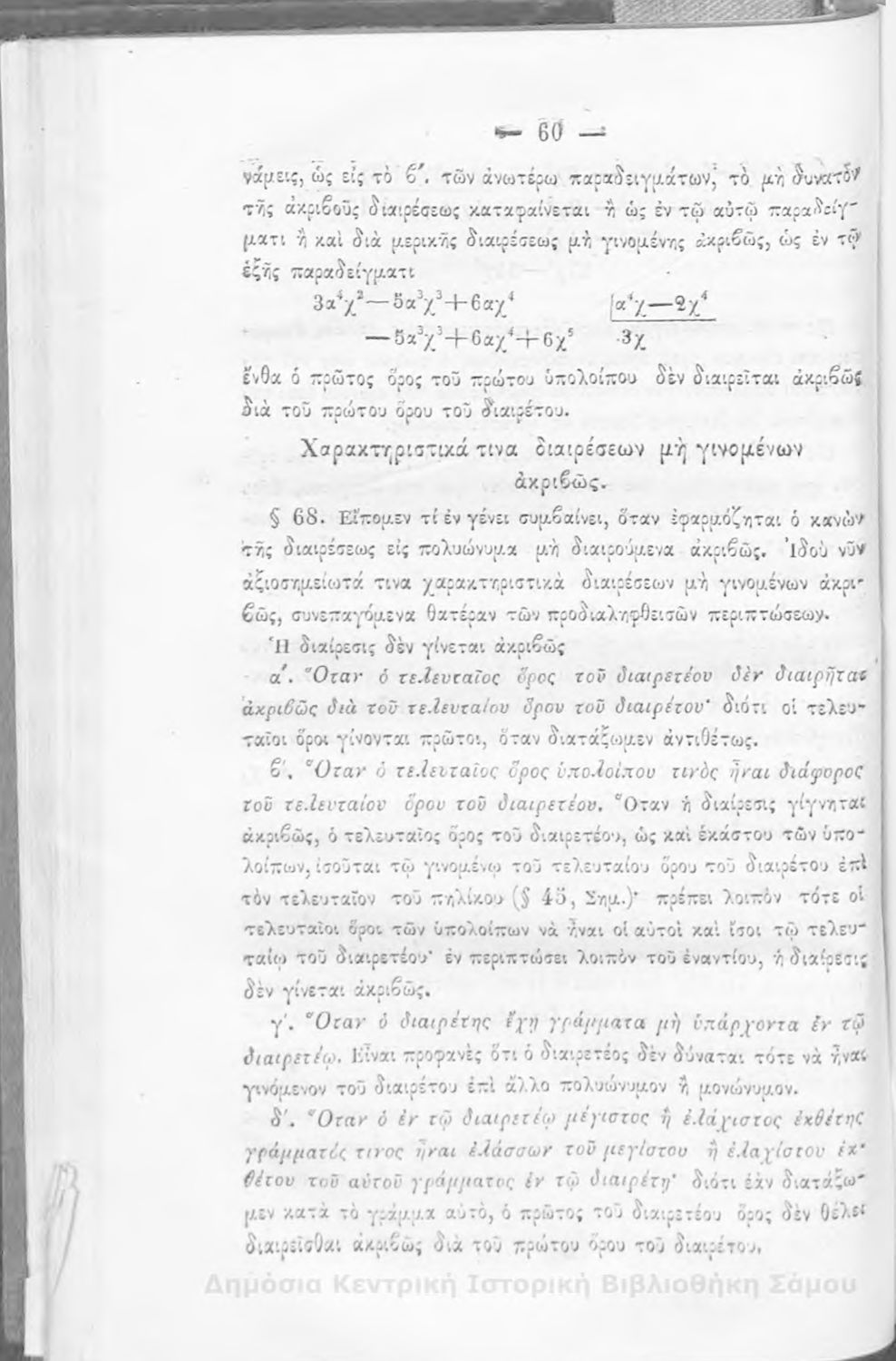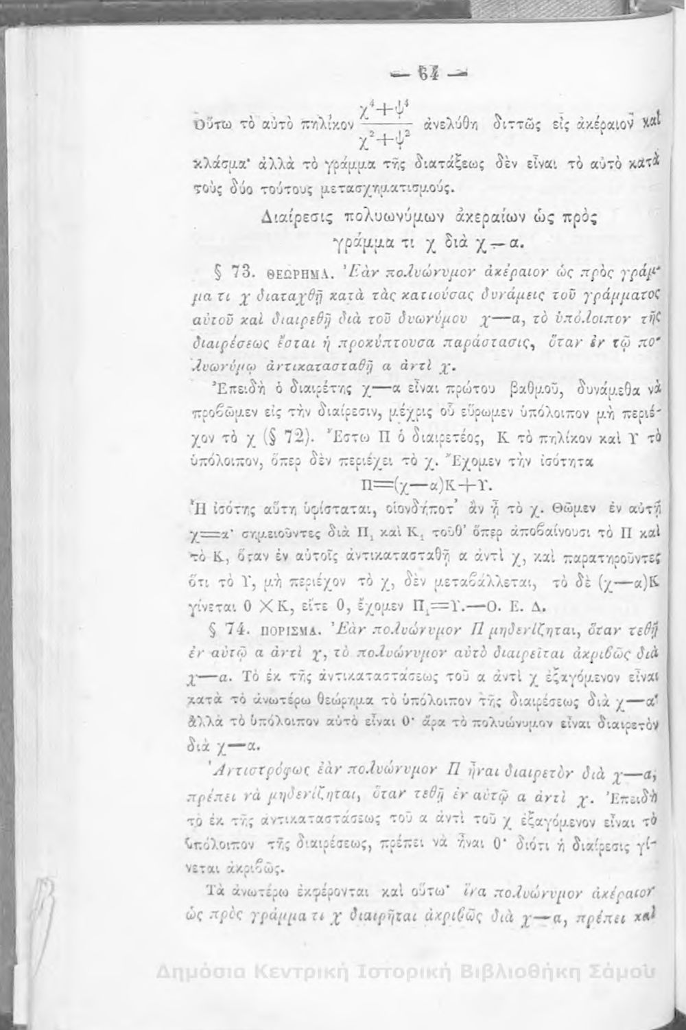 Βαθμίδα εκπαίδευσης: Δευτεροβάθμια Μάθημα: Άλγεβρα Γλώσσα: Καθαρεύουσα |