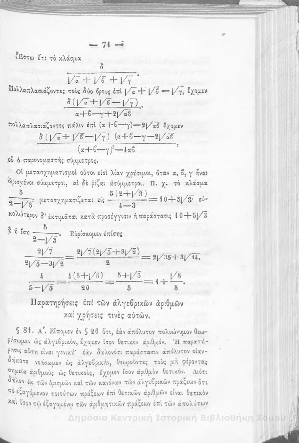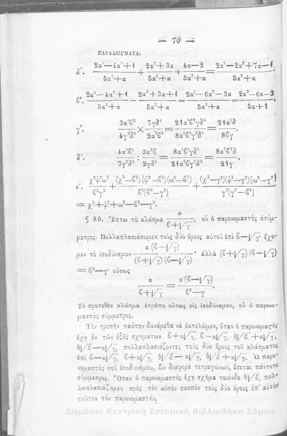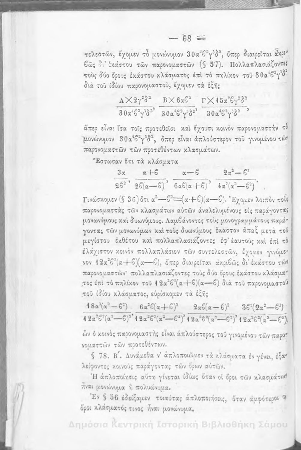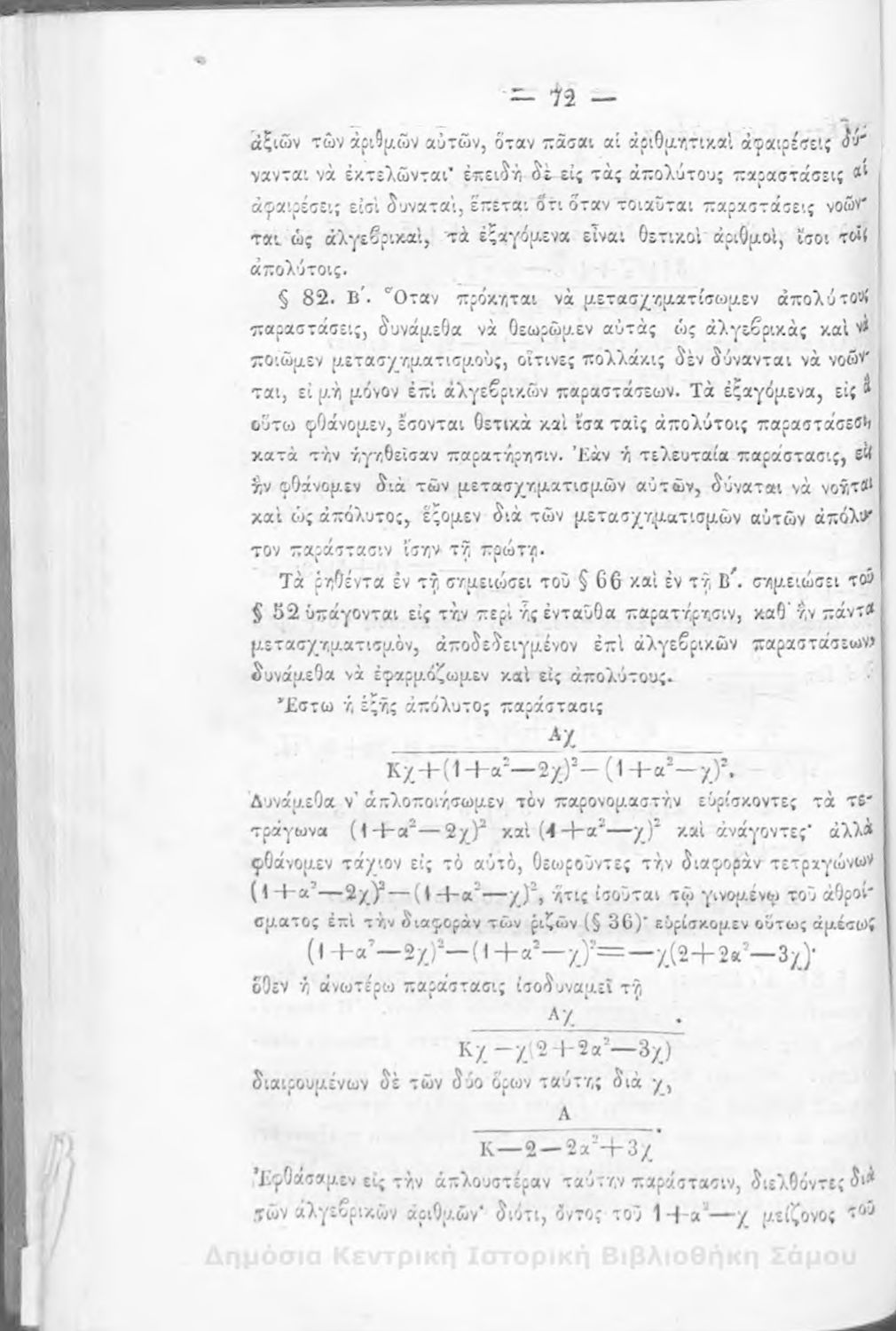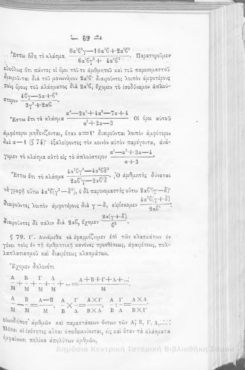 Βαθμίδα εκπαίδευσης: Δευτεροβάθμια Μάθημα: Άλγεβρα Γλώσσα: Καθαρεύουσα |
