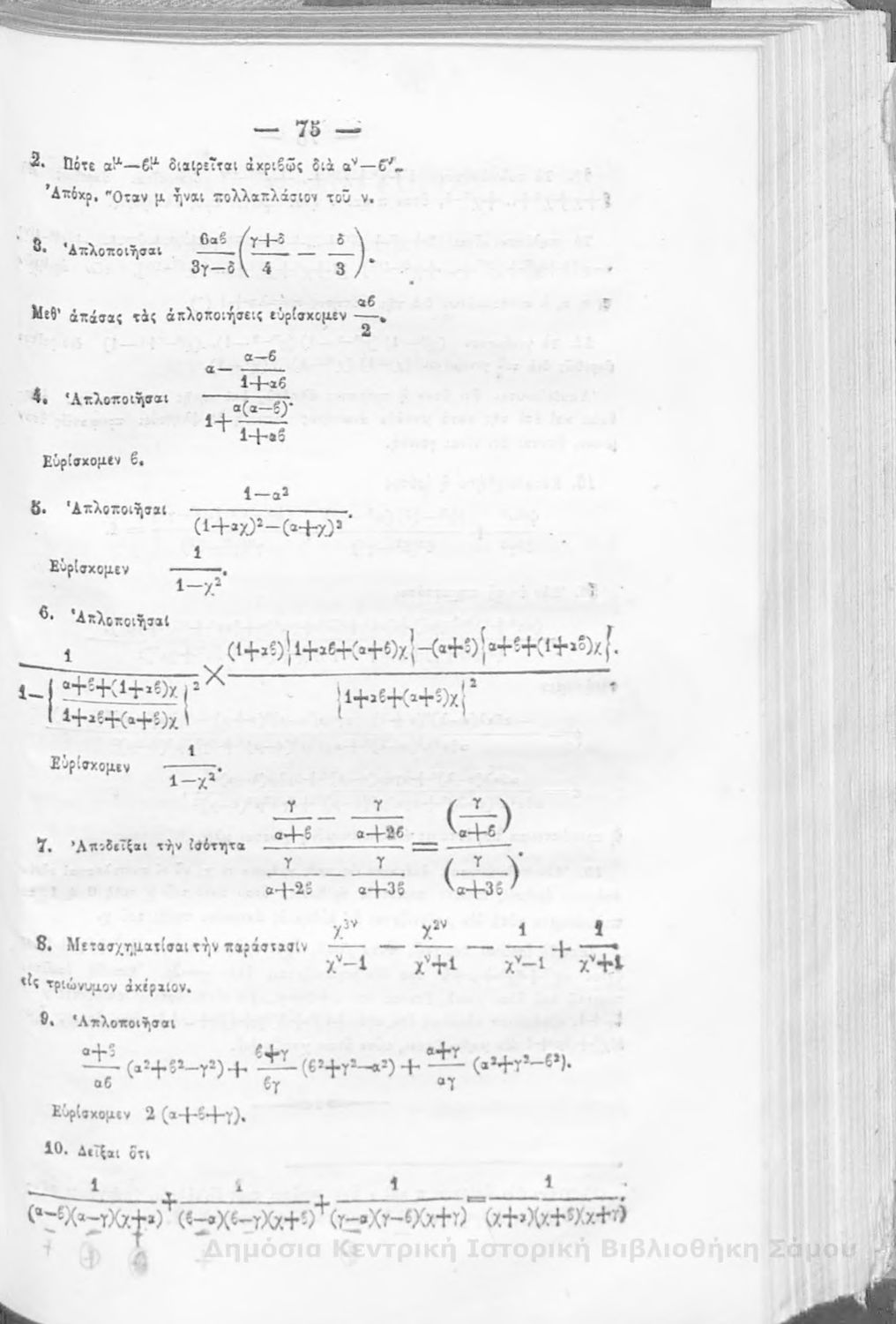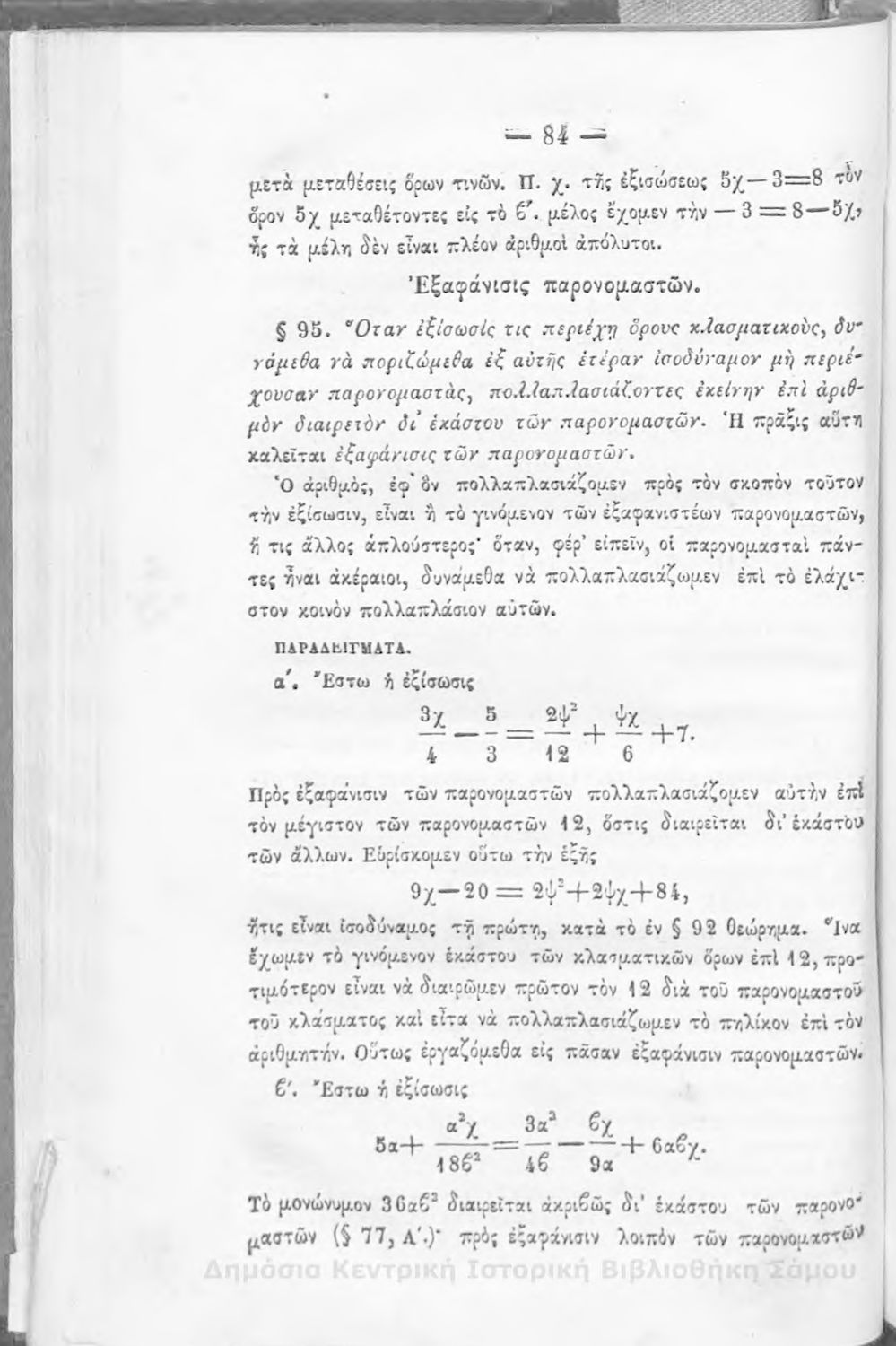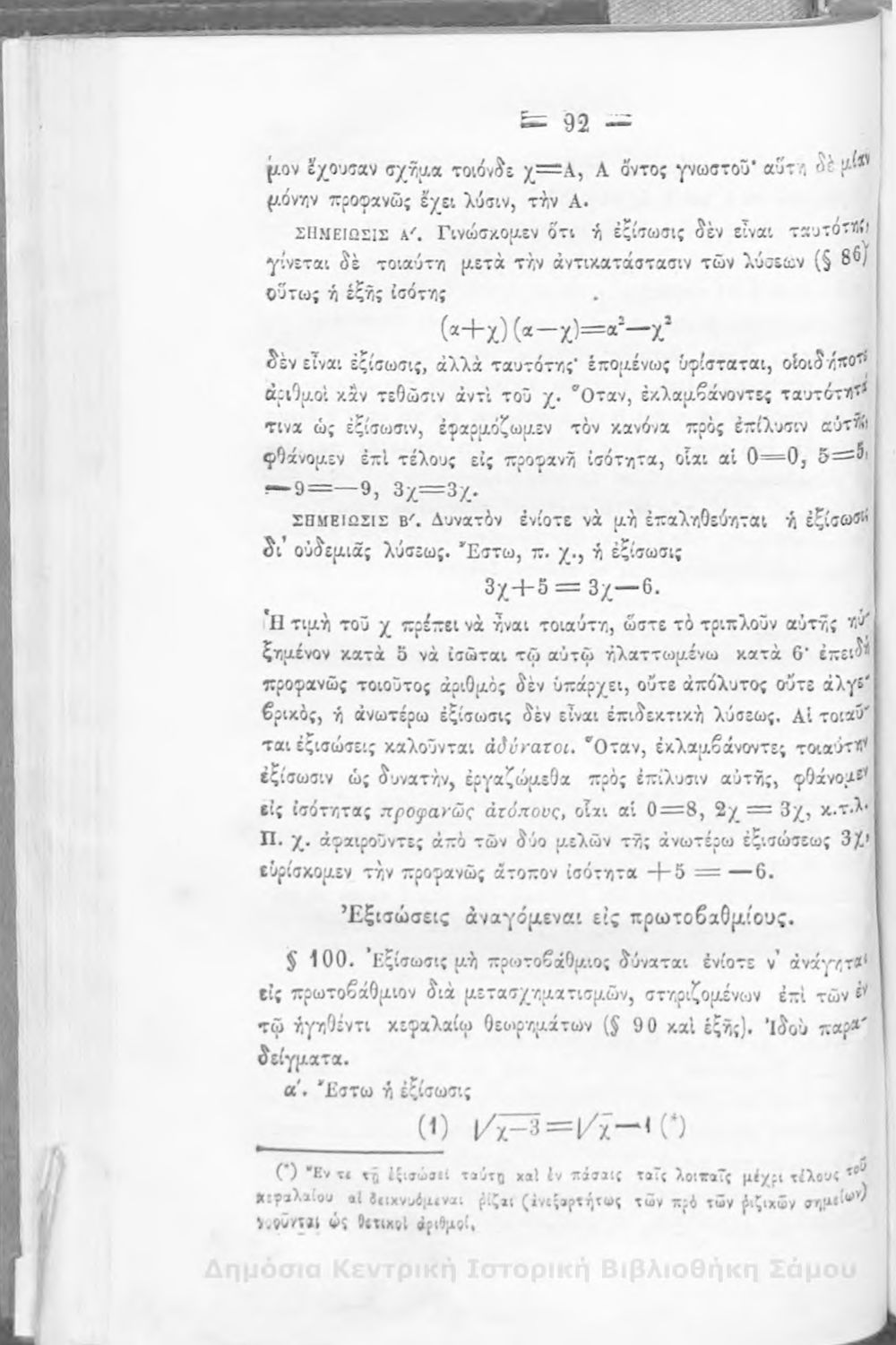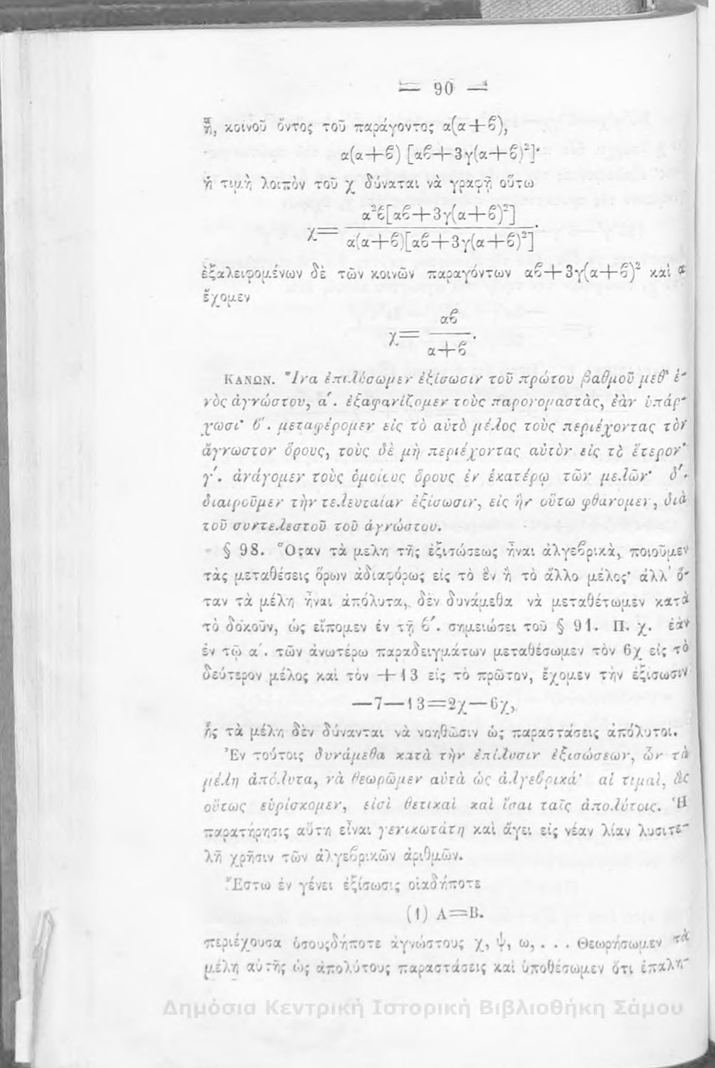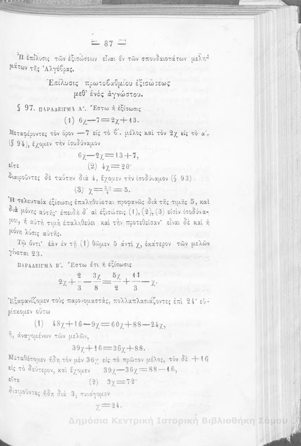 Τίτλος: Στοιχειώδες άλγεβρα : πρός χρῆσιν γυμνασίων