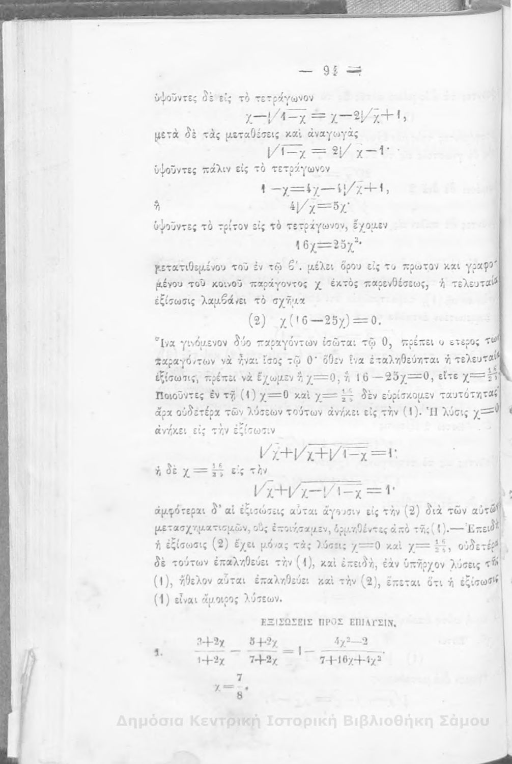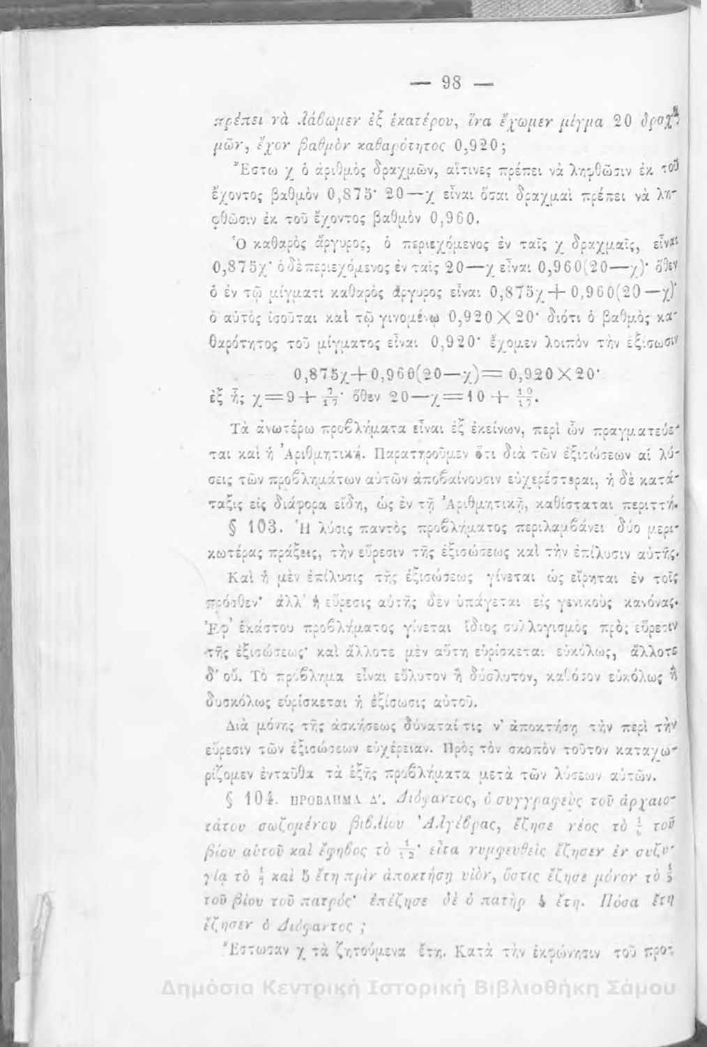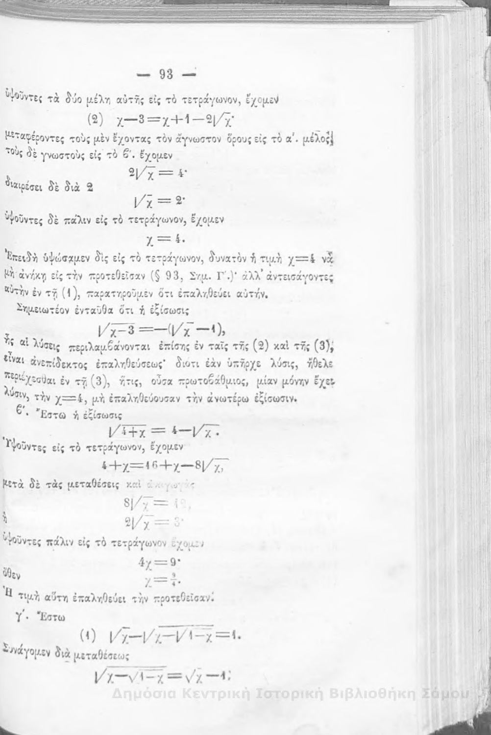 Τίτλος: Στοιχειώδες άλγεβρα : πρός χρῆσιν γυμνασίων