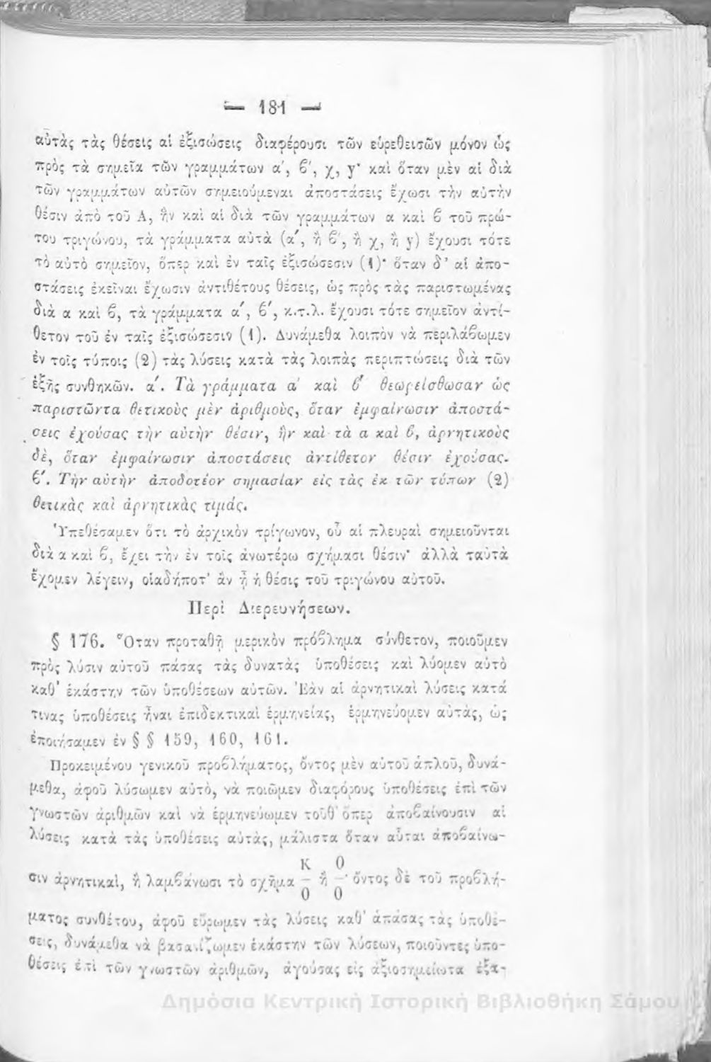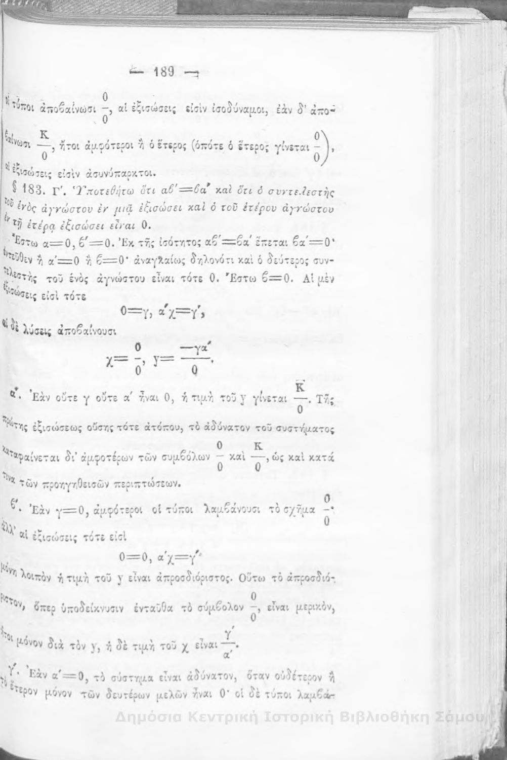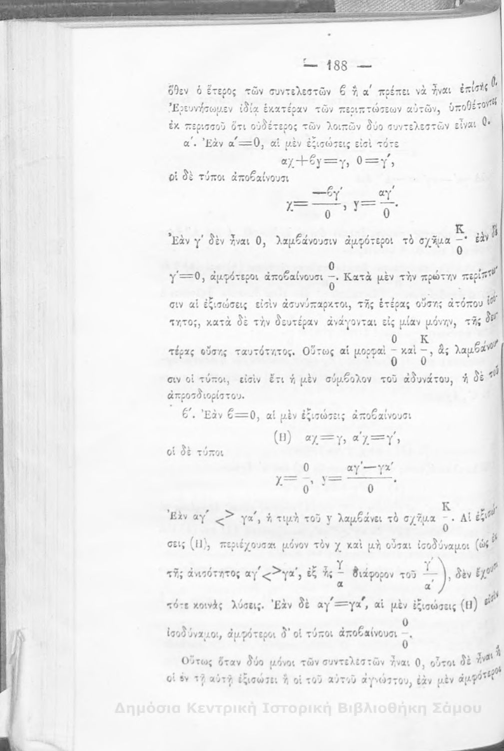 Βαθμίδα εκπαίδευσης: Δευτεροβάθμια Μάθημα: Άλγεβρα Γλώσσα: Καθαρεύουσα |