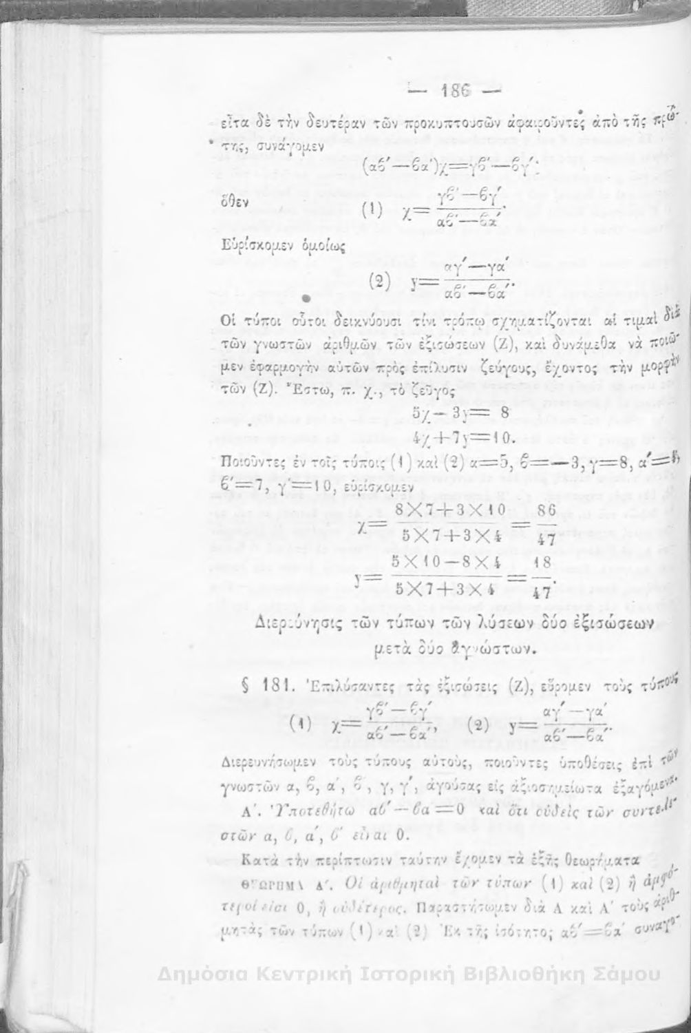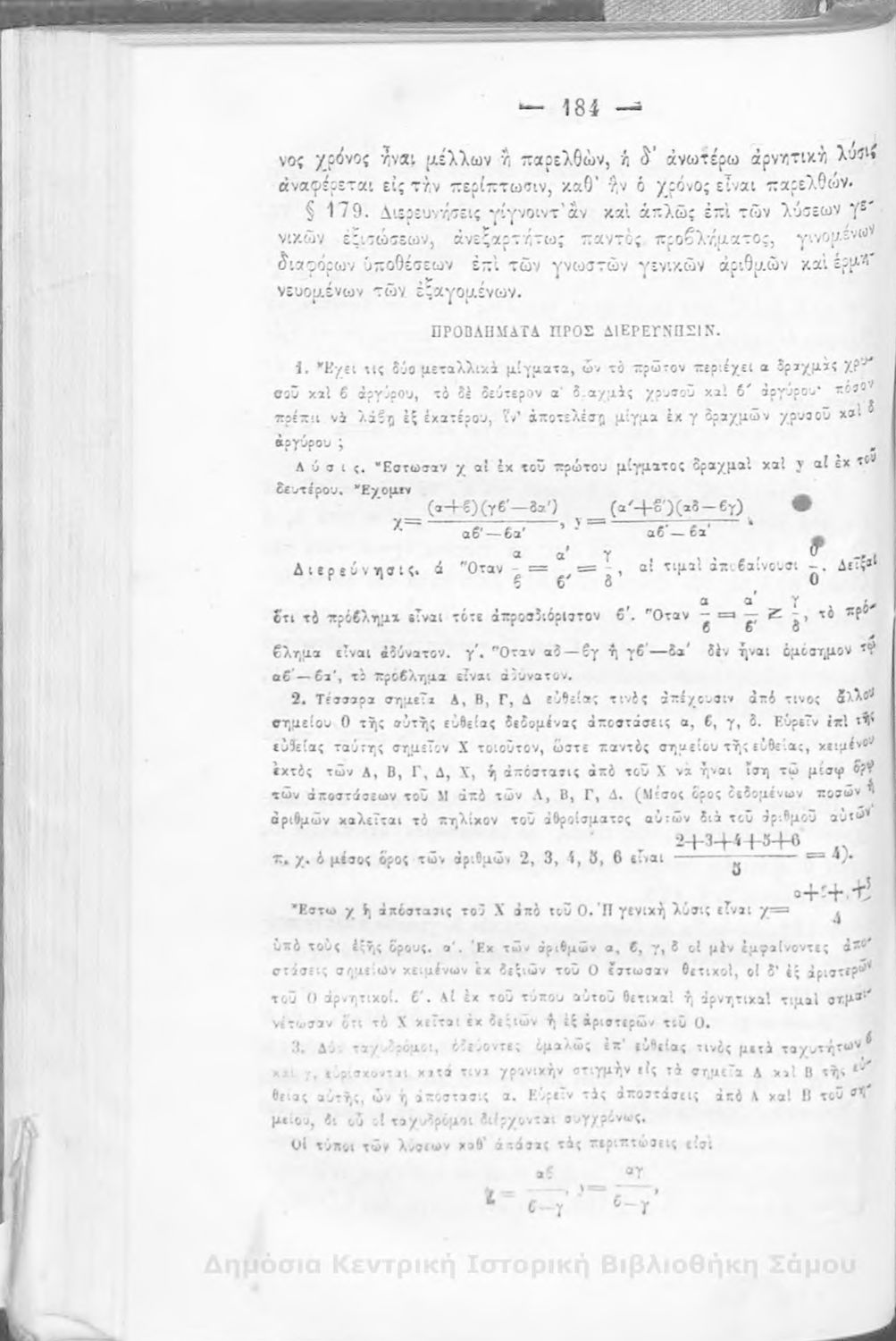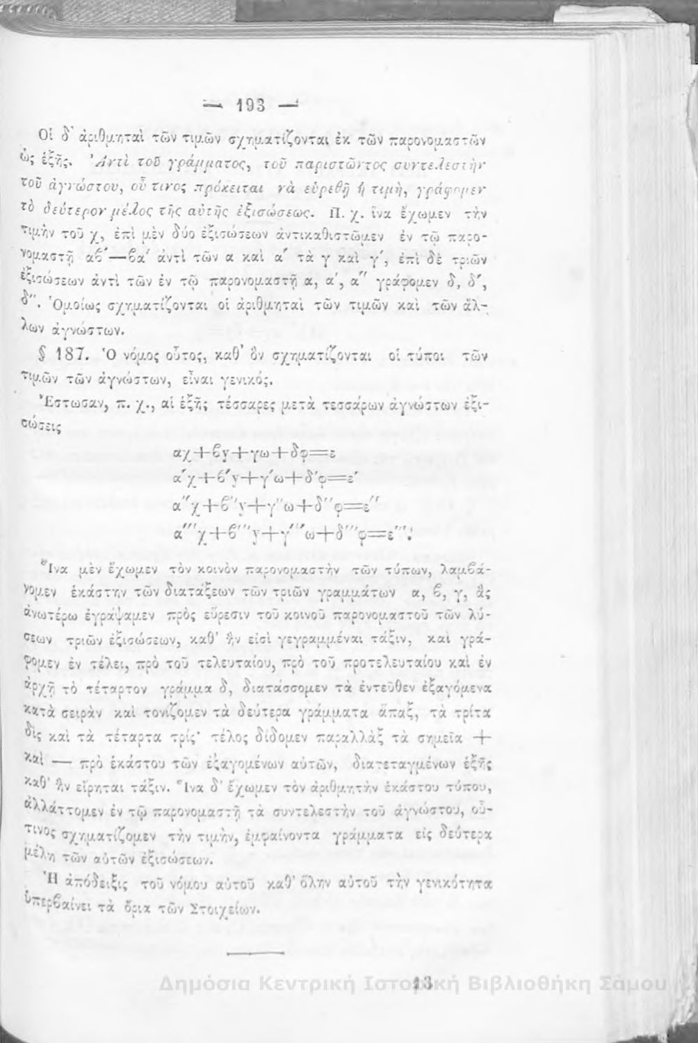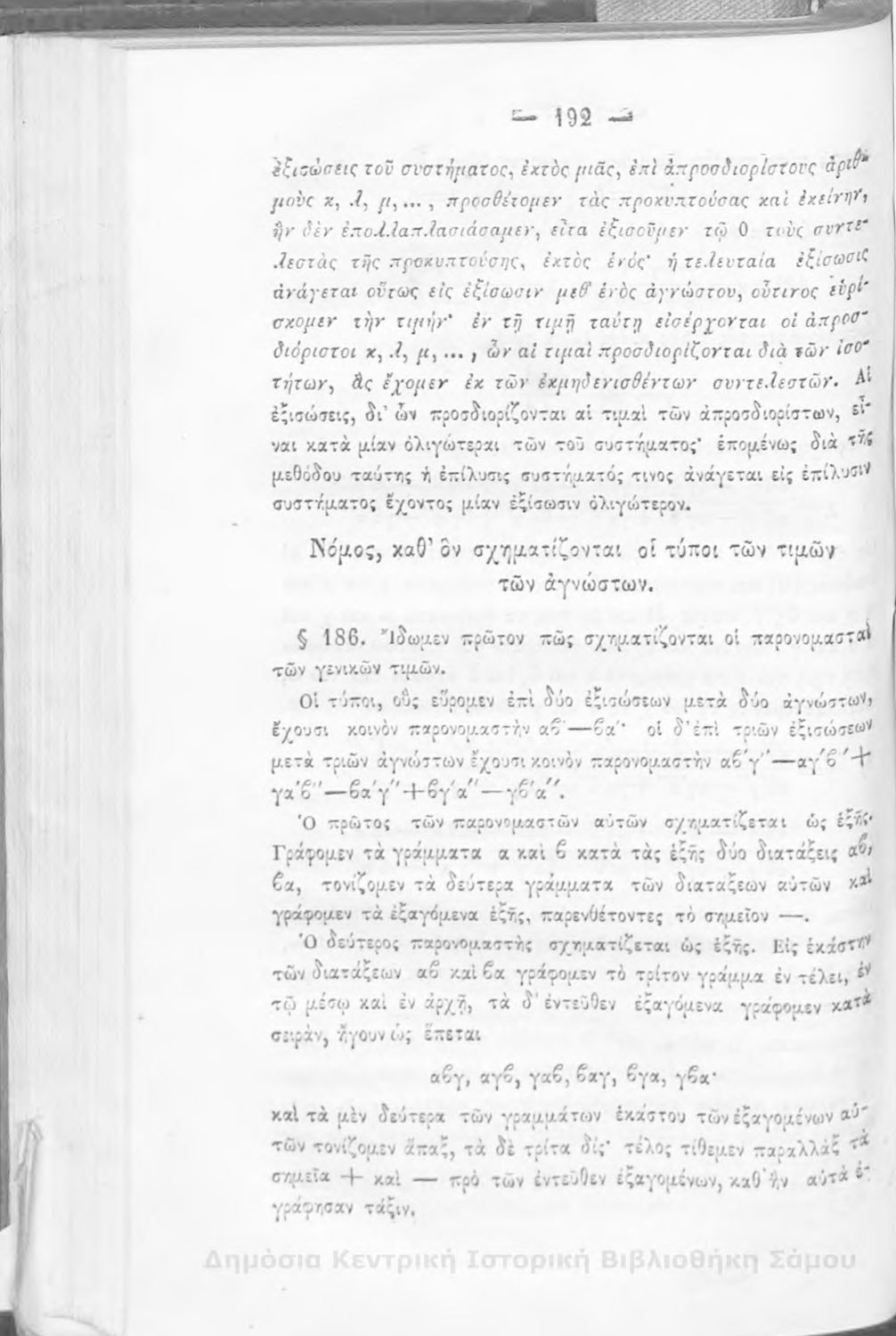 Βαθμίδα εκπαίδευσης: Δευτεροβάθμια Μάθημα: Άλγεβρα Γλώσσα: Καθαρεύουσα |