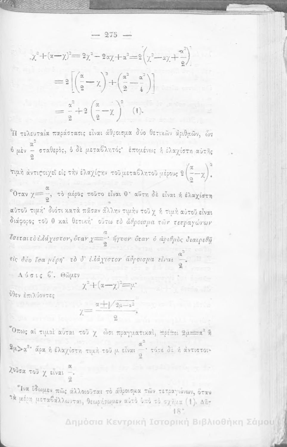 Τίτλος: Στοιχειώδες άλγεβρα : πρός χρῆσιν γυμνασίων
