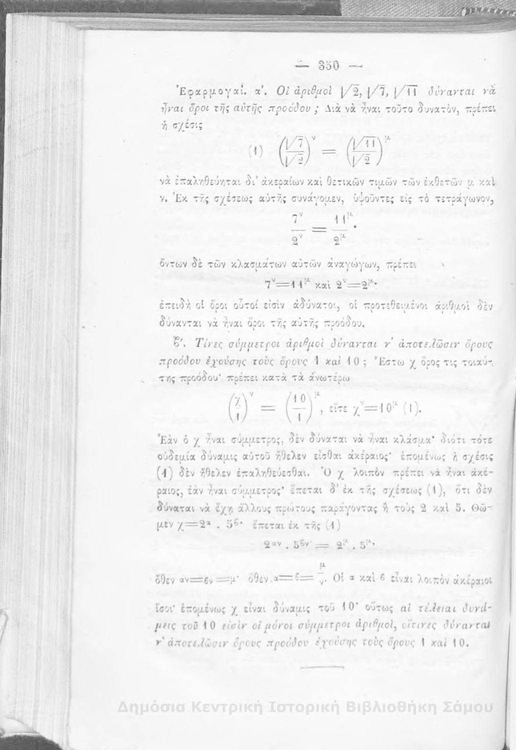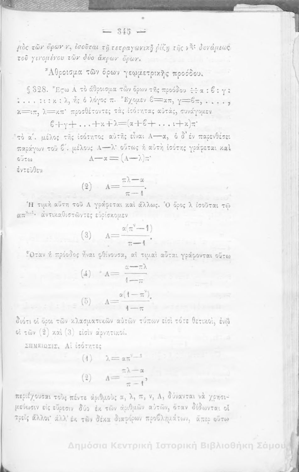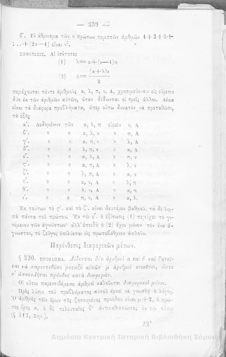 Βαθμίδα εκπαίδευσης: Δευτεροβάθμια Μάθημα: Άλγεβρα Γλώσσα: Καθαρεύουσα |