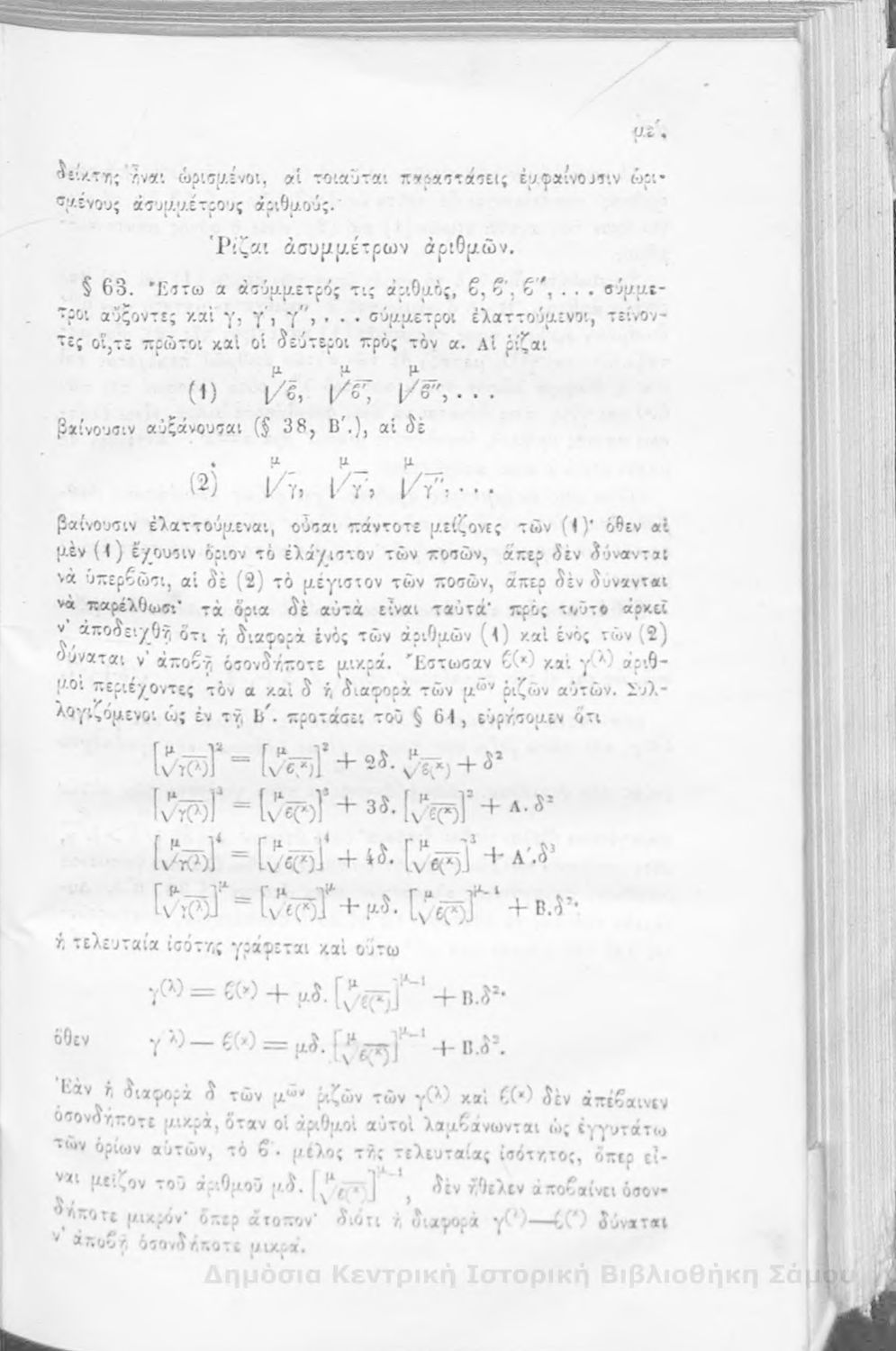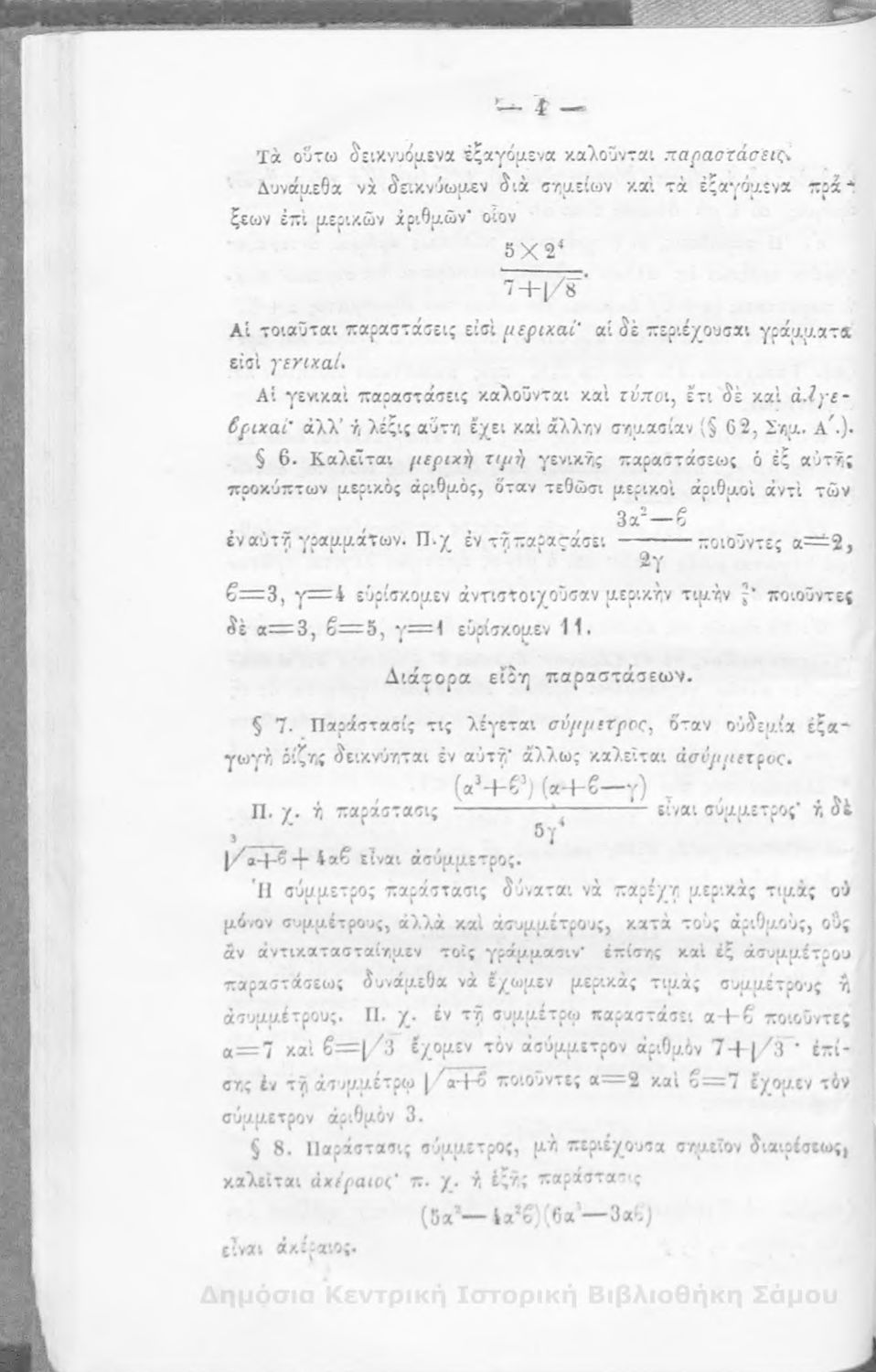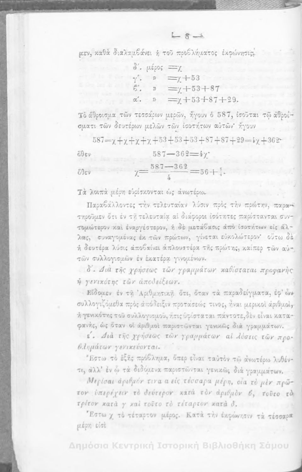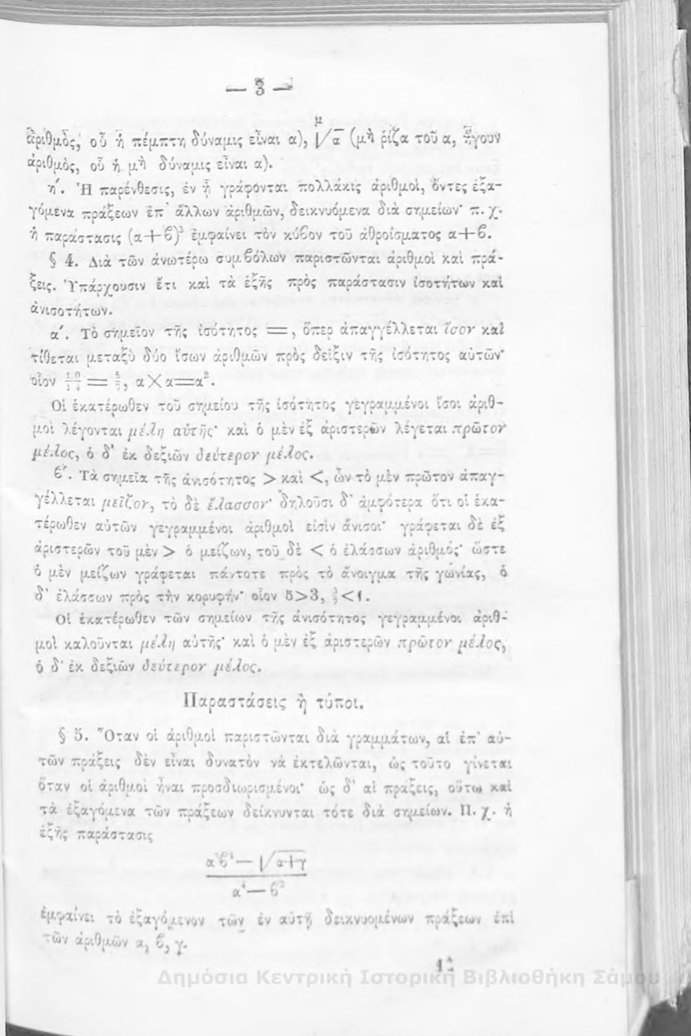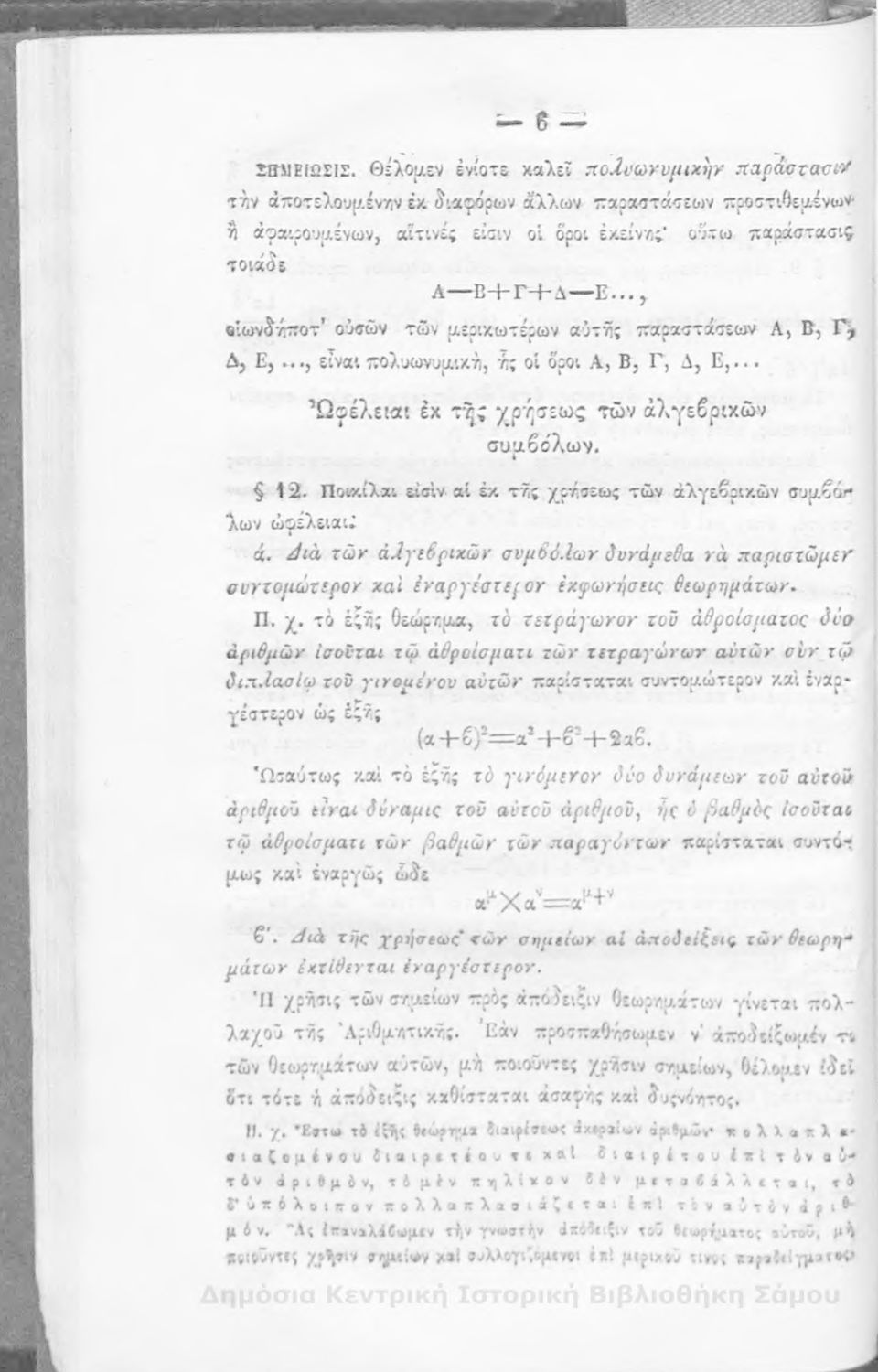 Τίτλος: Στοιχειώδες άλγεβρα : πρός χρῆσιν γυμνασίων