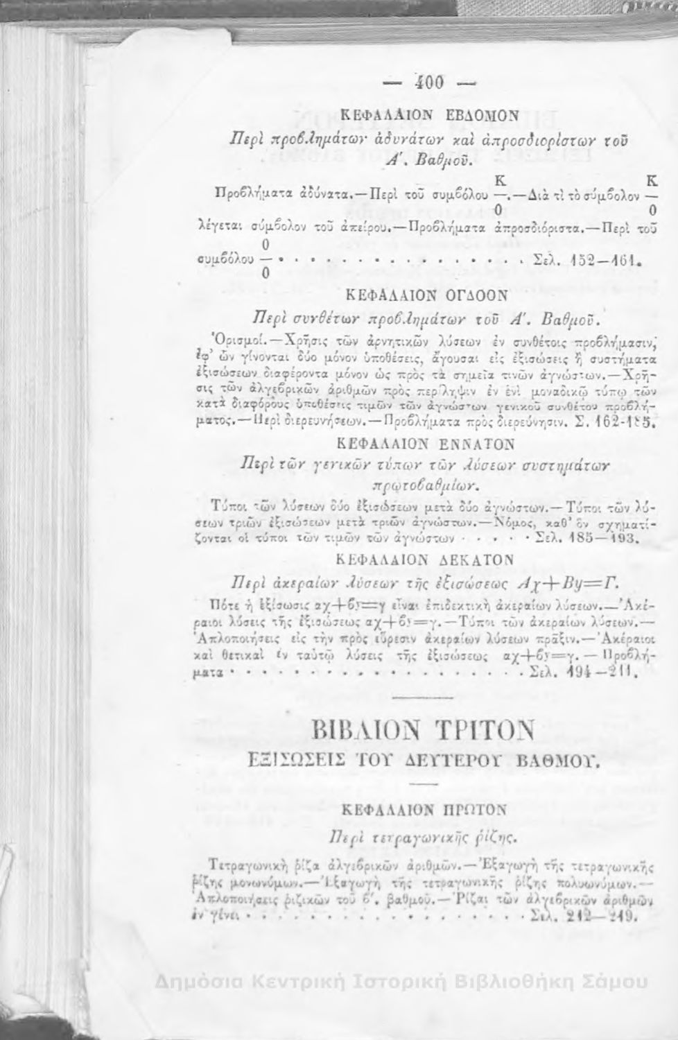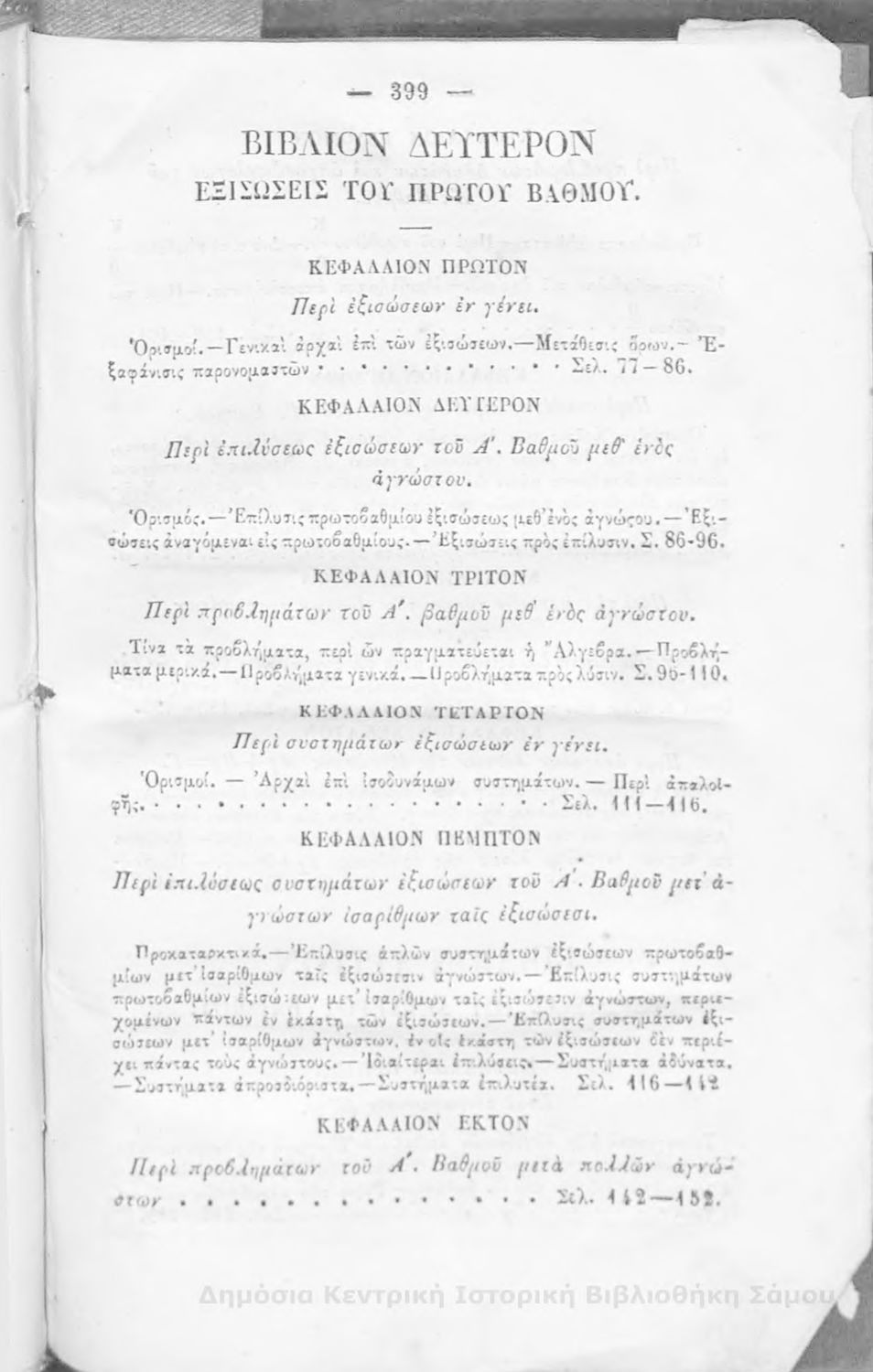 Τίτλος: Στοιχειώδες άλγεβρα : πρός χρῆσιν γυμνασίων