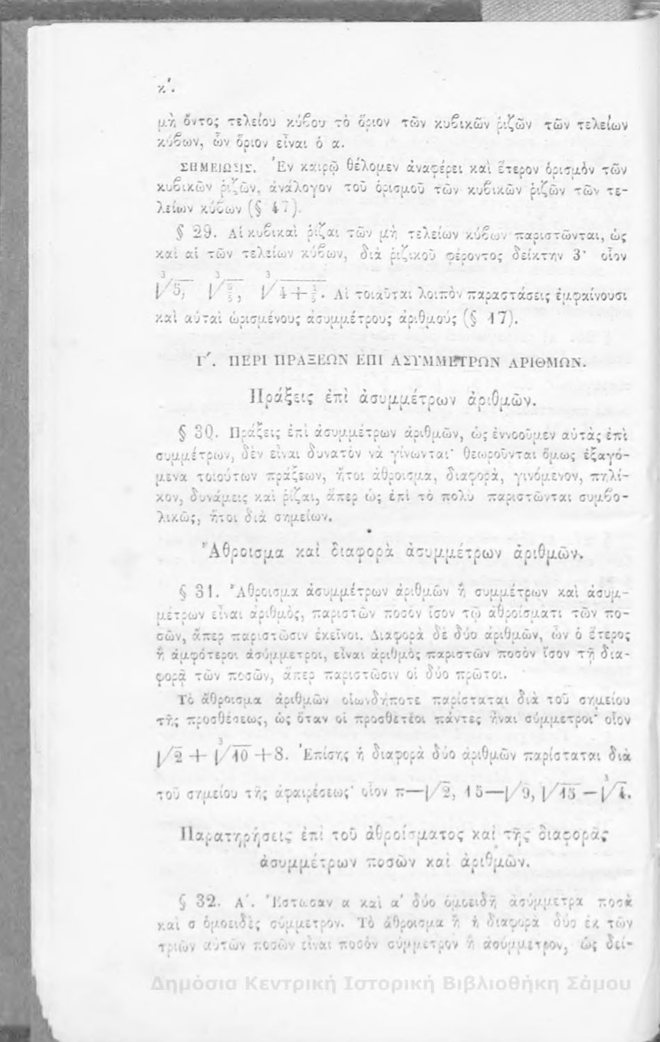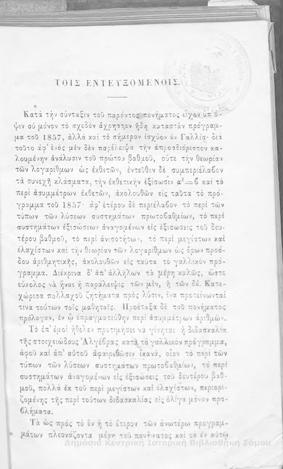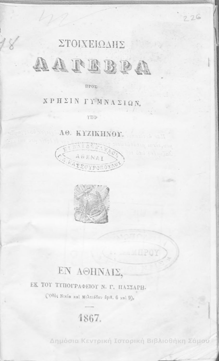Τίτλος: Στοιχειώδες άλγεβρα : πρός χρῆσιν γυμνασίων