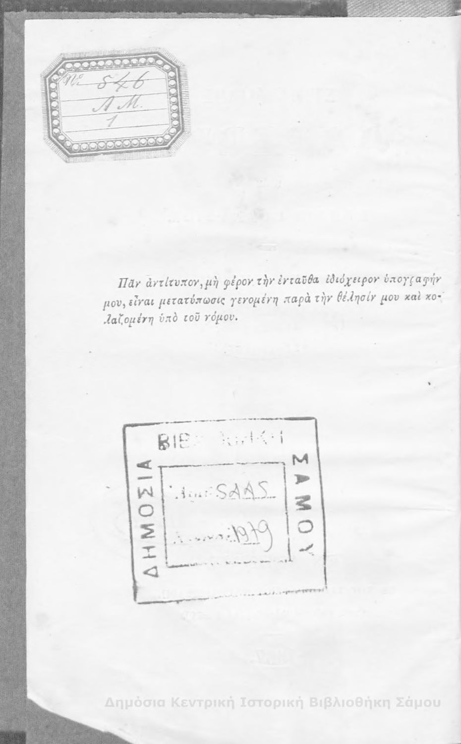Εντοπισμός πρωτοτύπου: Δημόσια Βιβλιοθήκη Σάμου