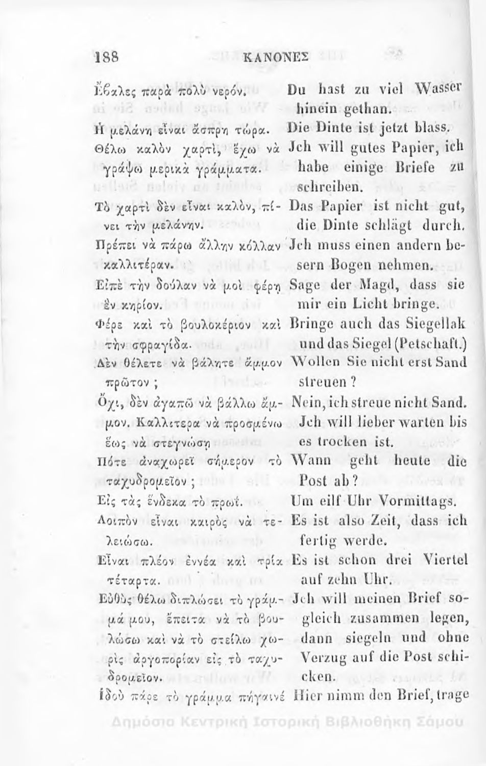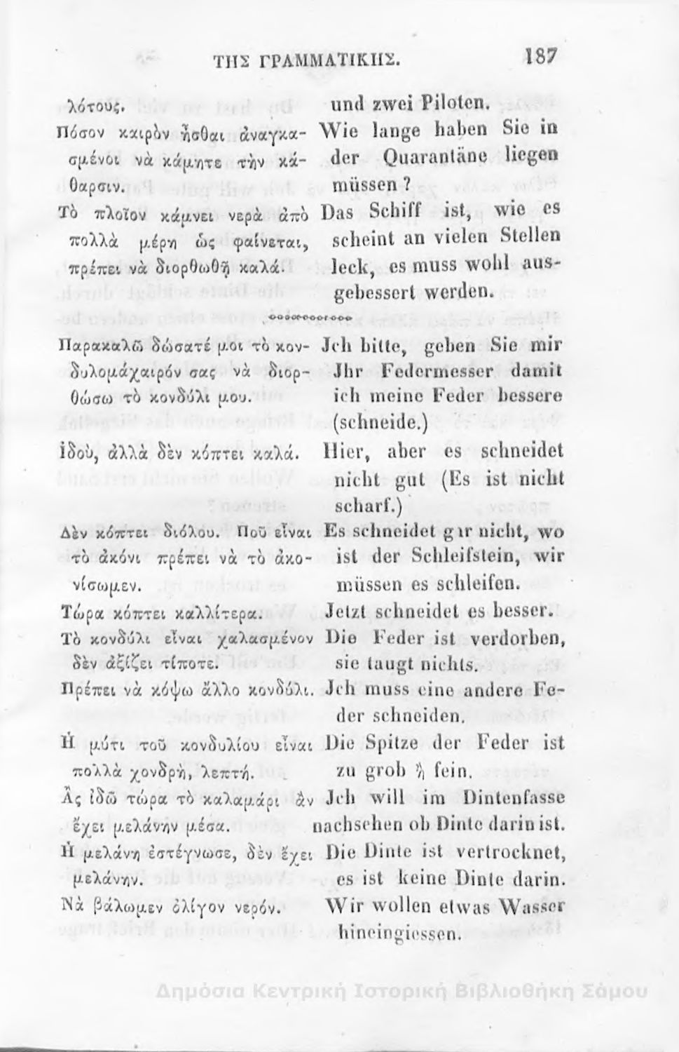 Πρόκειται για εγχειρίδιο που στόχο είχε την εκμάθηση των γραμματικών και συντακτικών φαινομένων της Γερμανικής γλώσσας με στόχο την ταχεία εκμάθησή της από Ελληνικό πληθυσμό. Φέρει λίγες προσωπικές σημειώσεις ...
