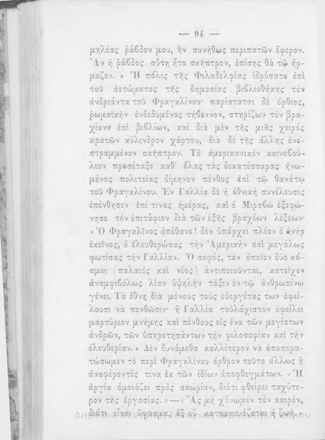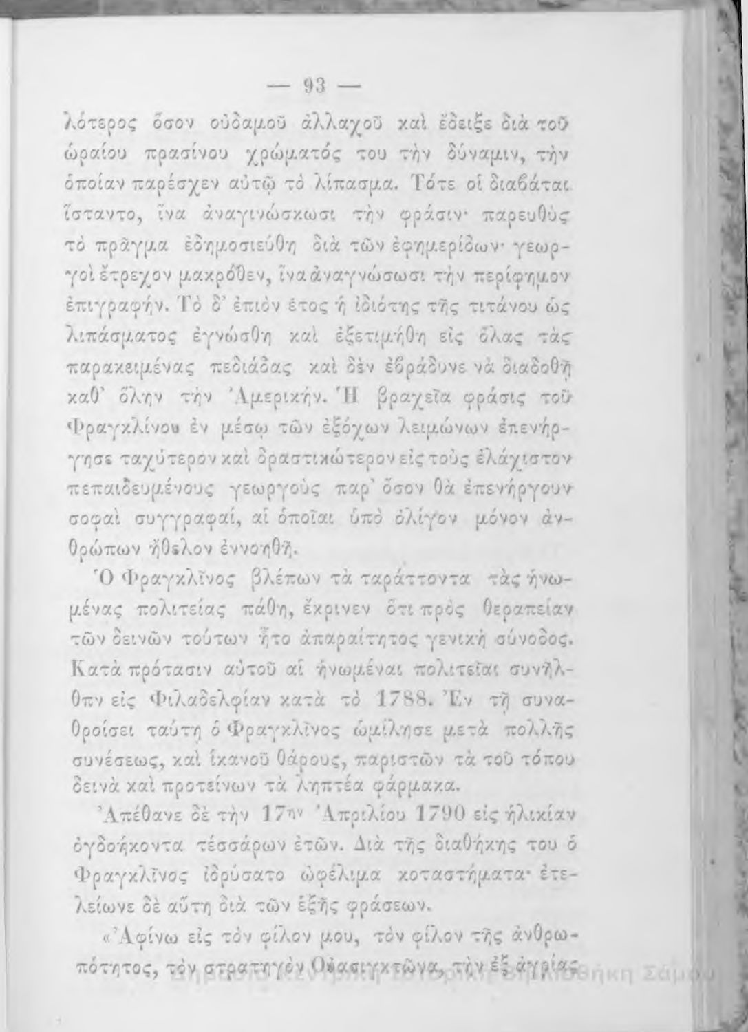 Κωδικός αναγνώρισης: 89-91941 Τίτλος: Νεα Ελληνική χρηστομάθεια ήτοι ανέκδοτα, μύθοι παραβολαί, περιγραφαί εκ της φύσεως, χαρακτήρες, ιστορικά τεμάχια και μεγαλείτερα [sic] διηγήματα : προς χρήσιν των δημοτικών σχολείων Συγγραφέας: Michael Deffner, Χαρίσης Πούλιος Μέγεθος και υπόστρωμα: Σχολικό εγχειρίδιο. |