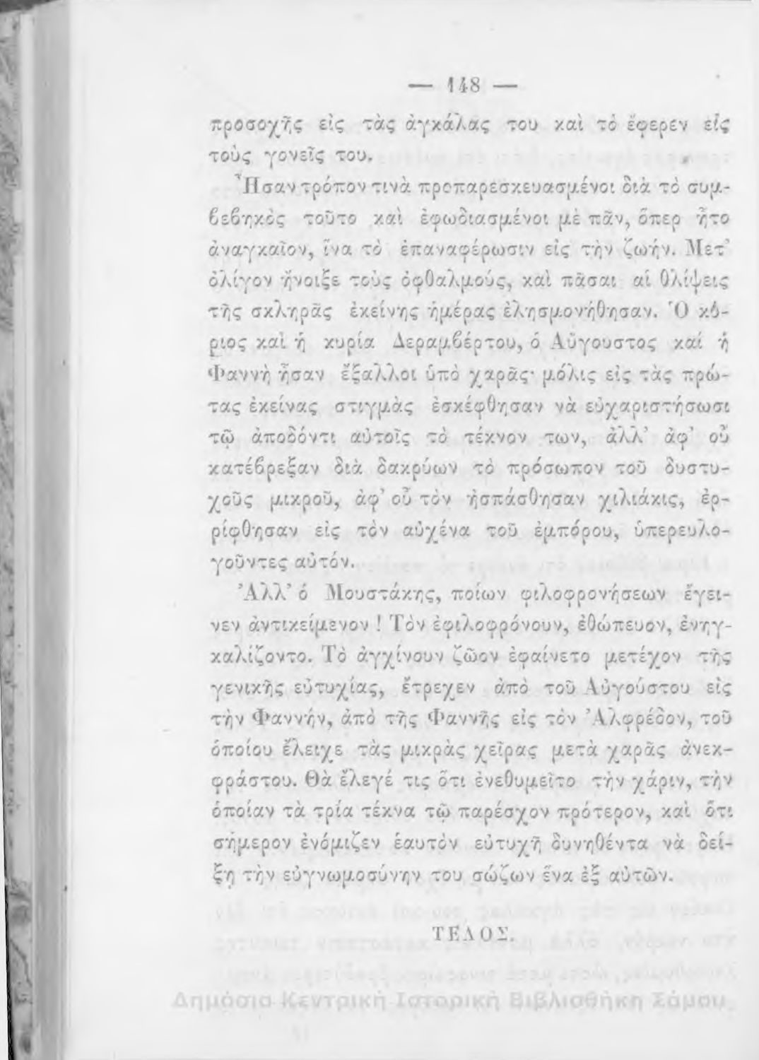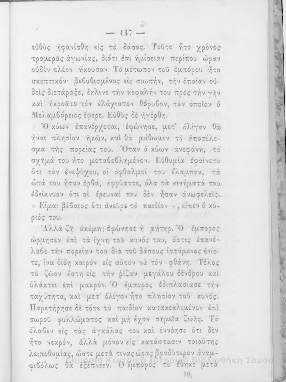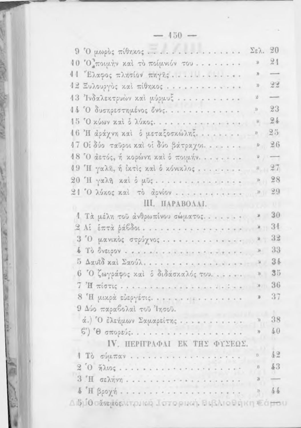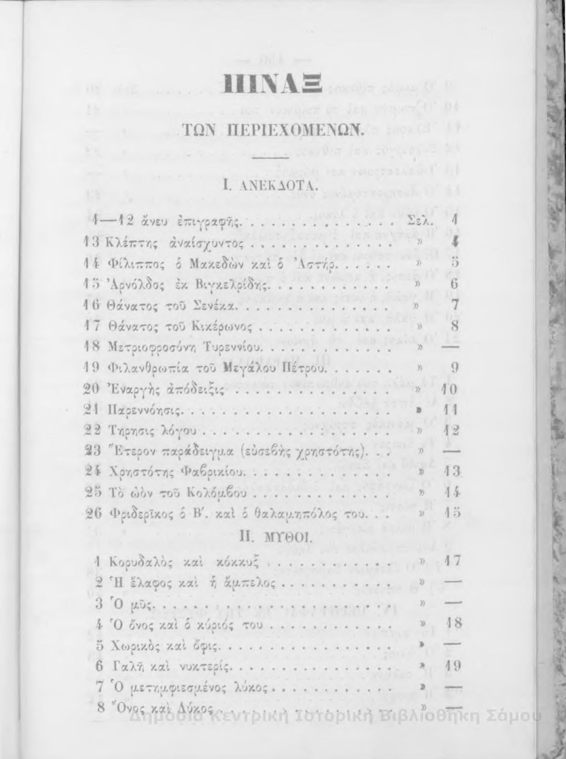 Κωδικός αναγνώρισης: 89-91941 Τίτλος: Νεα Ελληνική χρηστομάθεια ήτοι ανέκδοτα, μύθοι παραβολαί, περιγραφαί εκ της φύσεως, χαρακτήρες, ιστορικά τεμάχια και μεγαλείτερα [sic] διηγήματα : προς χρήσιν των δημοτικών σχολείων Συγγραφέας: Michael Deffner, Χαρίσης Πούλιος Μέγεθος και υπόστρωμα: Σχολικό εγχειρίδιο. |