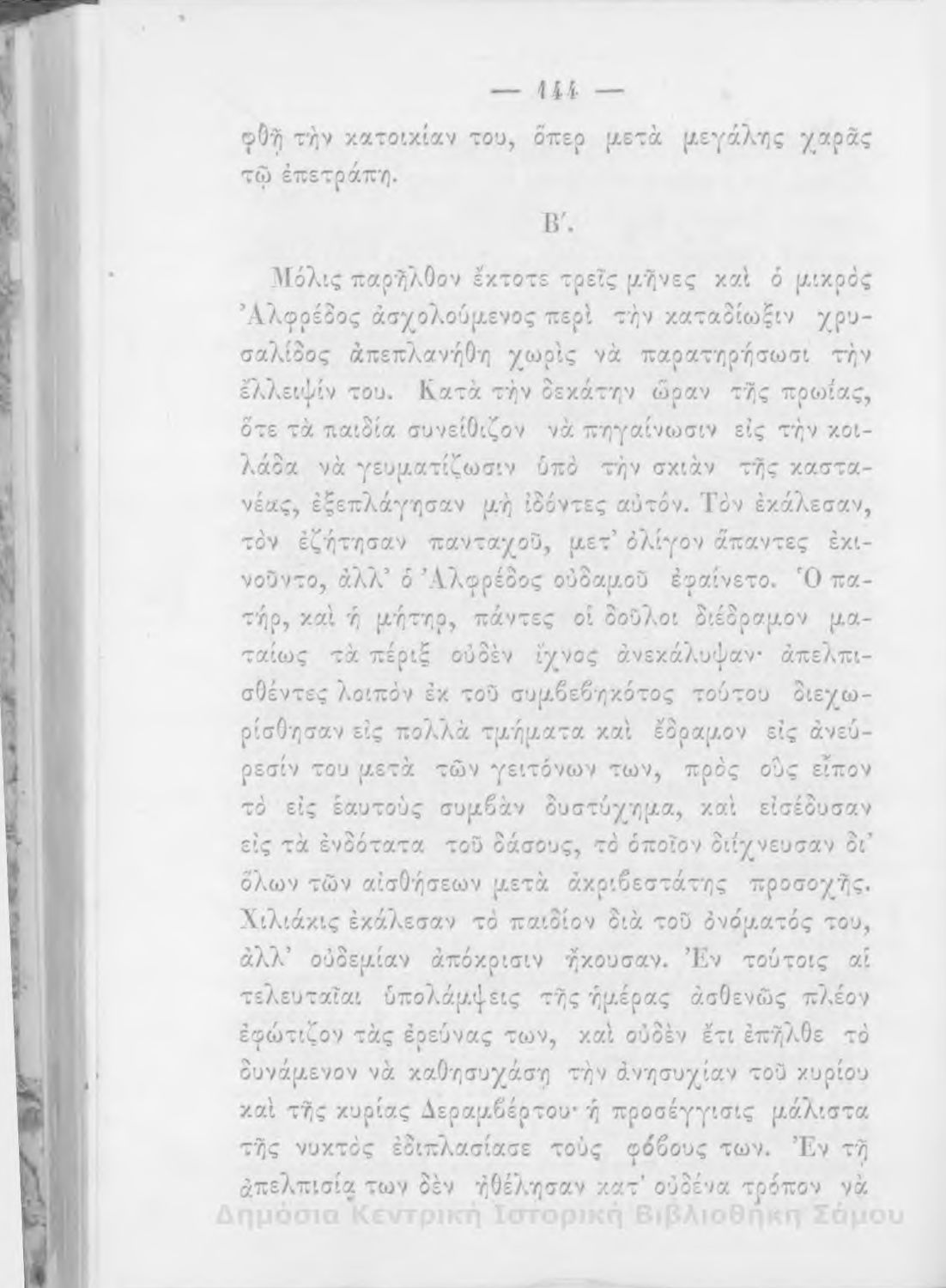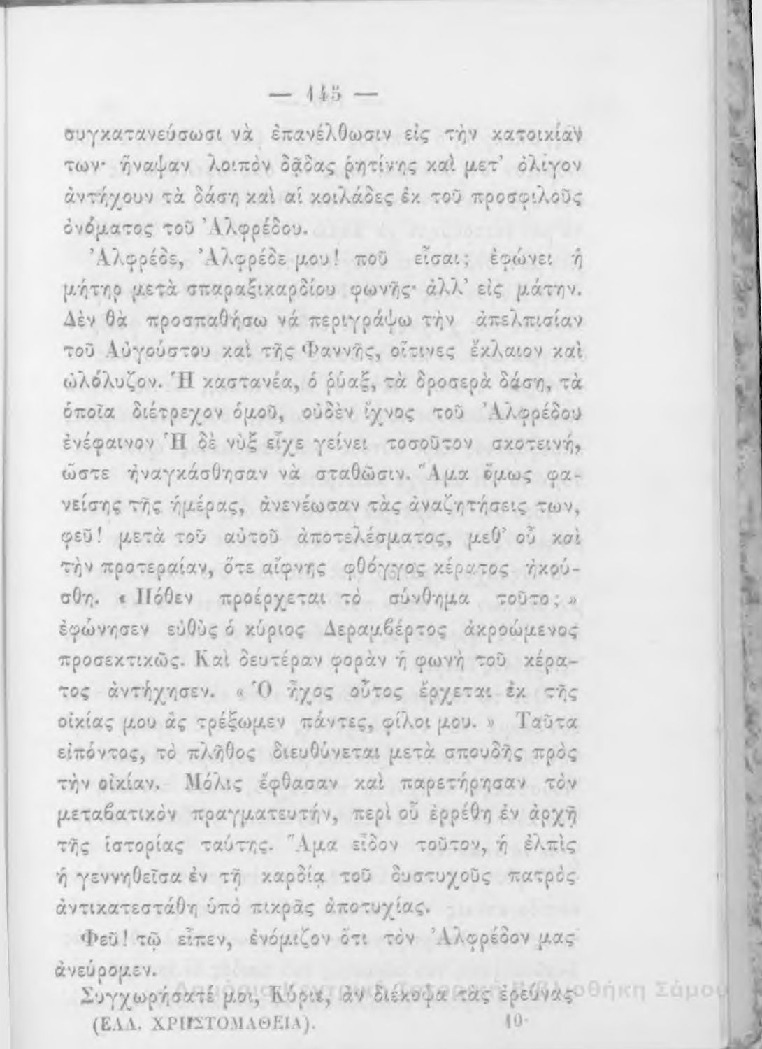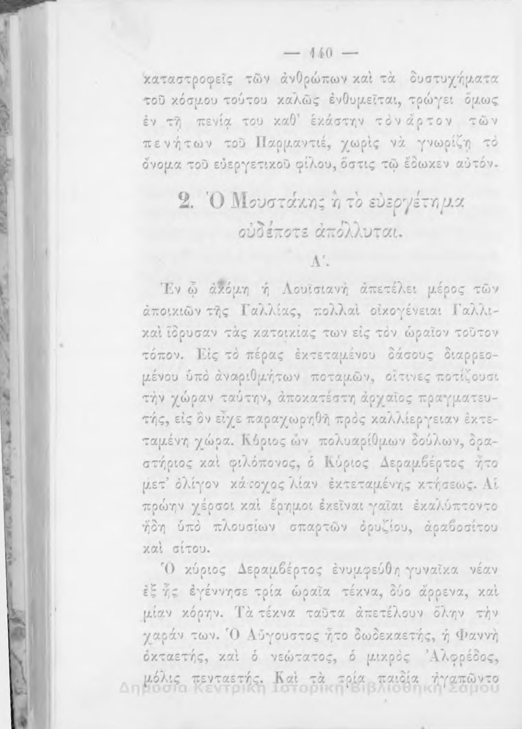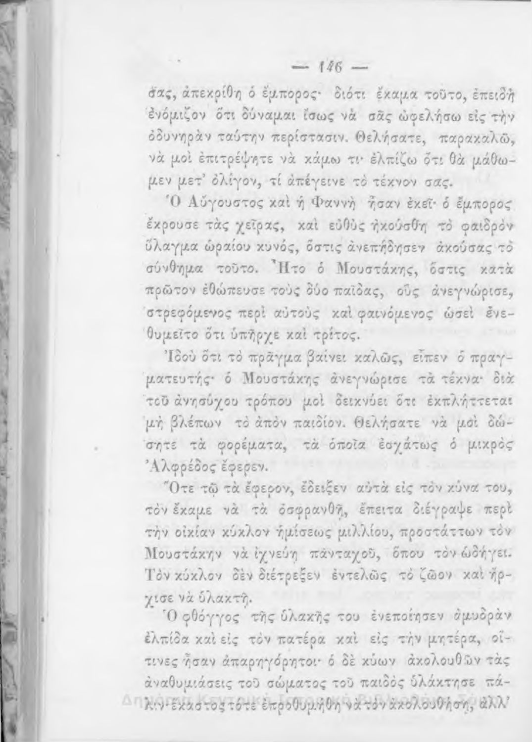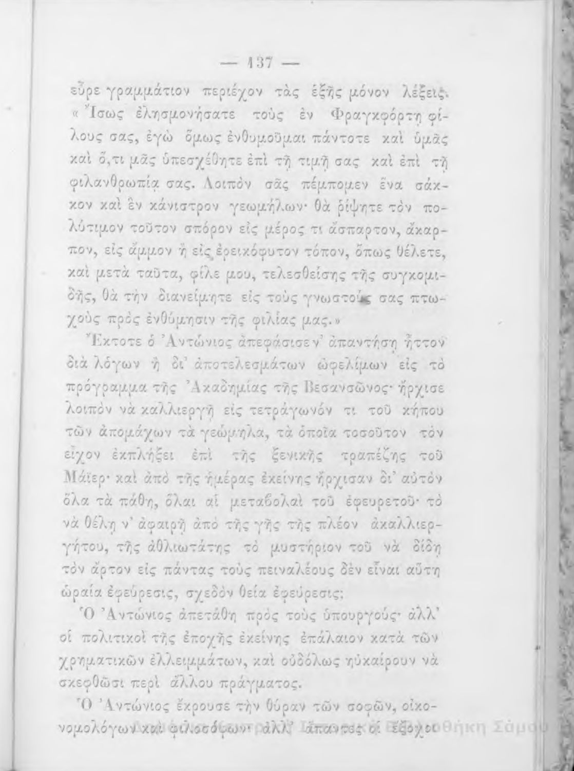 Κωδικός αναγνώρισης: 89-91941 Τίτλος: Νεα Ελληνική χρηστομάθεια ήτοι ανέκδοτα, μύθοι παραβολαί, περιγραφαί εκ της φύσεως, χαρακτήρες, ιστορικά τεμάχια και μεγαλείτερα [sic] διηγήματα : προς χρήσιν των δημοτικών σχολείων Συγγραφέας: Michael Deffner, Χαρίσης Πούλιος Μέγεθος και υπόστρωμα: Σχολικό εγχειρίδιο. |