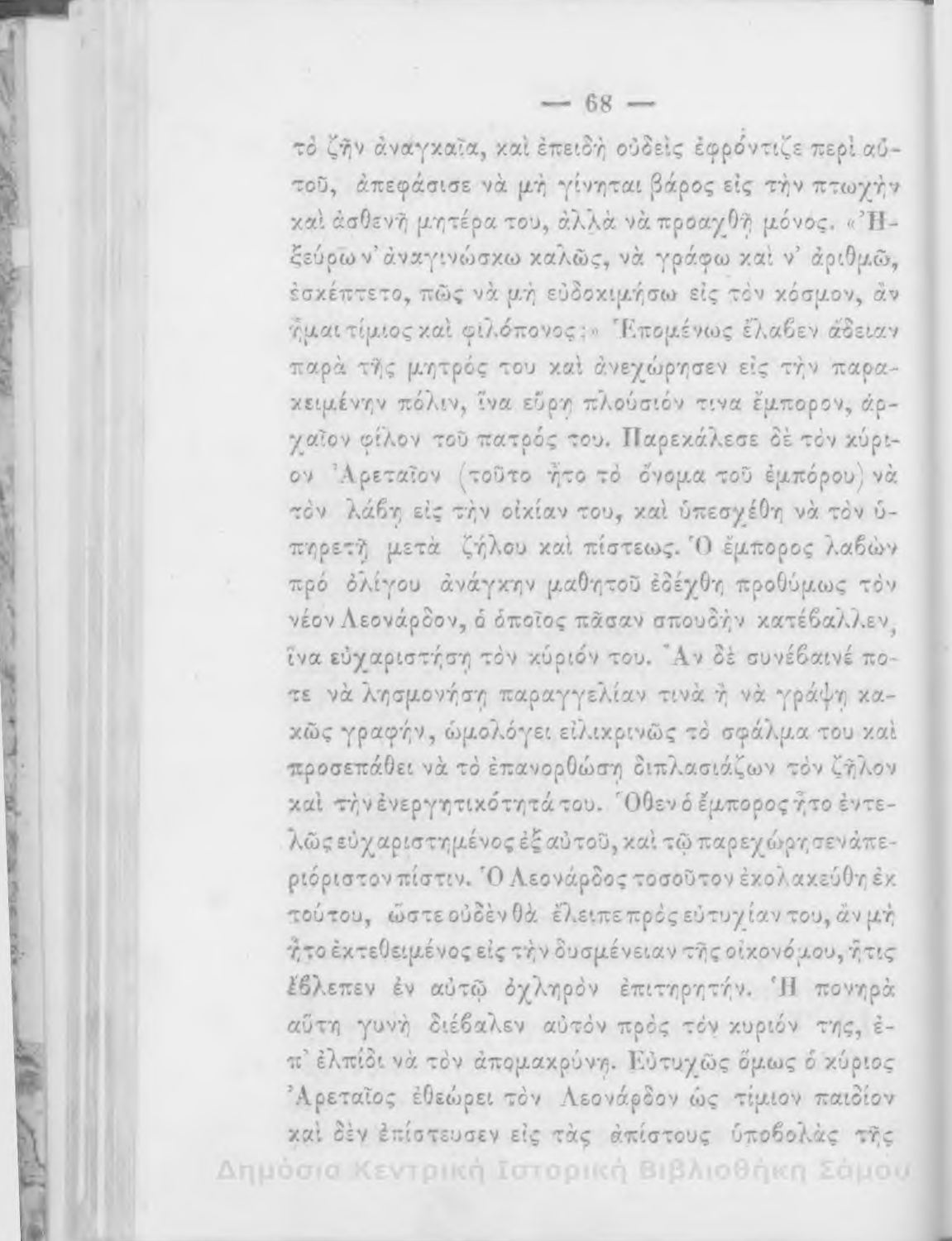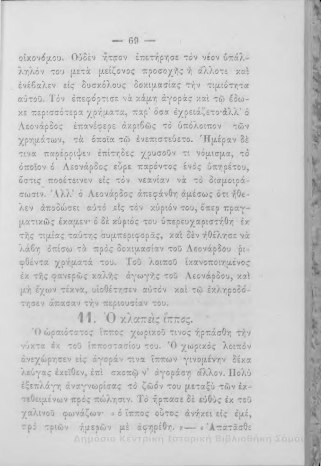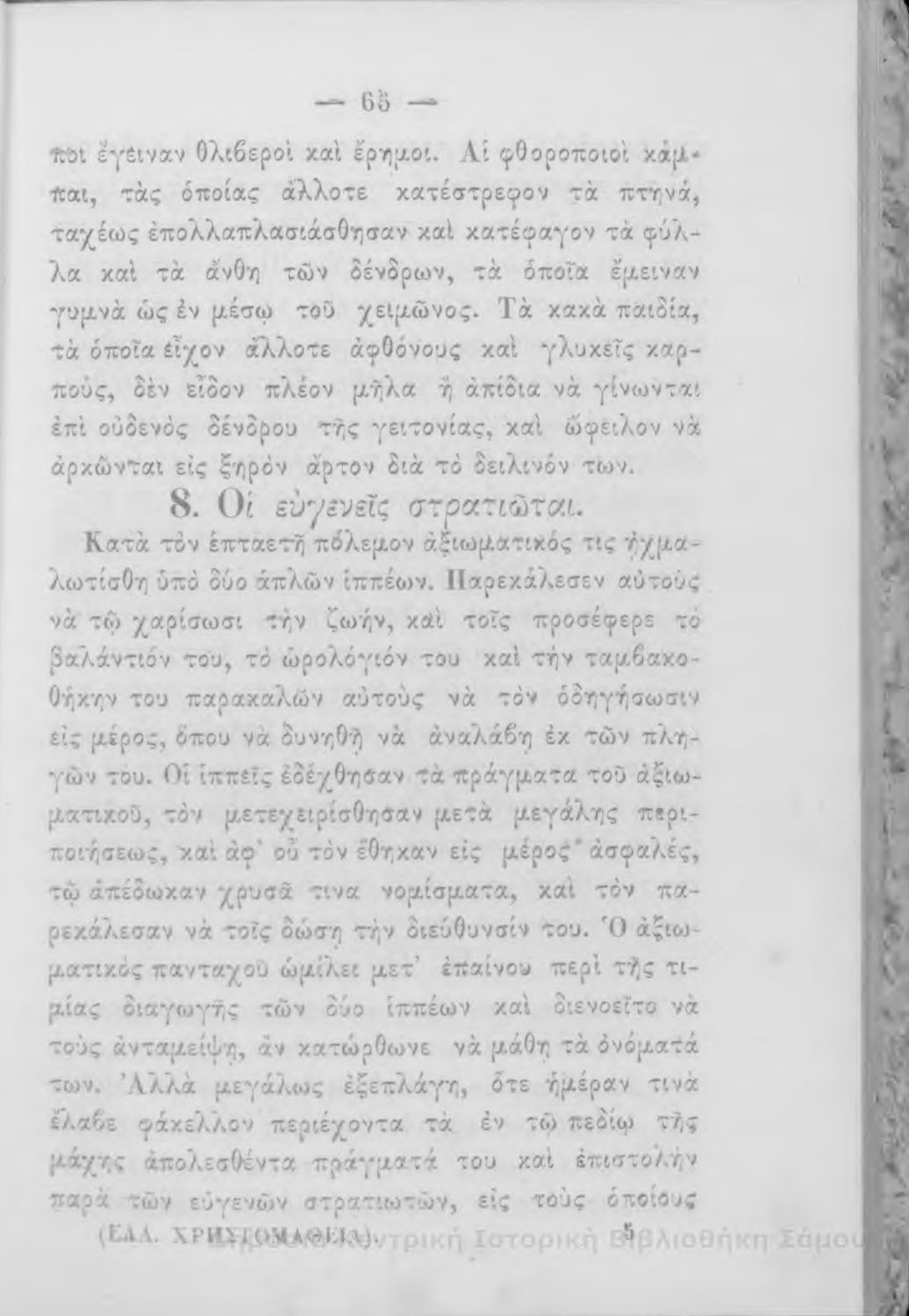 Τίτλος: Νεα Ελληνική χρηστομάθεια ήτοι ανέκδοτα, μύθοι παραβολαί, περιγραφαί εκ της φύσεως, χαρακτήρες, ιστορικά τεμάχια και μεγαλείτερα [sic] διηγήματα : προς χρήσιν των δημοτικών σχολείων