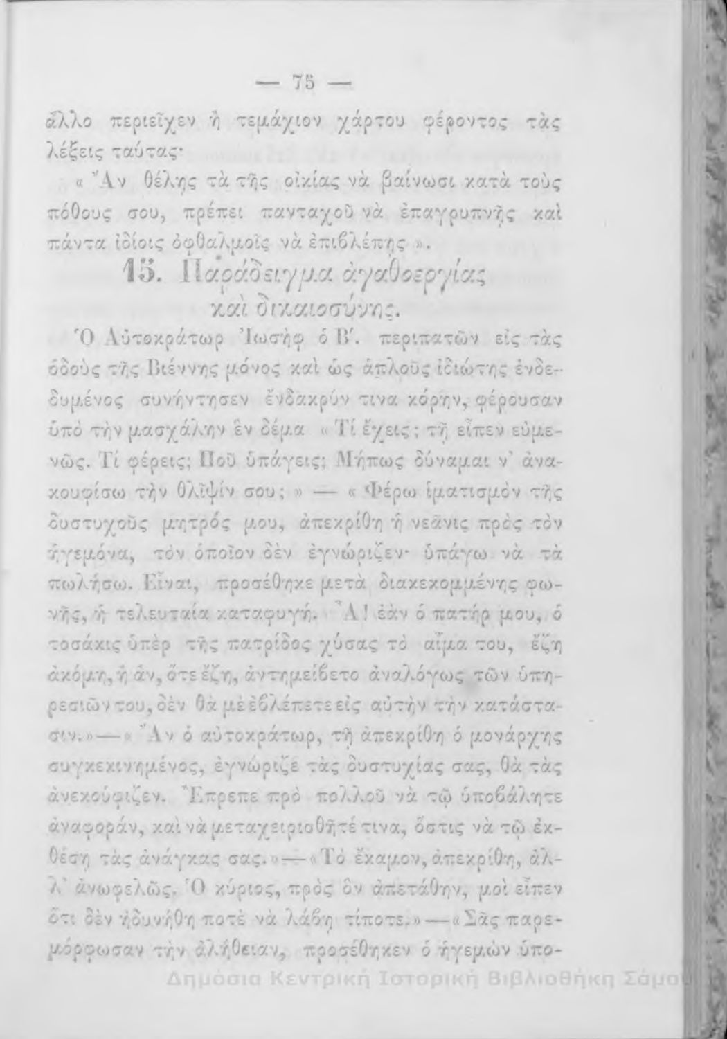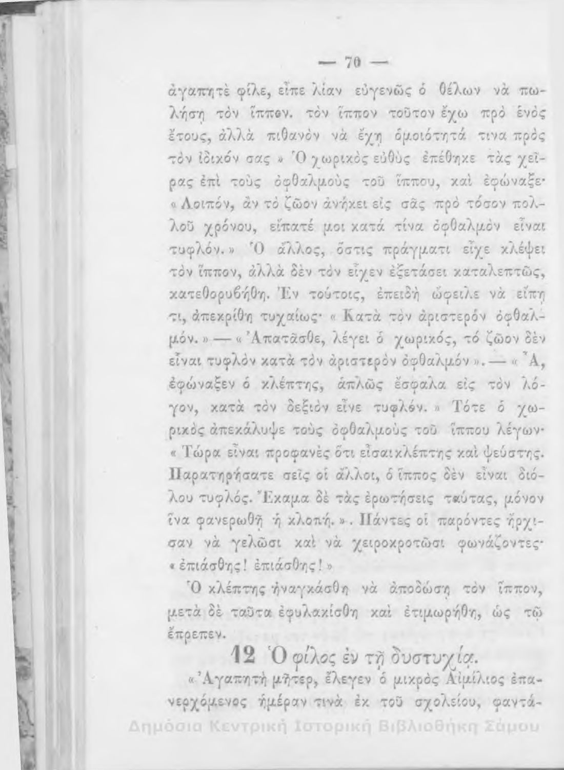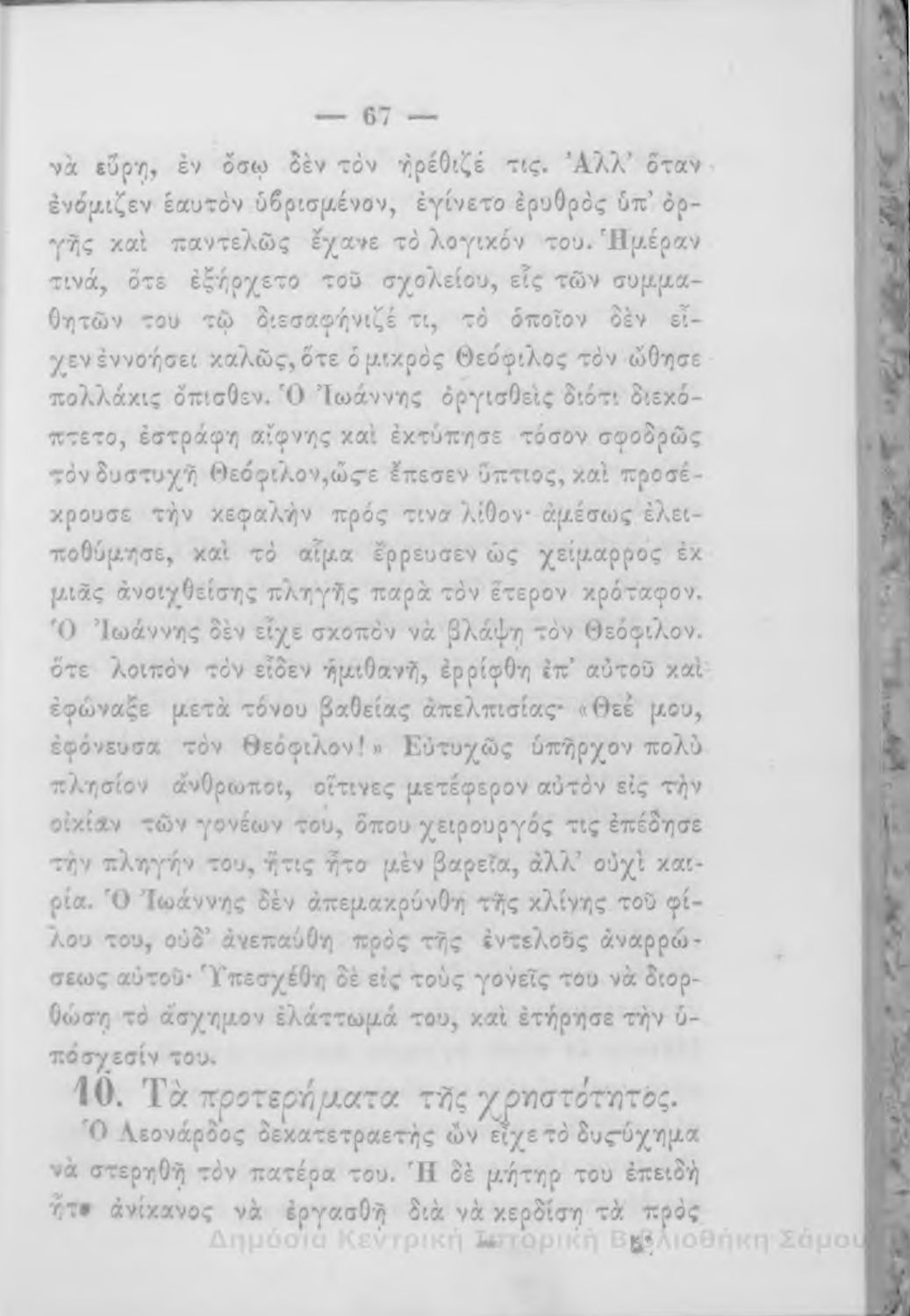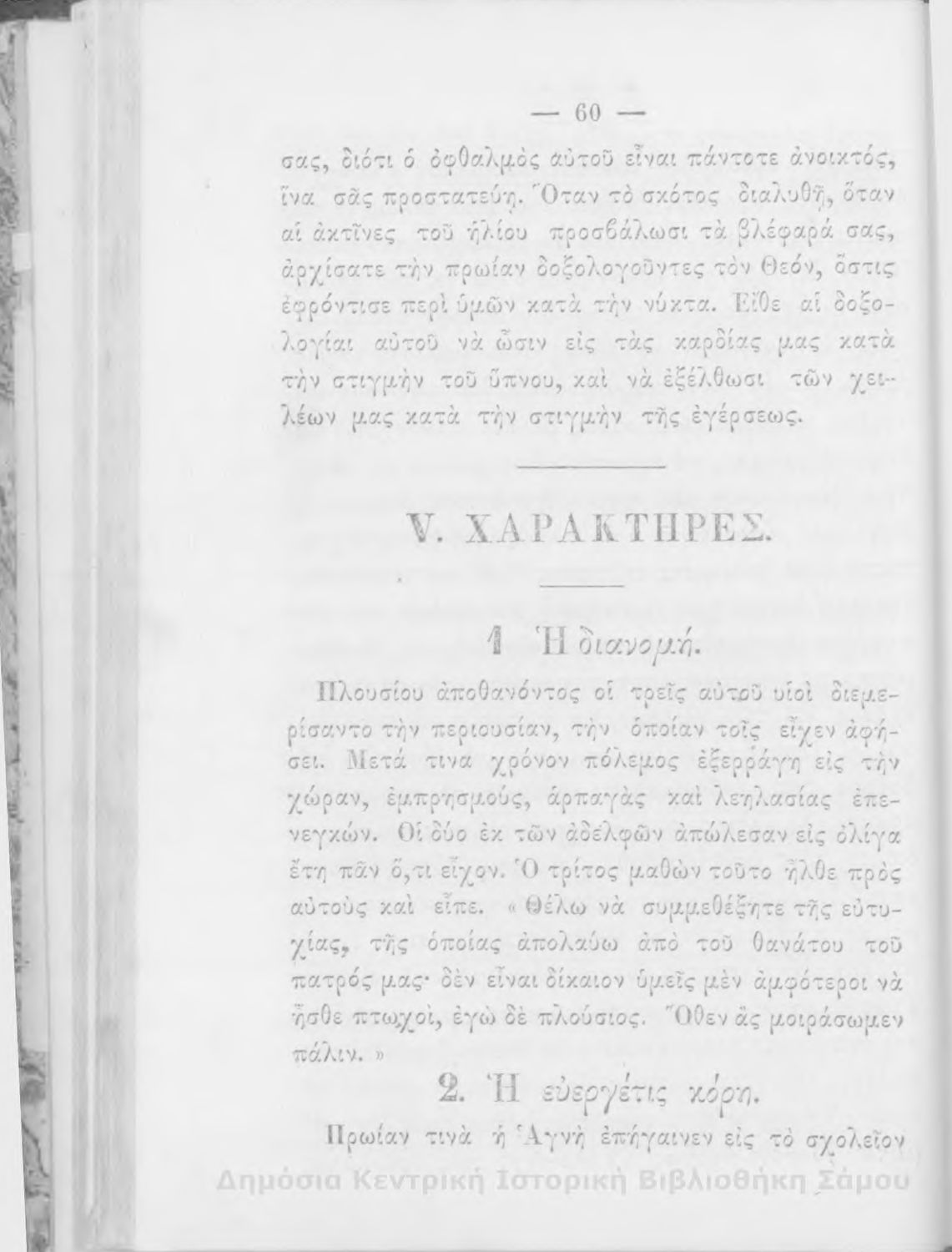 Τίτλος: Νεα Ελληνική χρηστομάθεια ήτοι ανέκδοτα, μύθοι παραβολαί, περιγραφαί εκ της φύσεως, χαρακτήρες, ιστορικά τεμάχια και μεγαλείτερα [sic] διηγήματα : προς χρήσιν των δημοτικών σχολείων