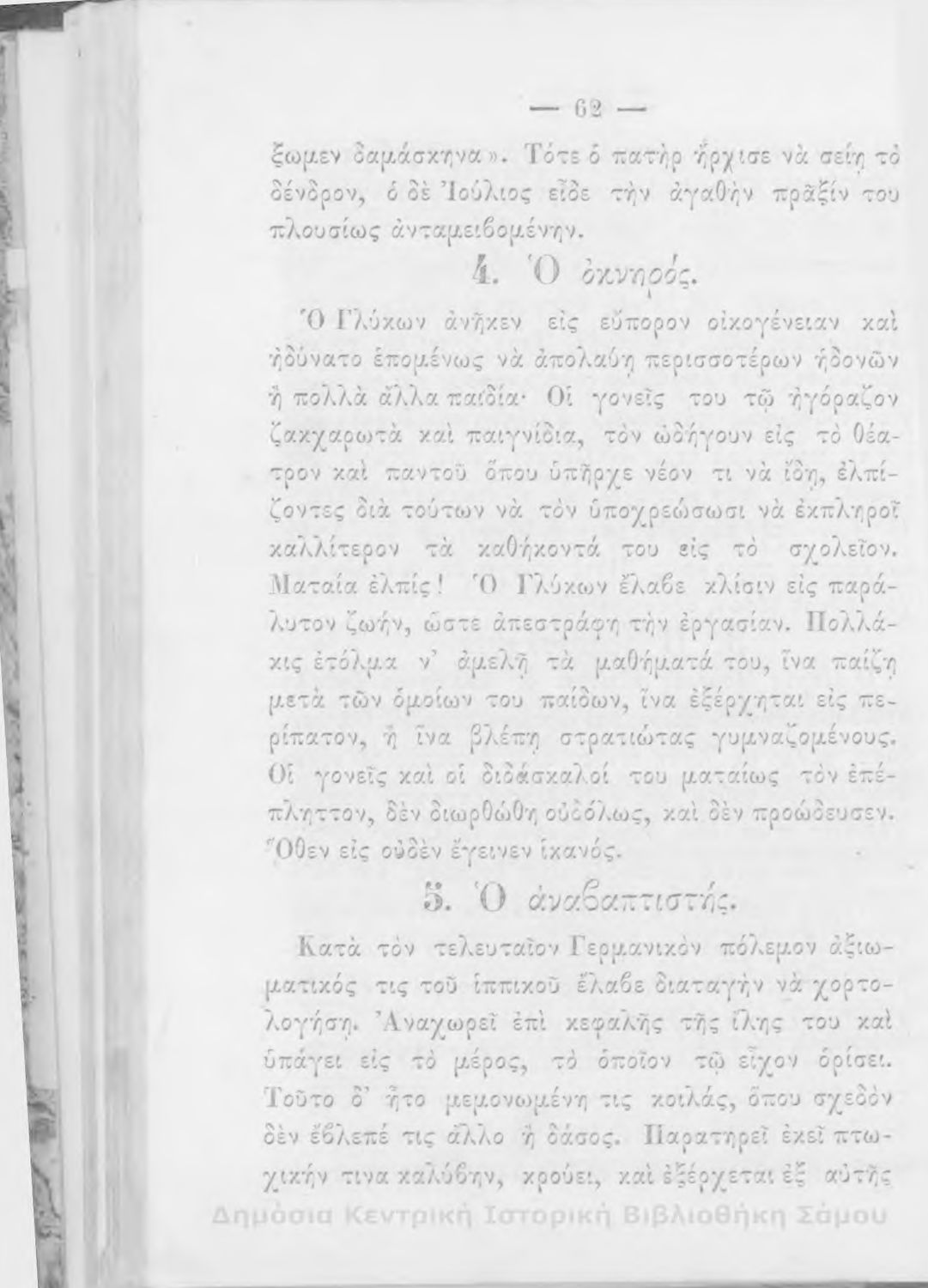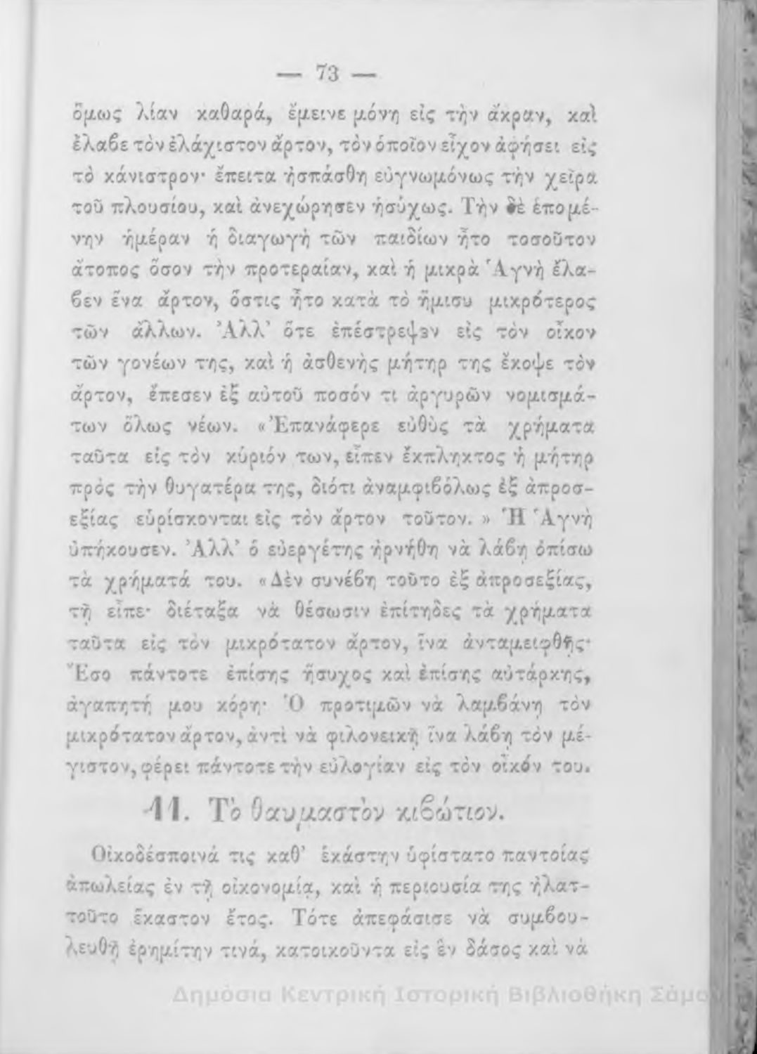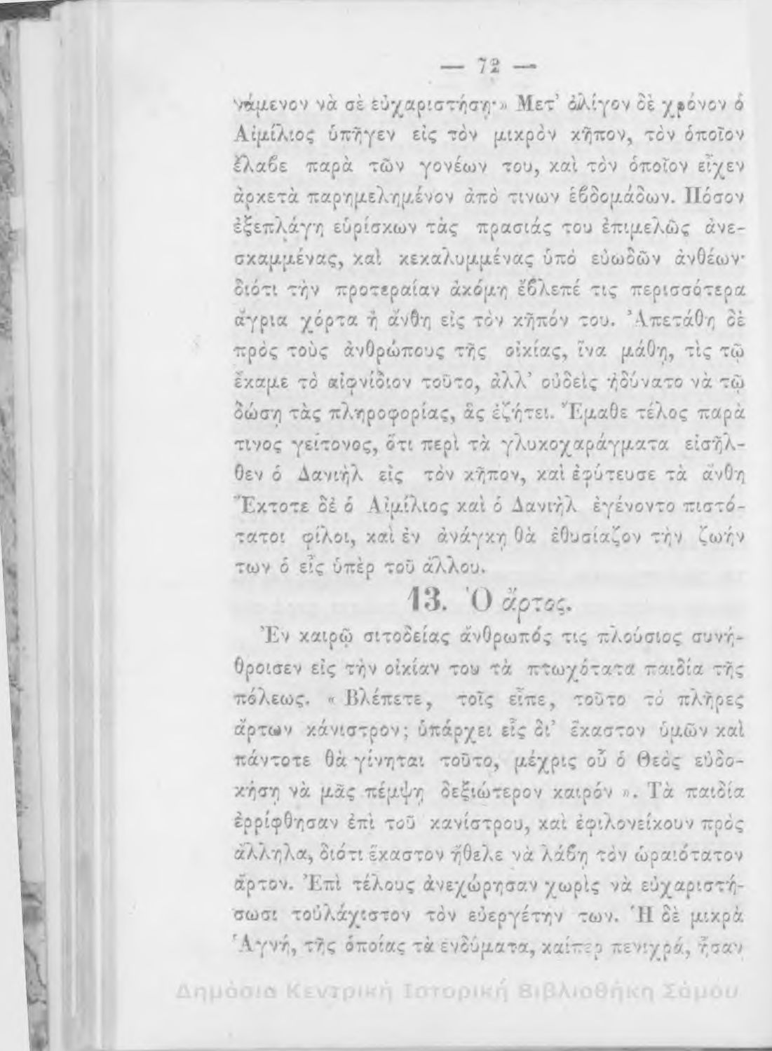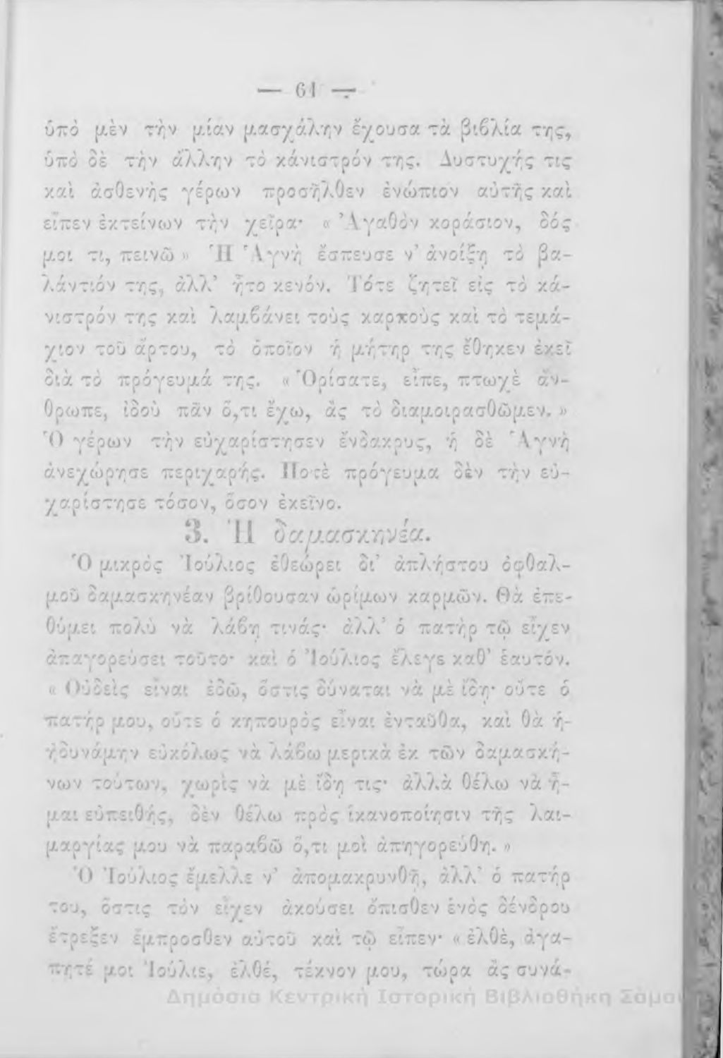 Αναγνωστικό που περιλαμβάνει σύντομα διηγήματα ηθικοπλαστικού περιεχομένου εμπνευσμένα από τη θρησκευτική παράδοση, την αρχαία Ελλάδα, τη ρωμαϊκή και την σύγχρονη ευρωπαϊκή ιστορία.