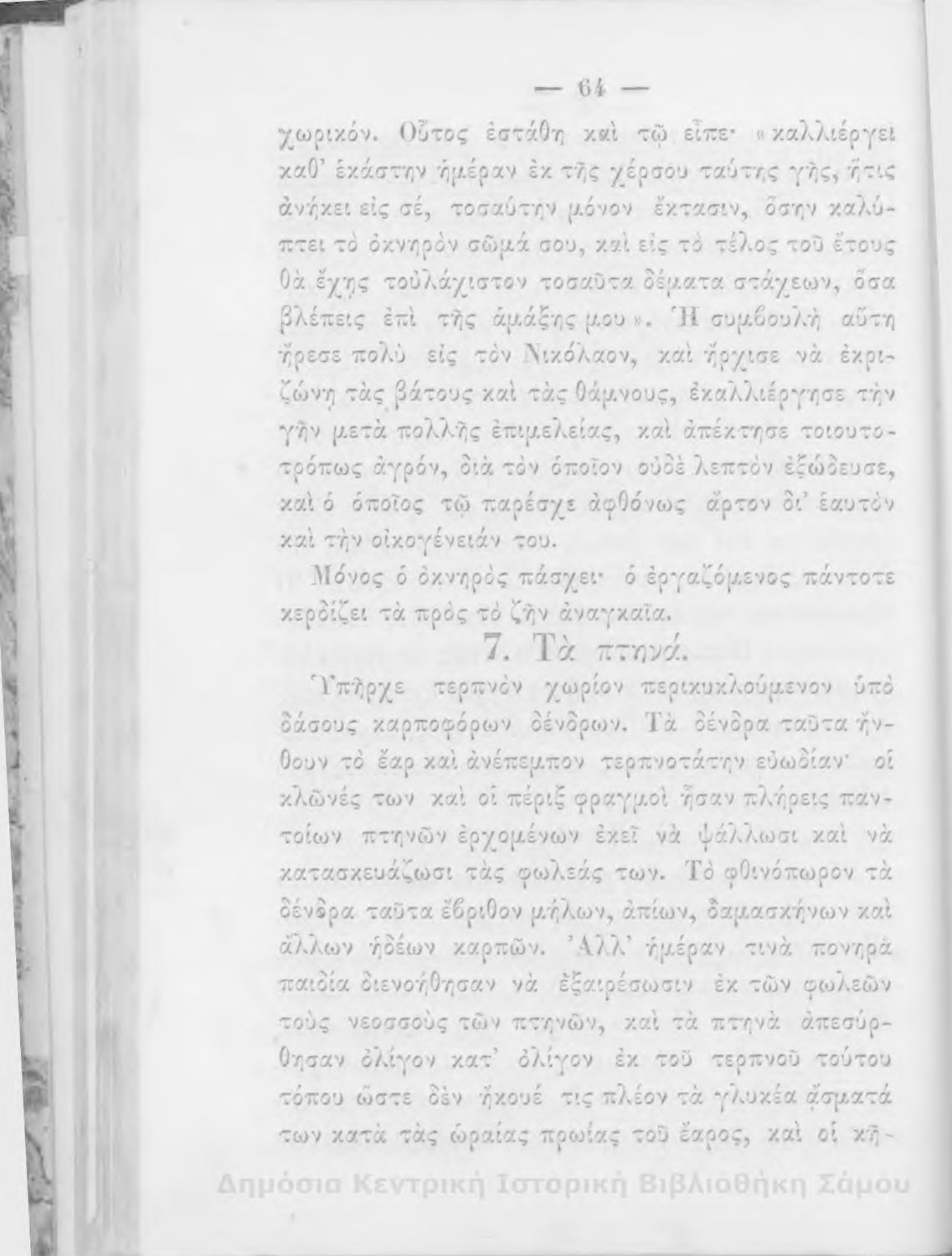 Σχολικό εγχειρίδιο για την Ελληνική Γλώσσα. Αποτελεί συλλογή συνθετικών ασκήσεων που περιέχουν μύθους, περιγραφές, επιστολές, γνωμικά και αποφθέγματα.