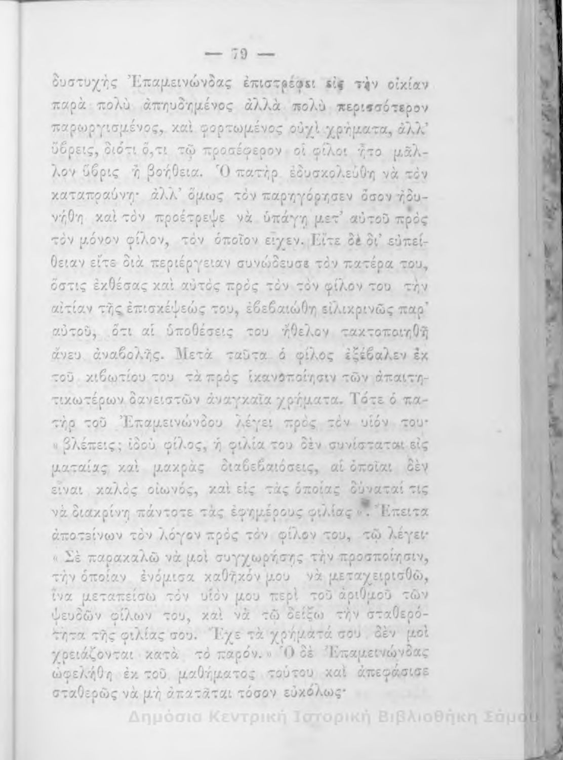 Σχολικό εγχειρίδιο Αρχαίων Ελληνικών για τις Ε΄ Δημοτικού και Α' Ελληνικού Σχολείου που περιλαμβάνει σύντομα διηγήματα εμπνευσμένα από τους μύθους του Αισώπου, περιγραφές ελληνικών πόλεων, επιστολές και ...