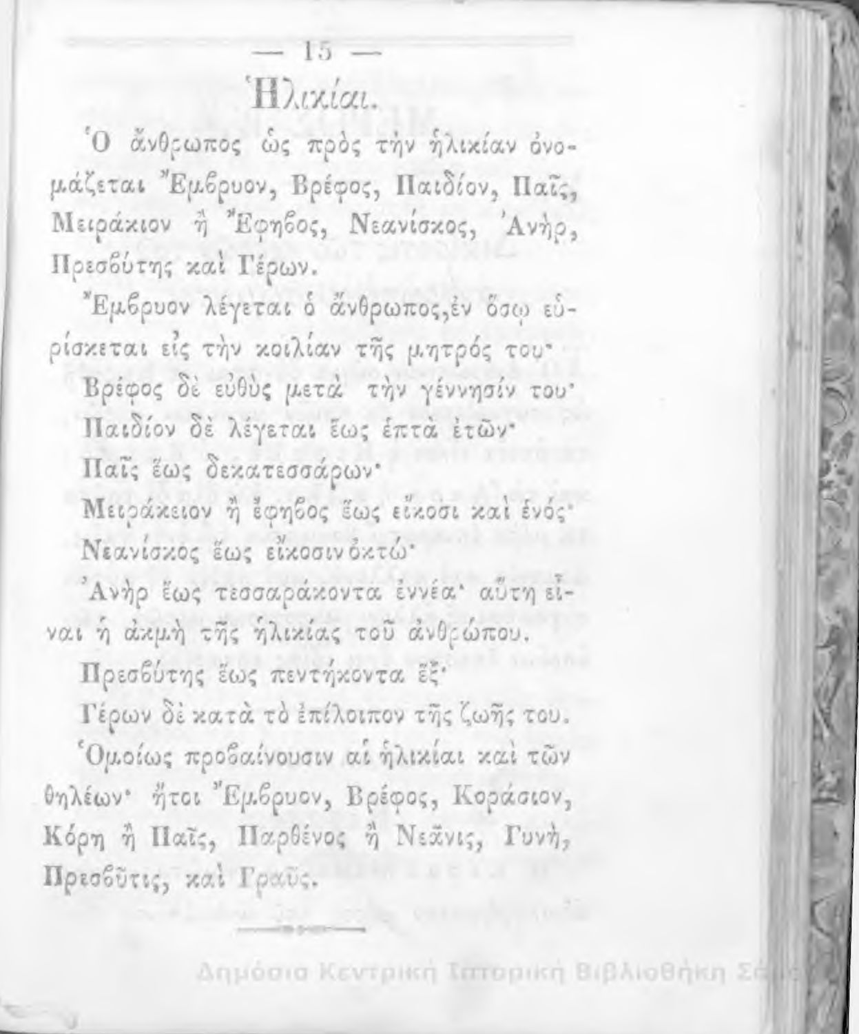 Μαθητικό βοήθημα Αρχαίων Ελληνικών για τα Ελληνικά Σχολεία, Παρθεναγωγεία και Γυμνάσια που περιλαμβάνει γραμματική της αρχαίας ελληνικής και κατάλογο ανωμάλων ρημάτων.
