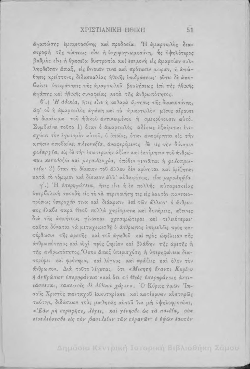 Σχολικό εγχειρίδιο Θρησκευτικών για τα Ελληνικά Σχολεία και Παρθεναγωγεία που εστιάζει σε θέματα χριστιανικής ηθικής και σε δογματικά και ηθικά ζητήματα της ορθόδοξης κατήχησης.